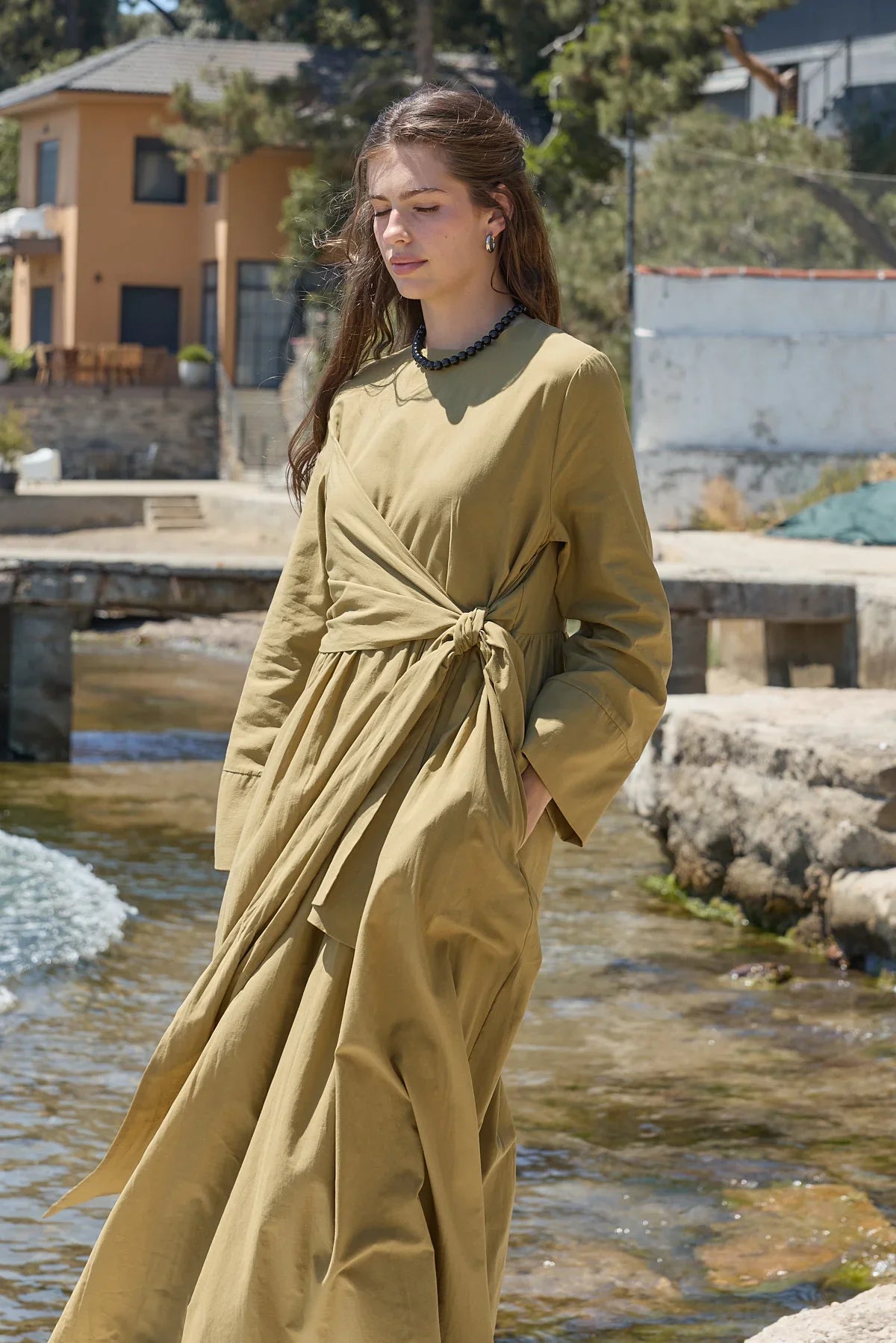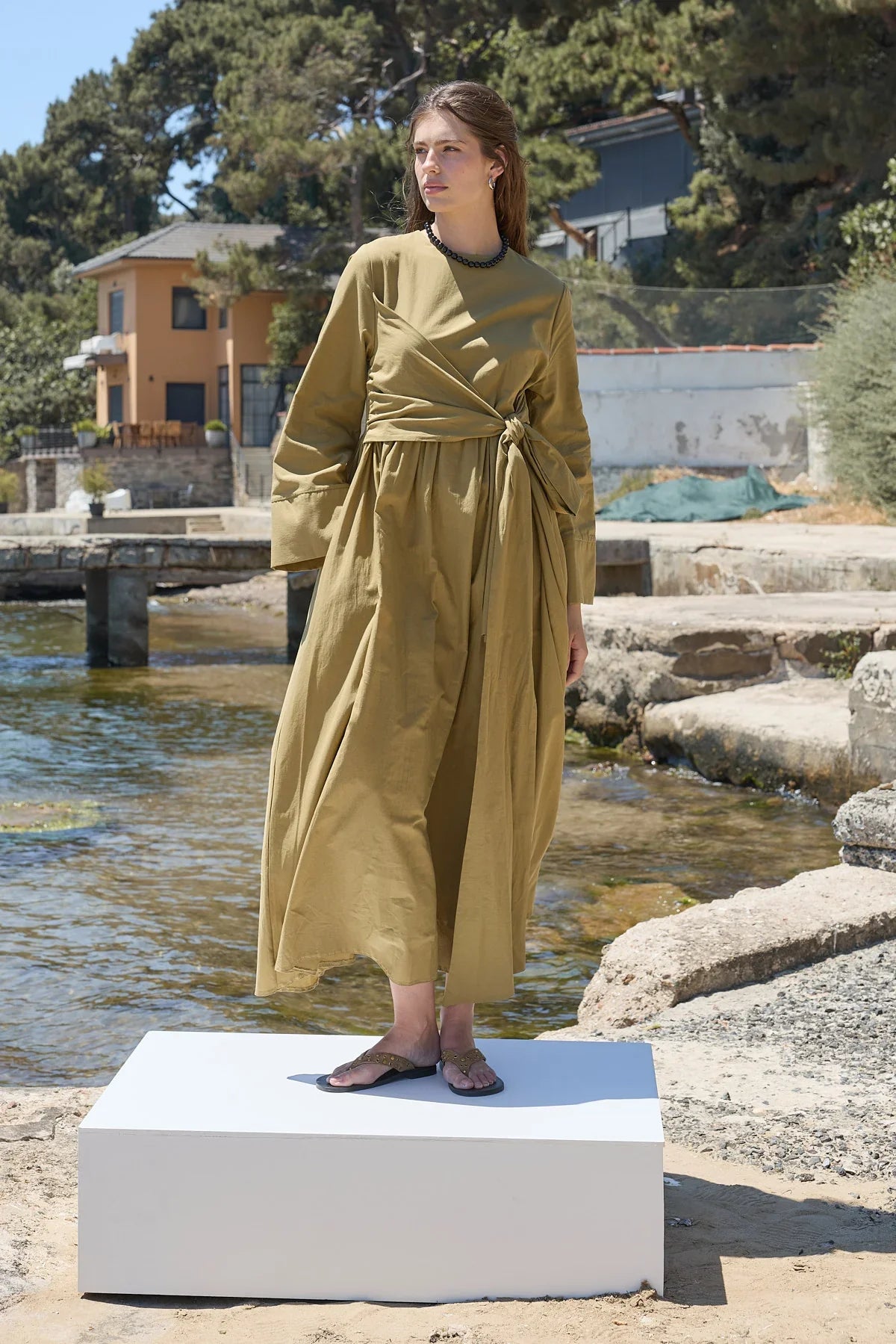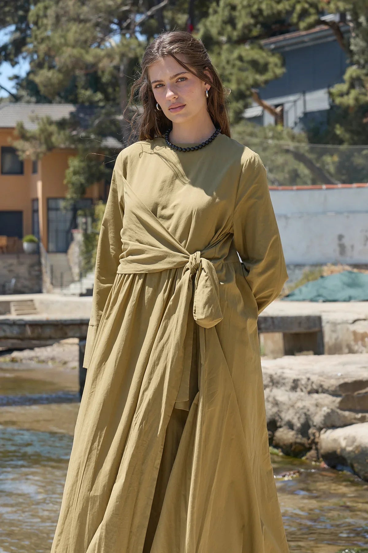 Forest Bağlamalı Vual Elbise Yağ Yeşili