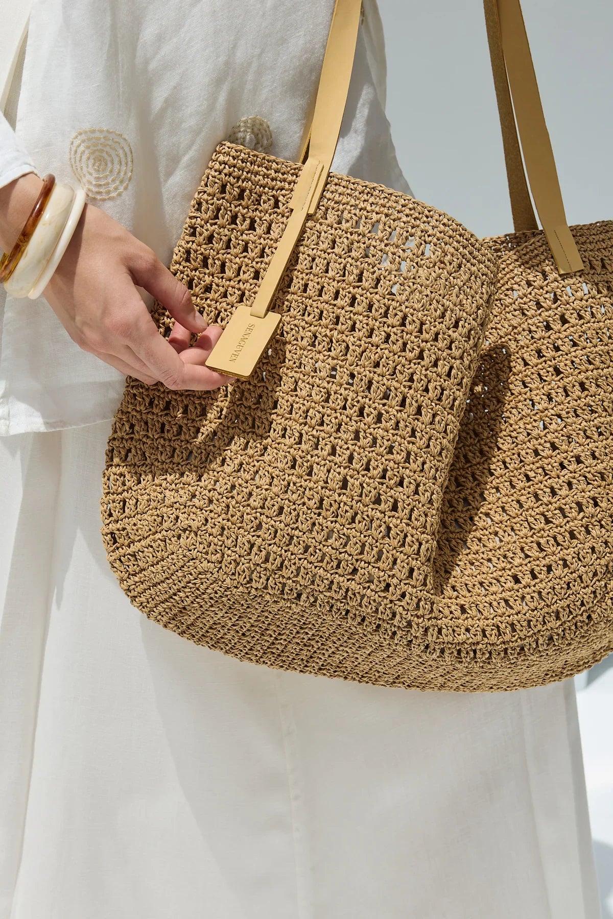 Hasır El Örgüsü Çanta Naturel