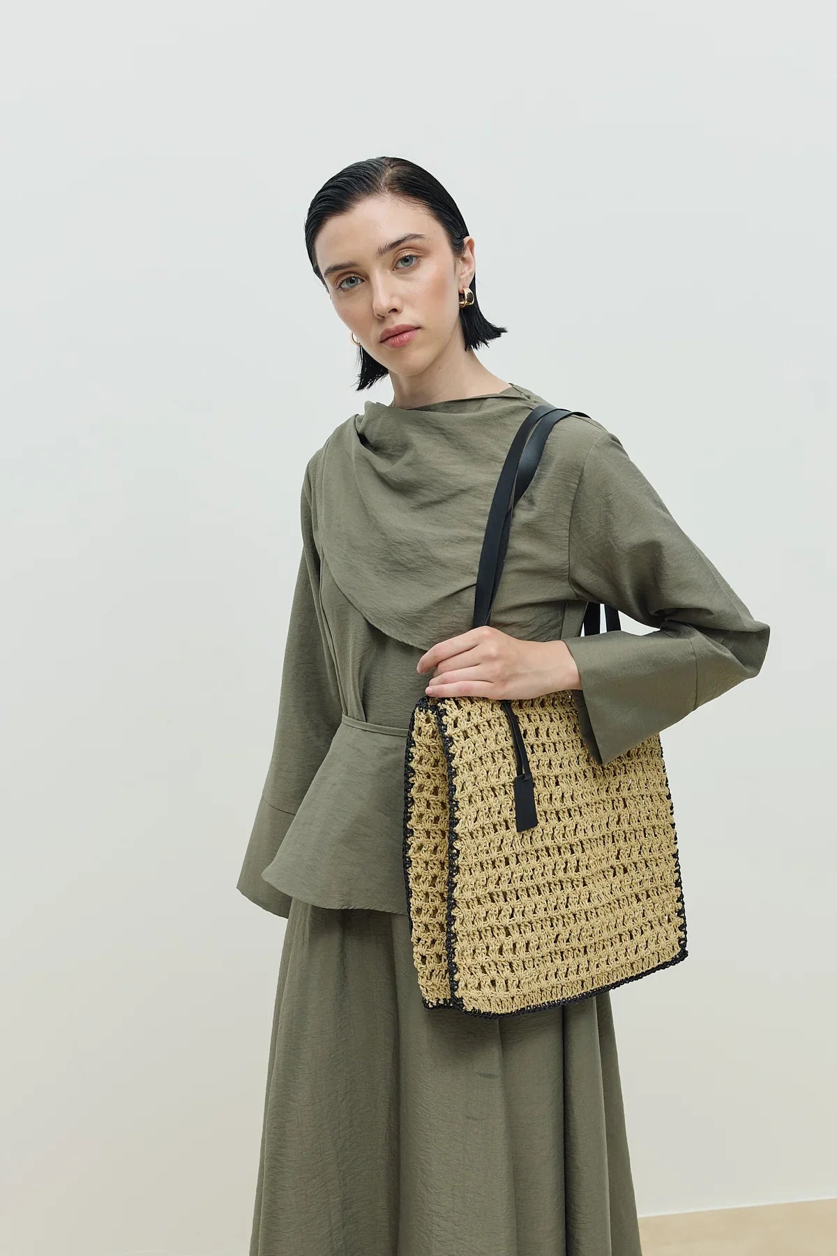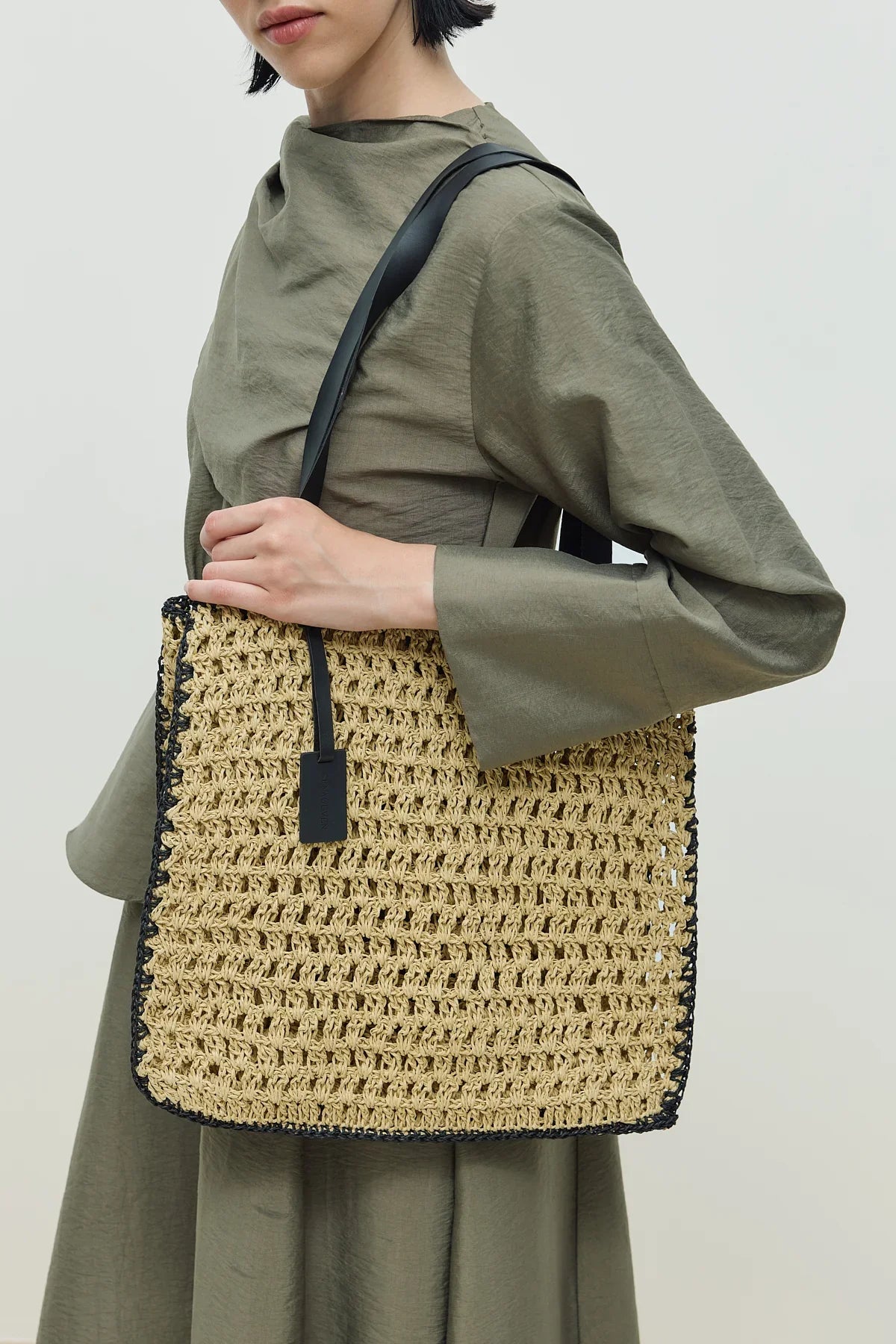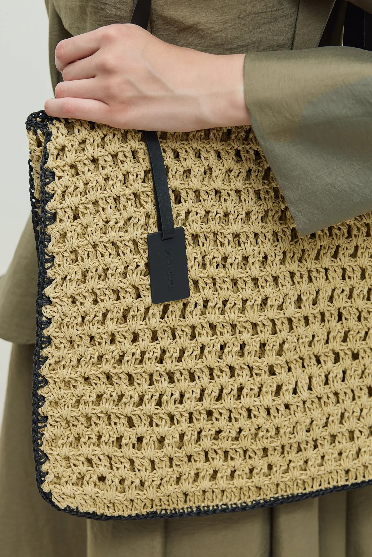 Hasır El Örgüsü Çanta Naturel - Siyah