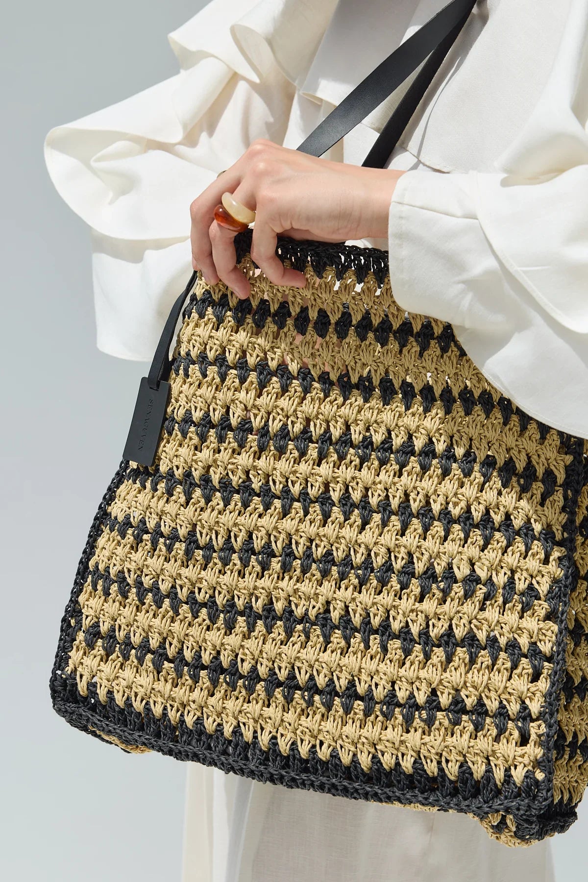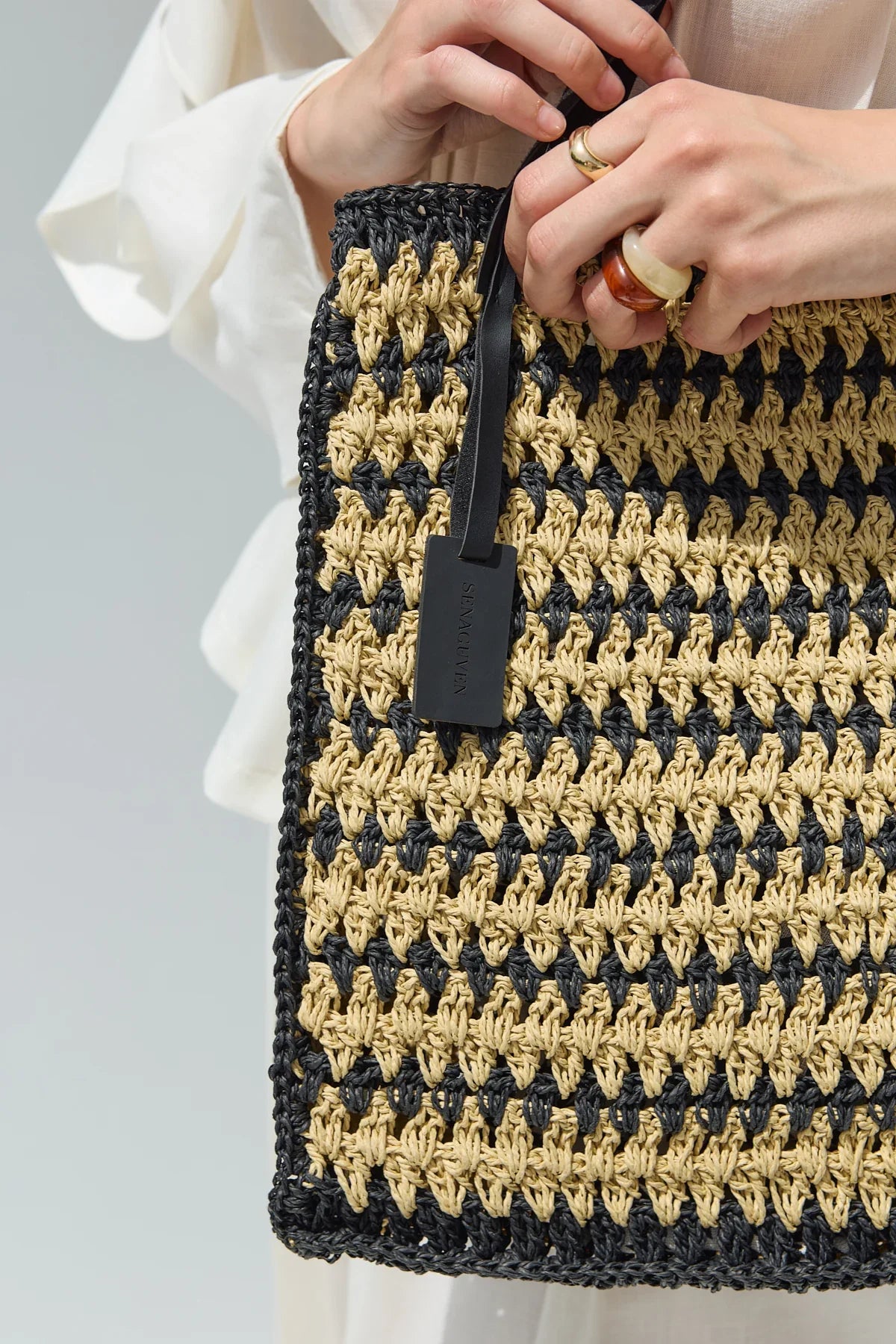 Hasır El Örgüsü Çanta Naturel Siyah Çizgili