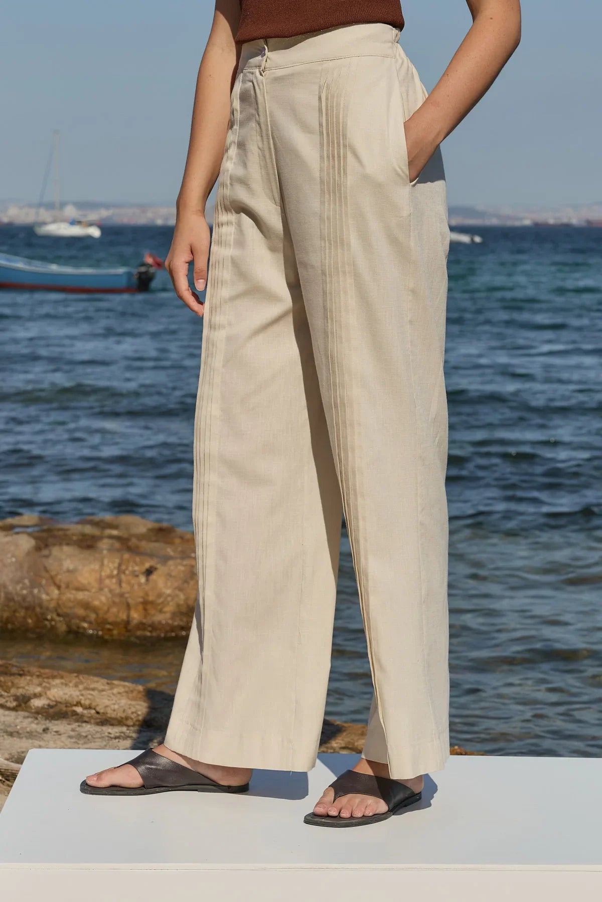 Haze Nervürlü Keten Pantolon Taş