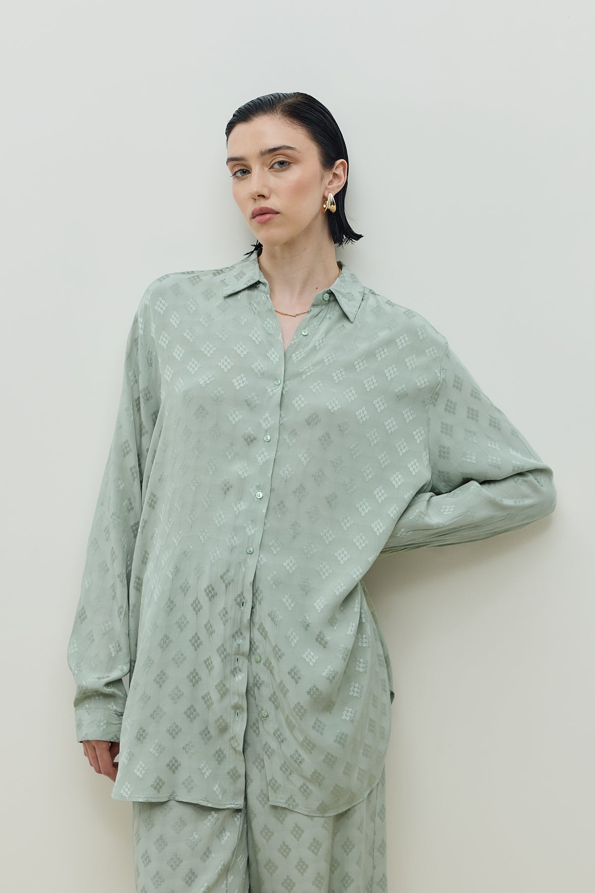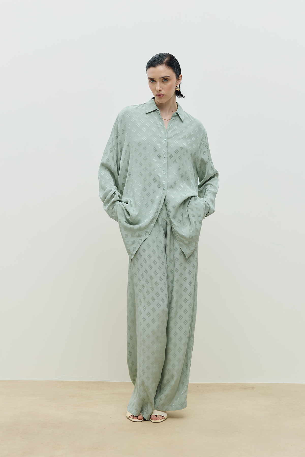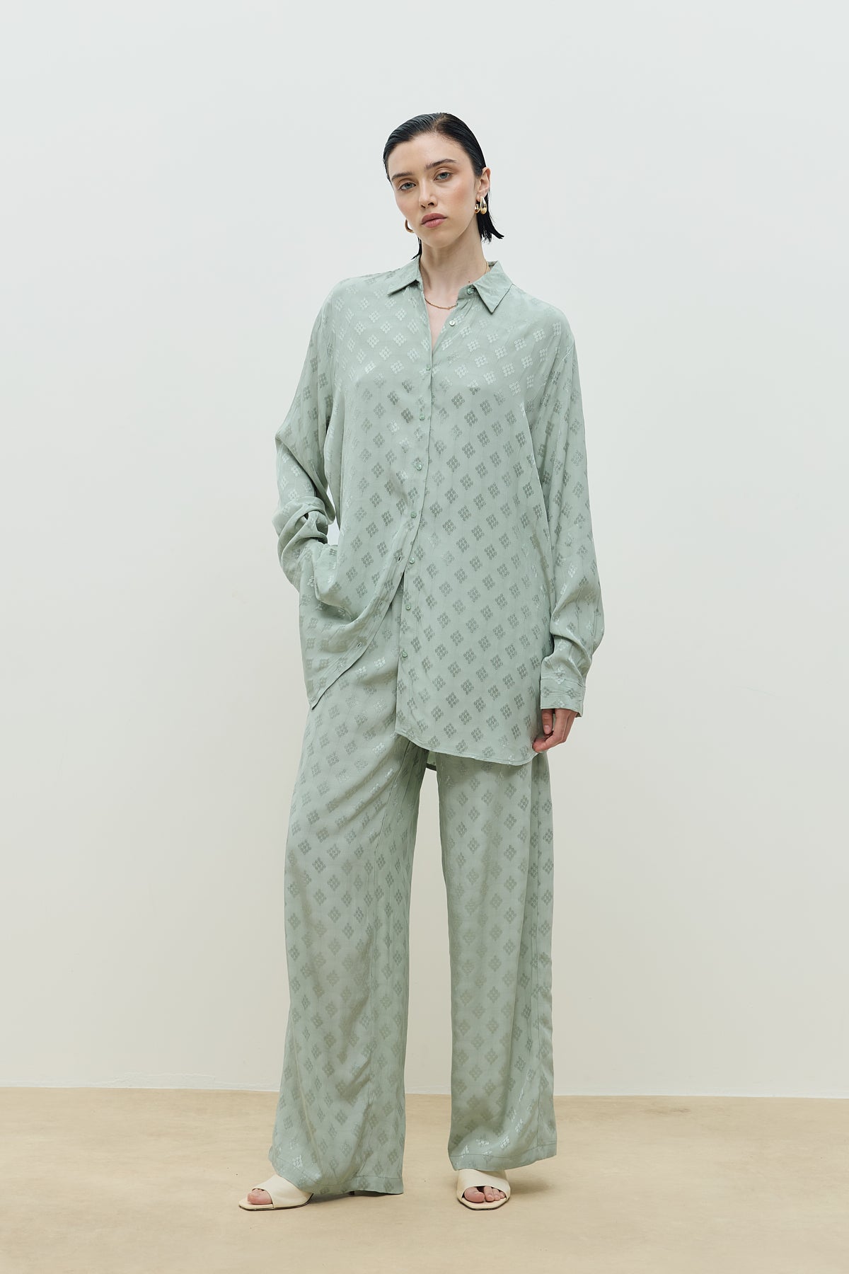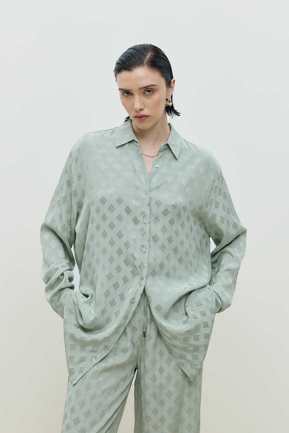 Jakar Desenli Takım Mint Yeşili