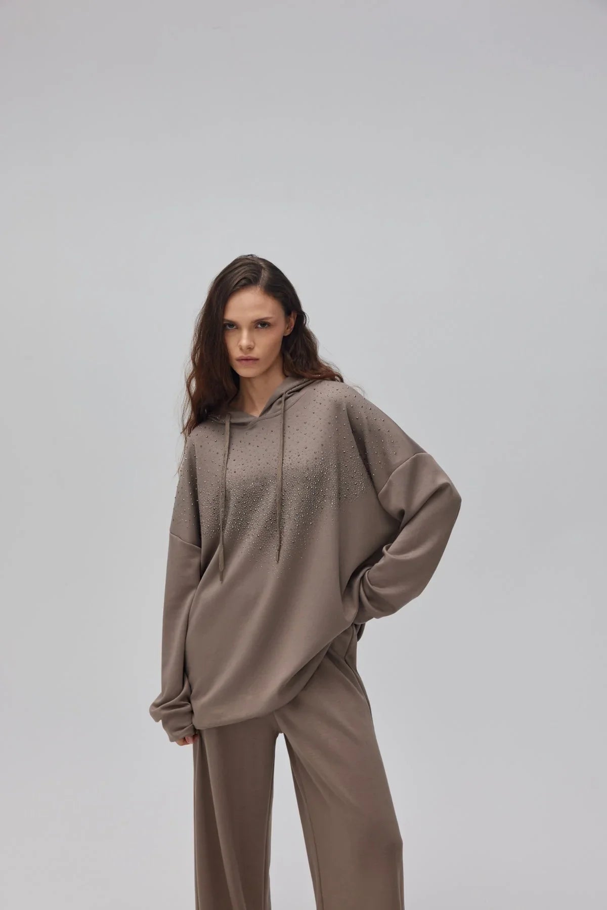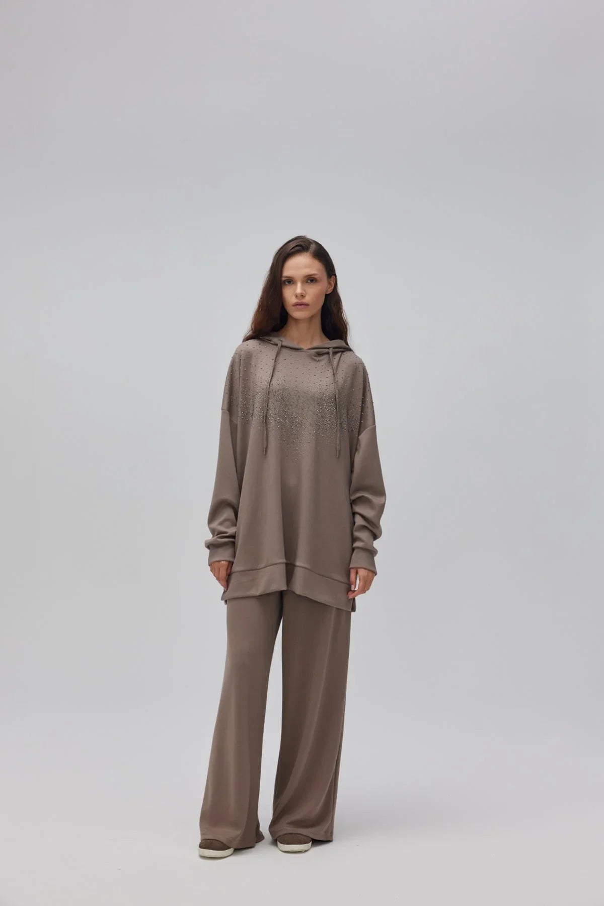 Kapuşonlu Taşlı Oyşo Takım Vizon