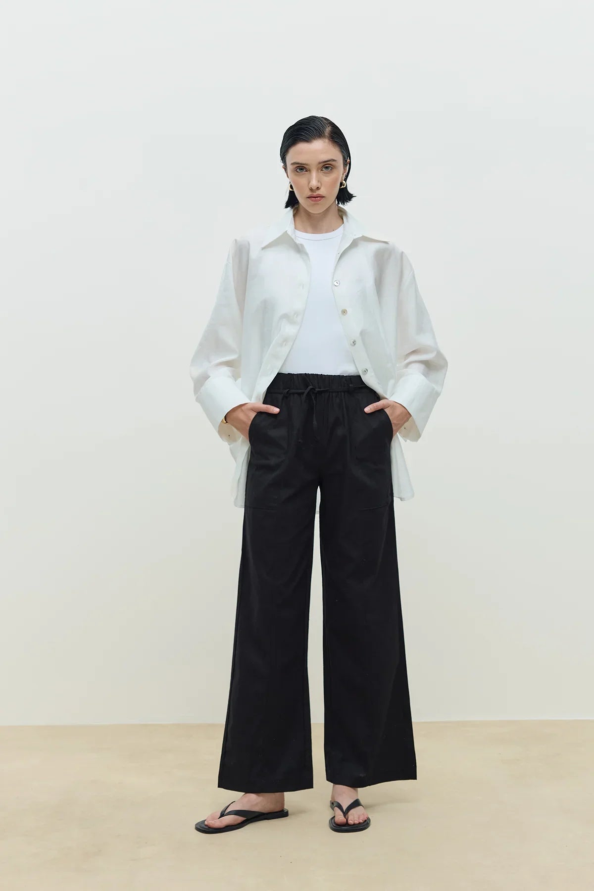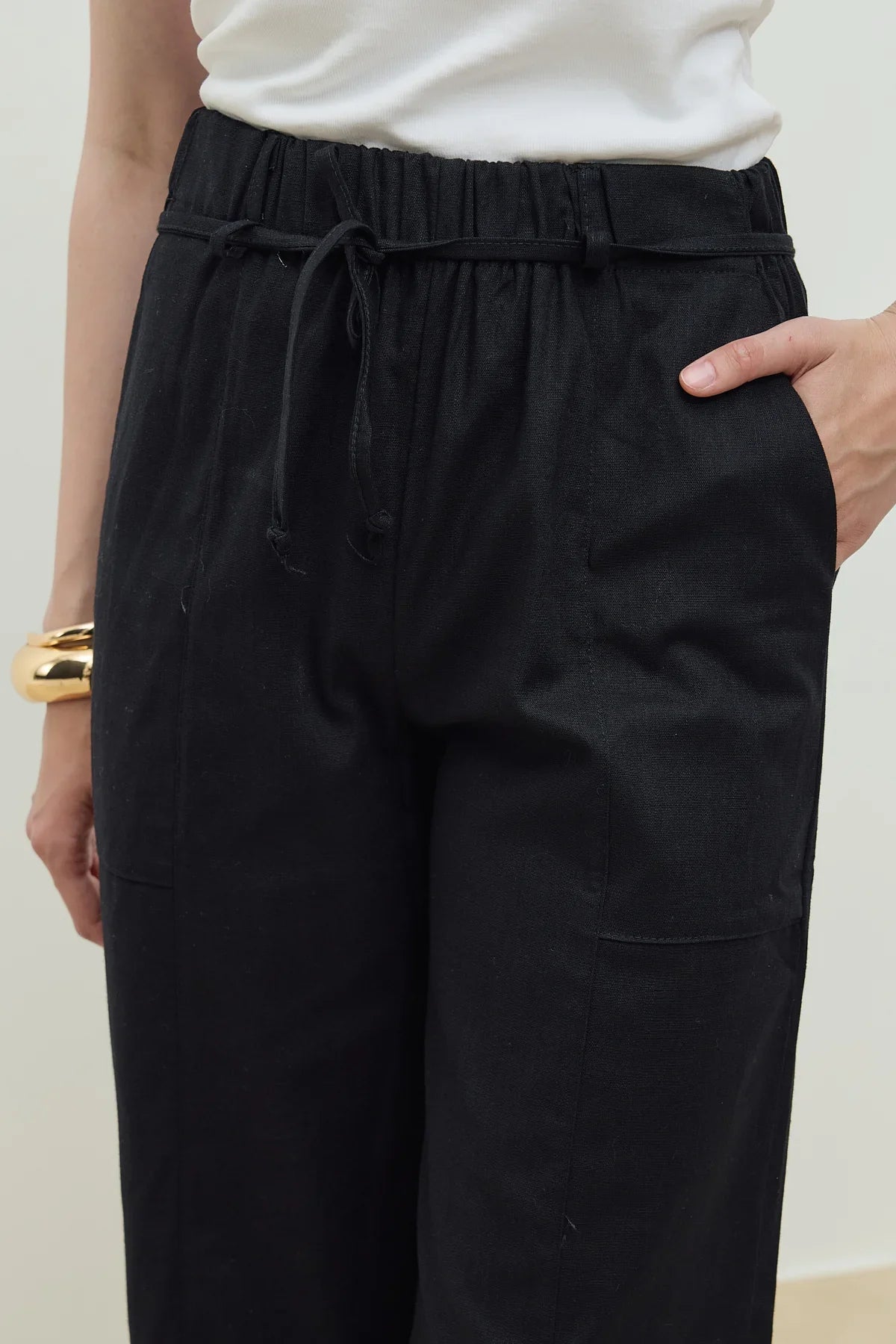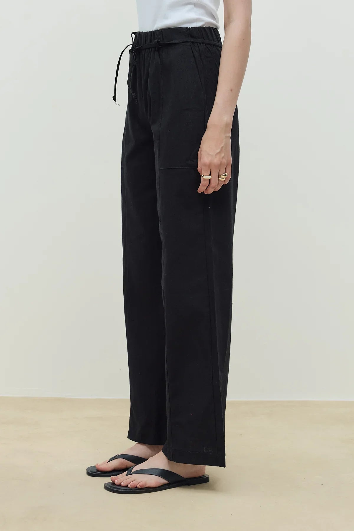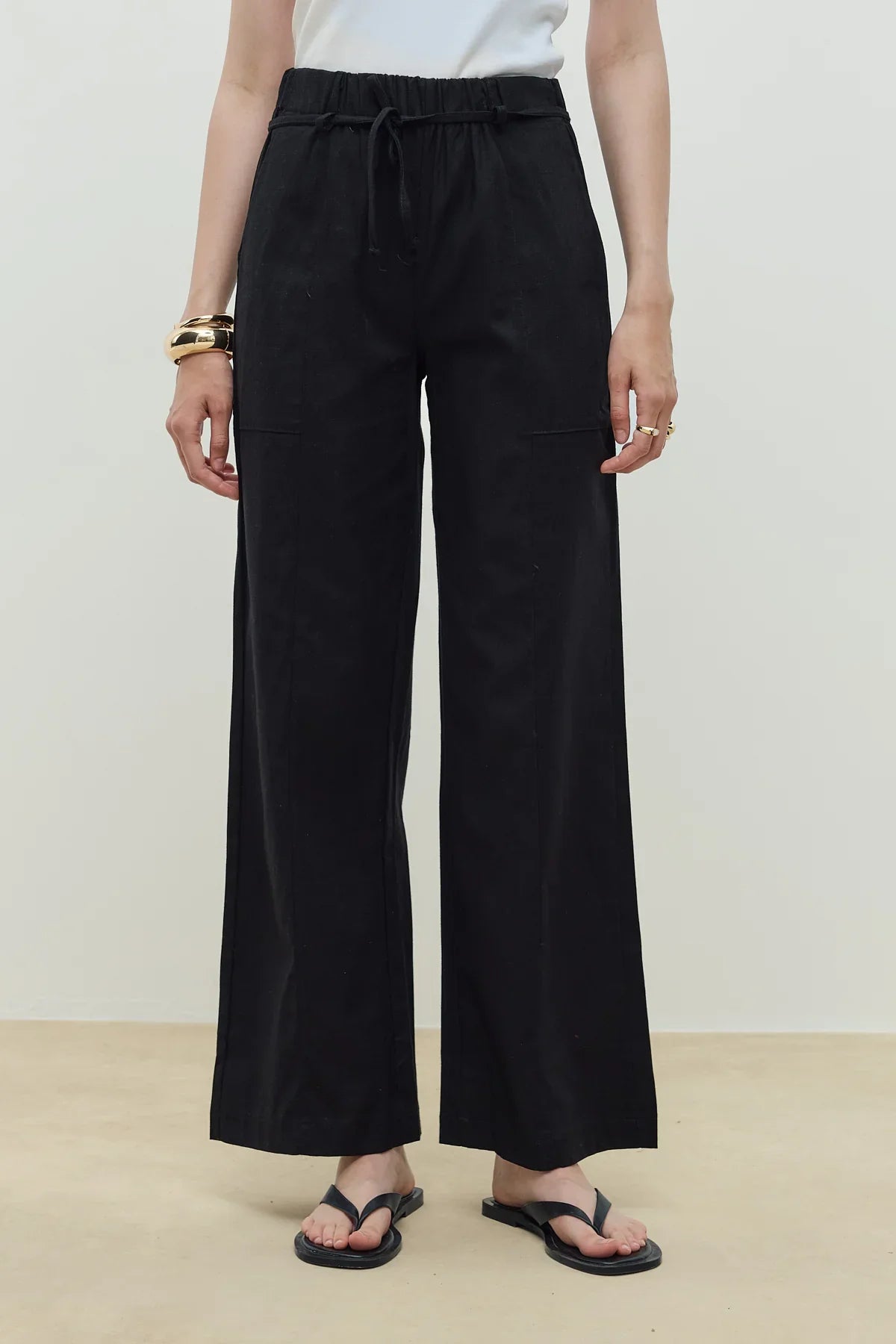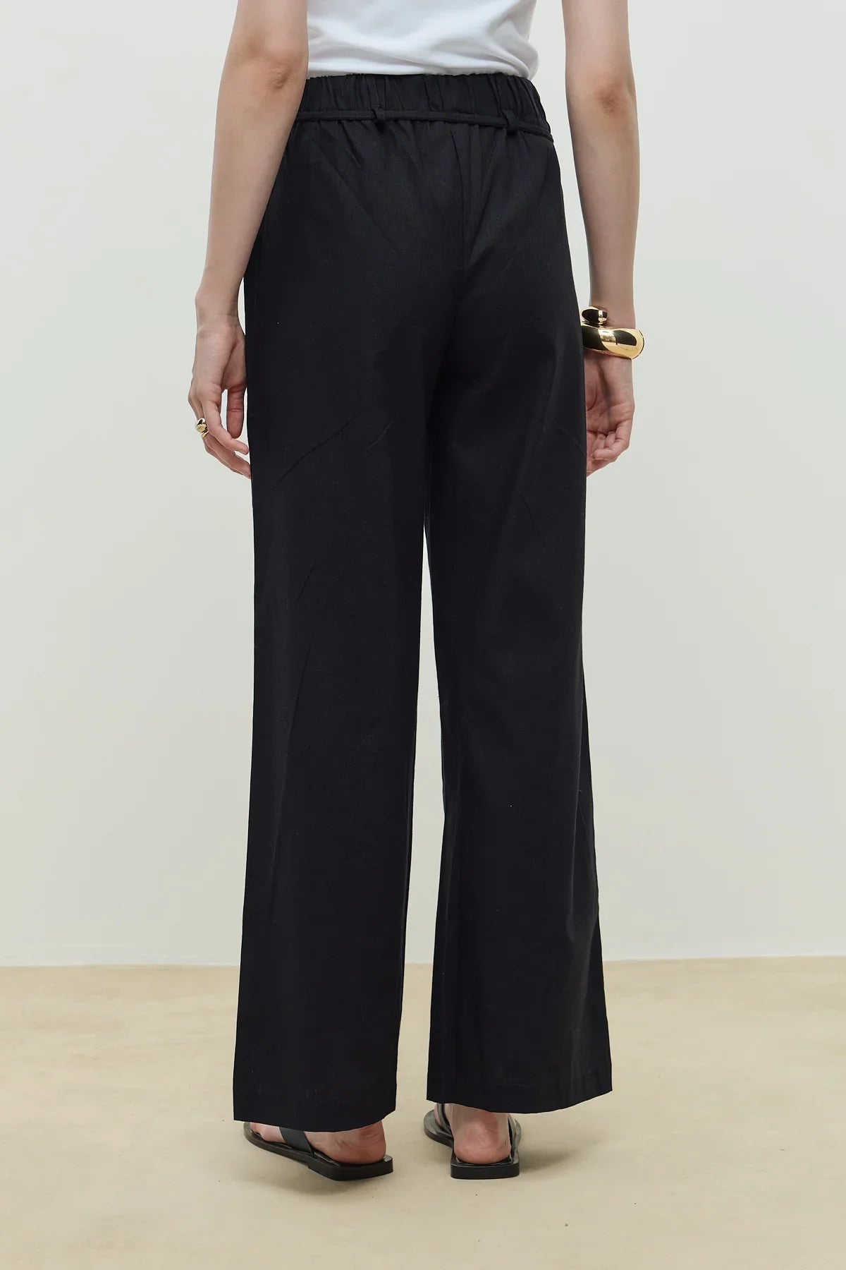 Keten Palazzo Pantolon Siyah