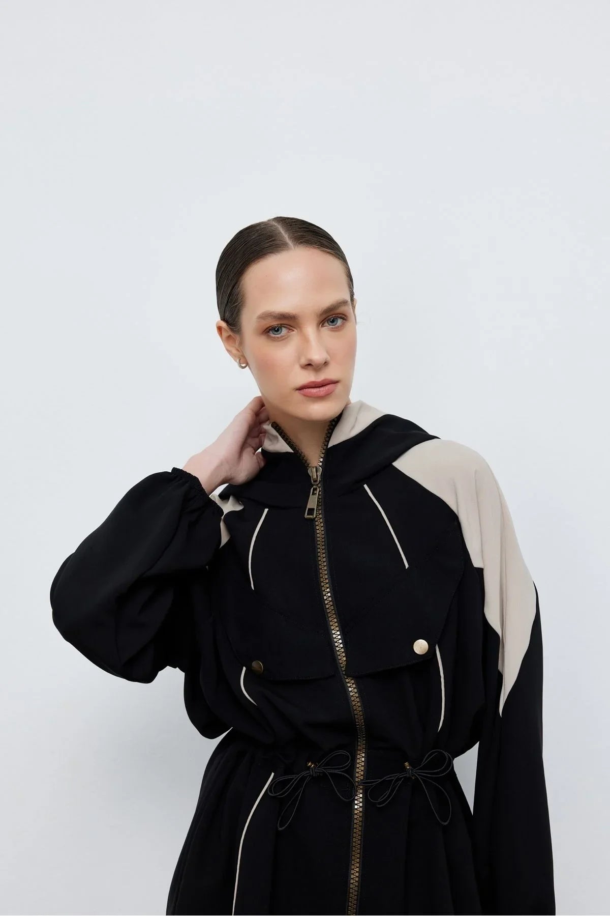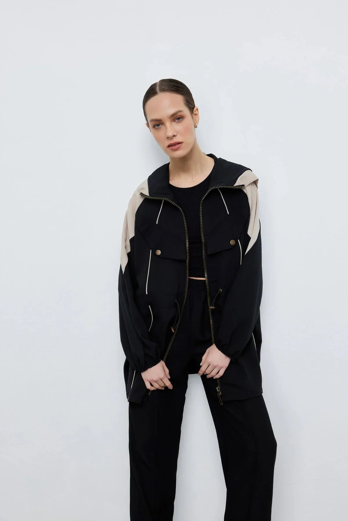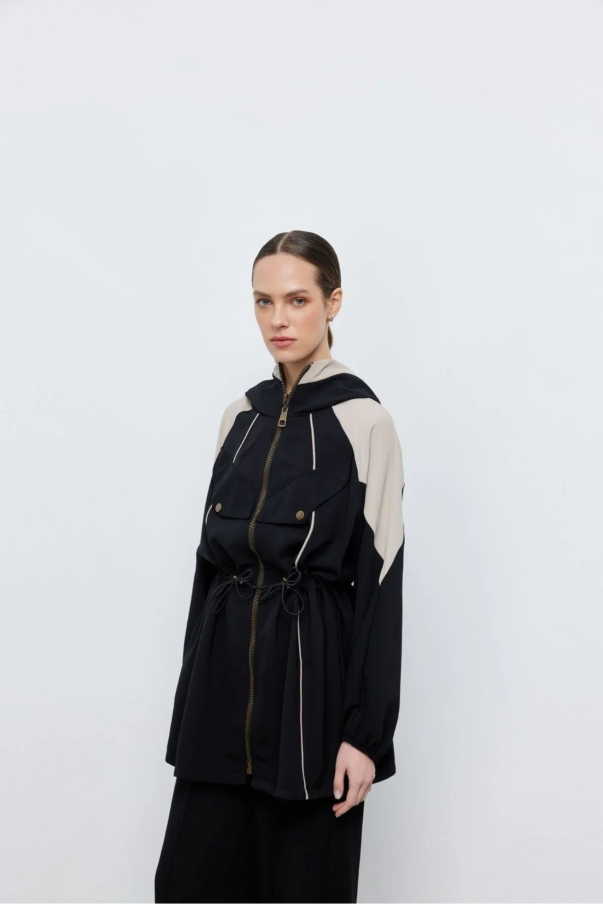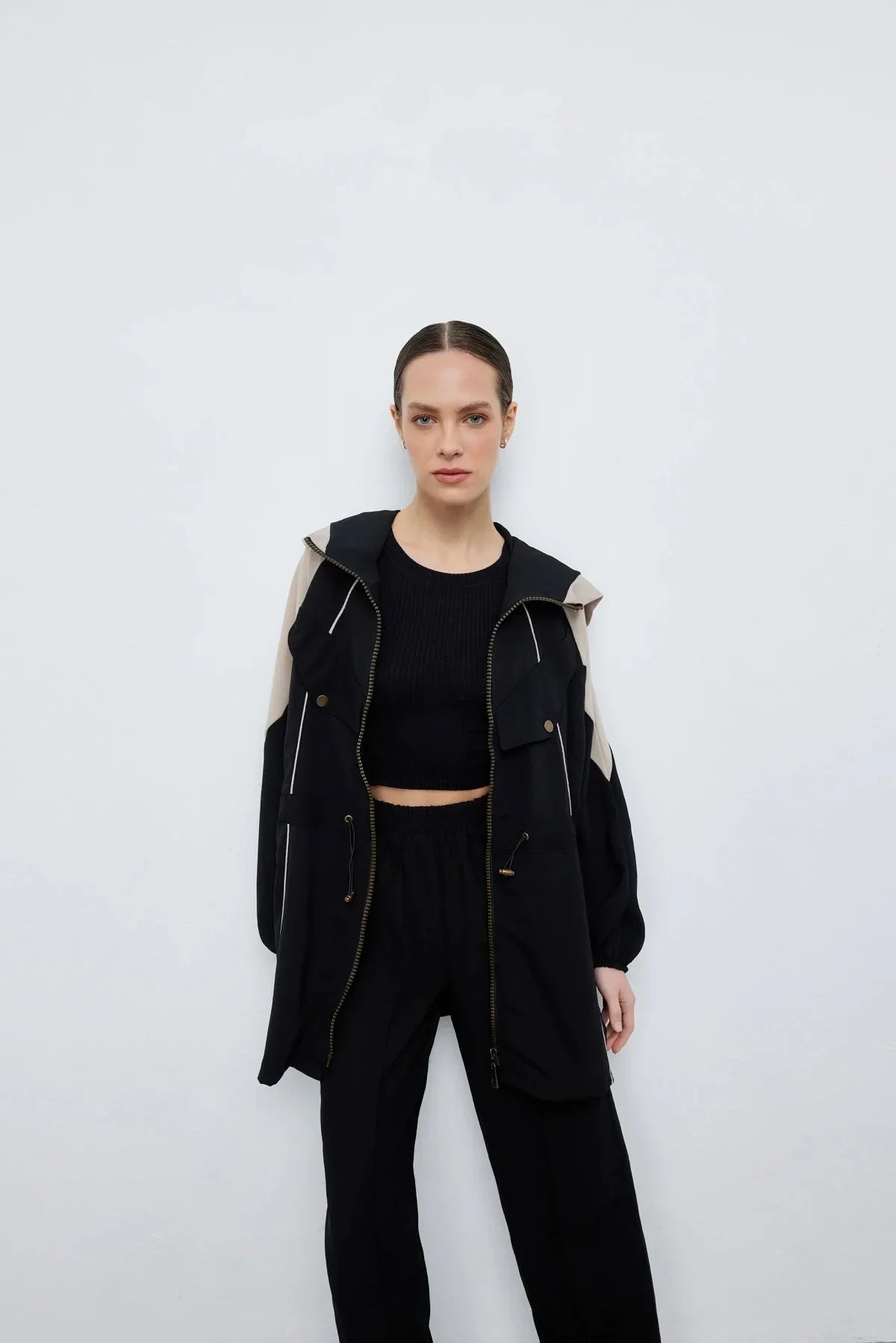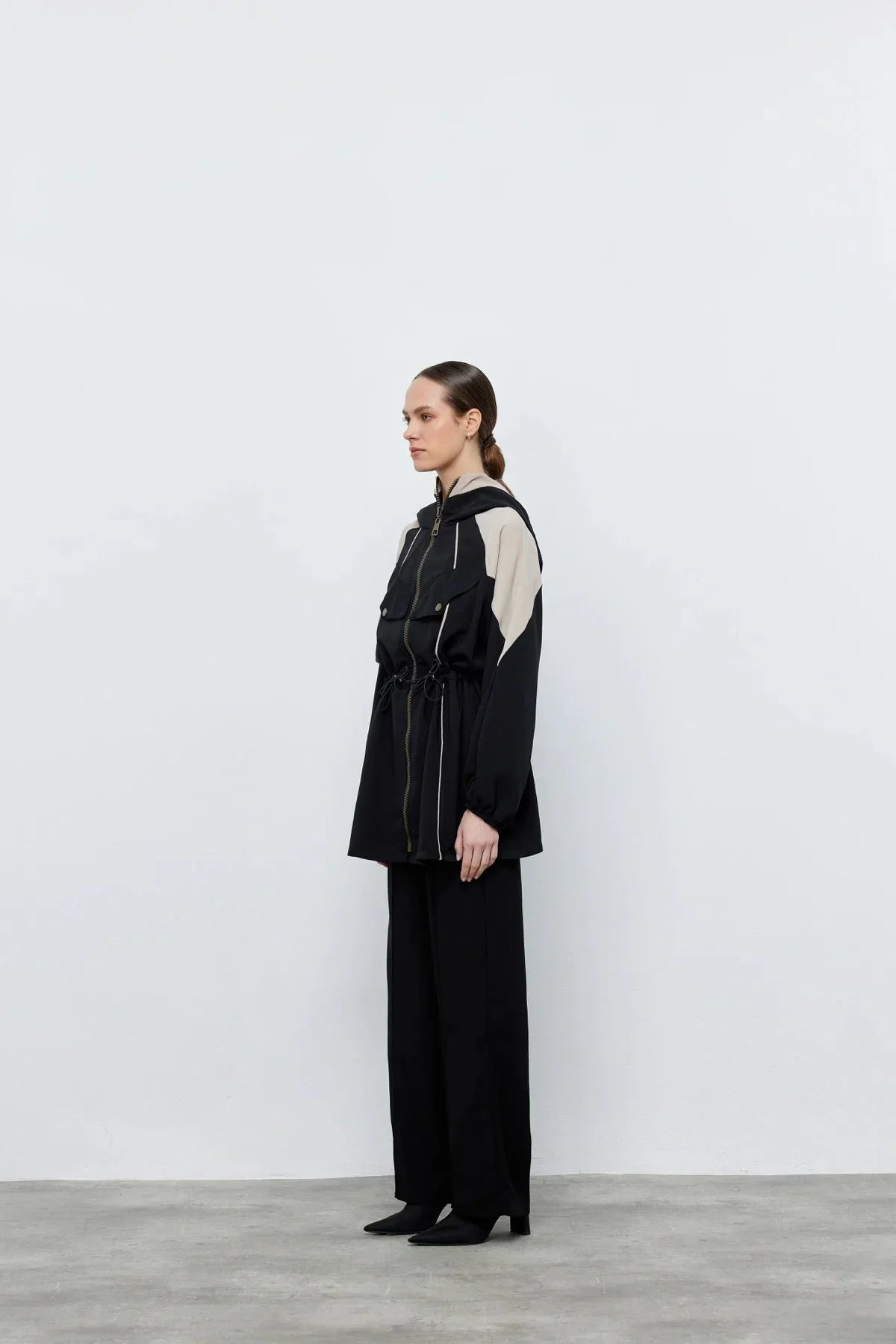 Kontrast Bel Büzgülü Ceket Pantolon Siyah