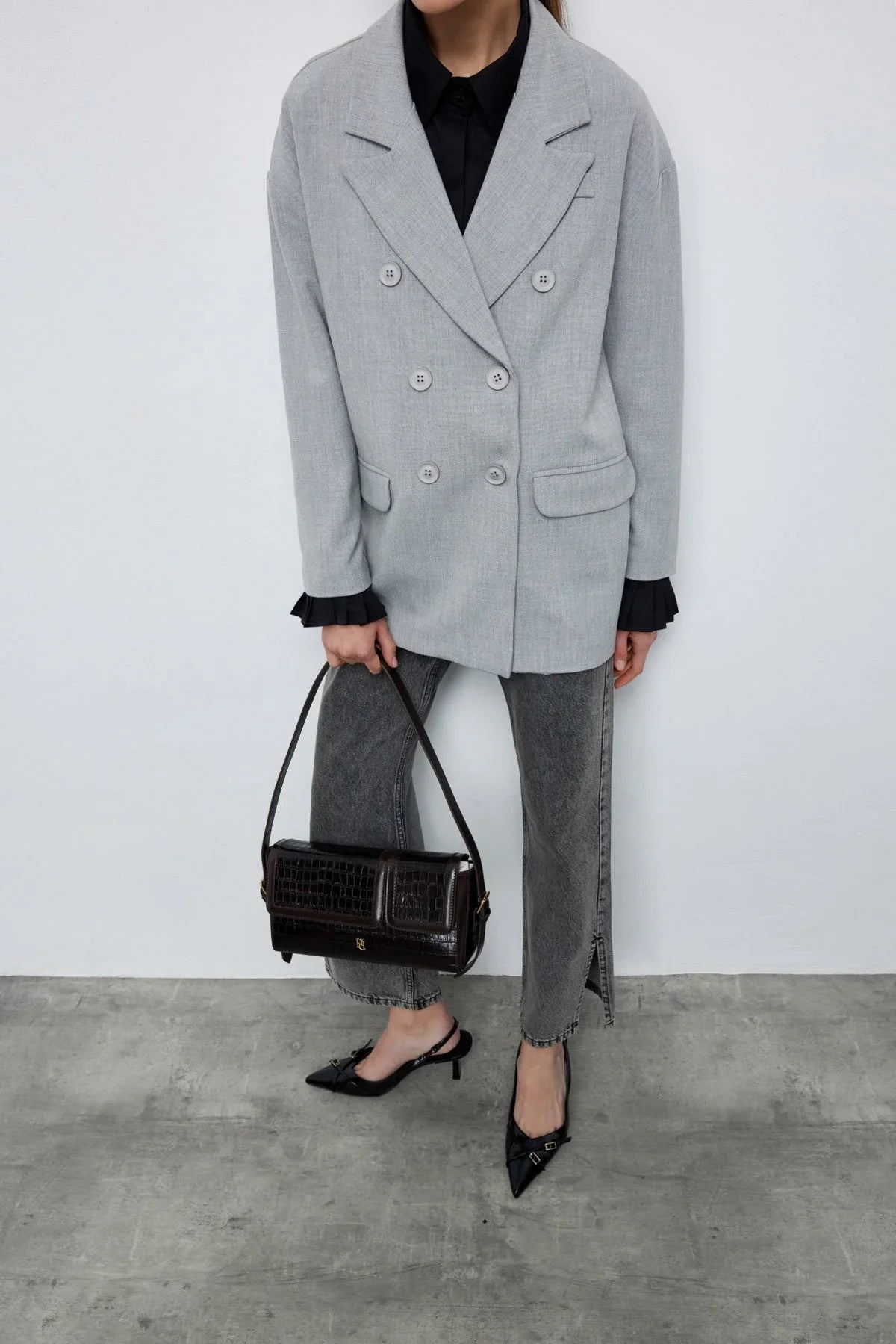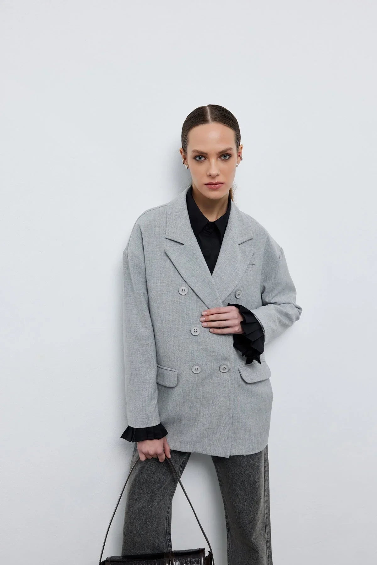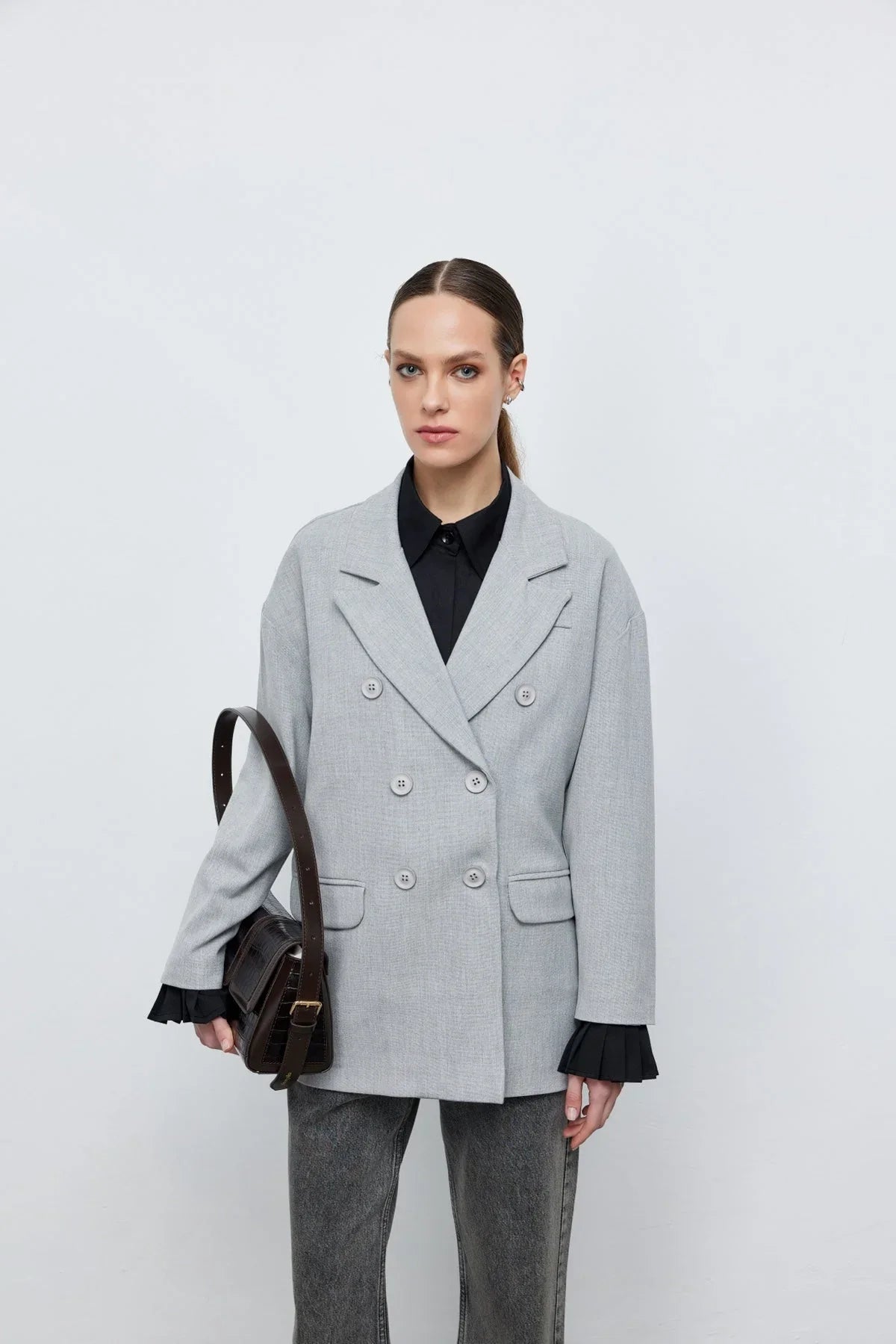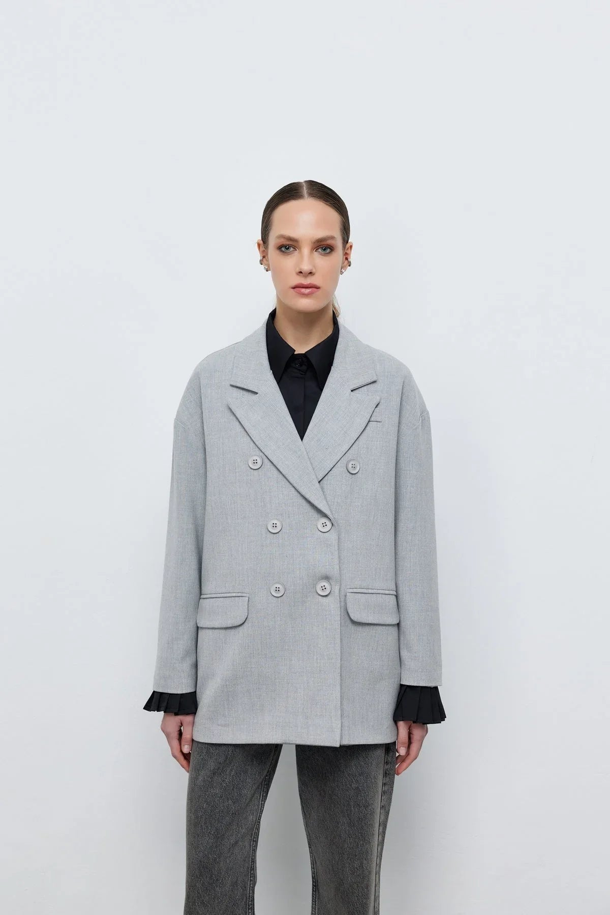 Kruvaze Blazer Ceket Gri