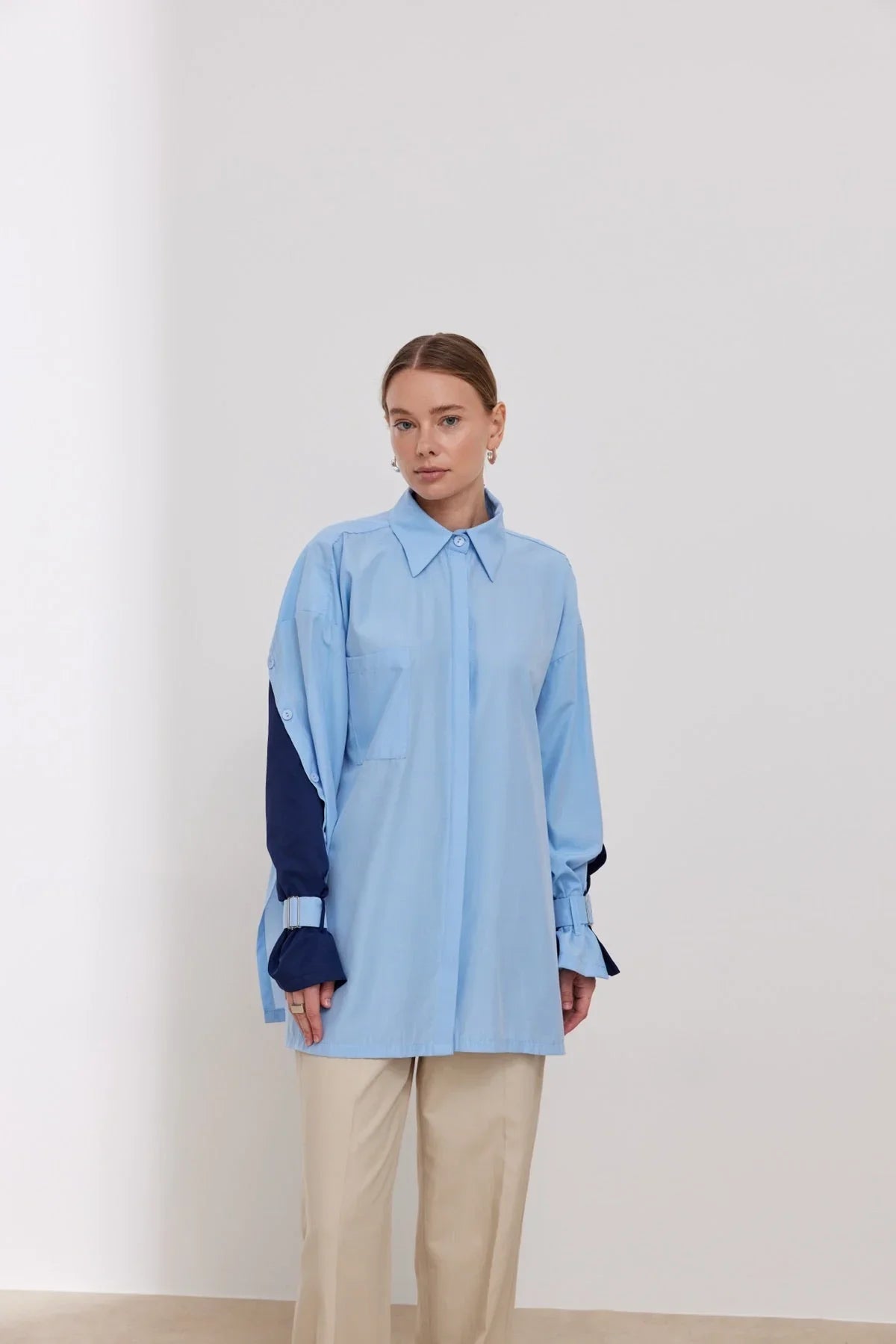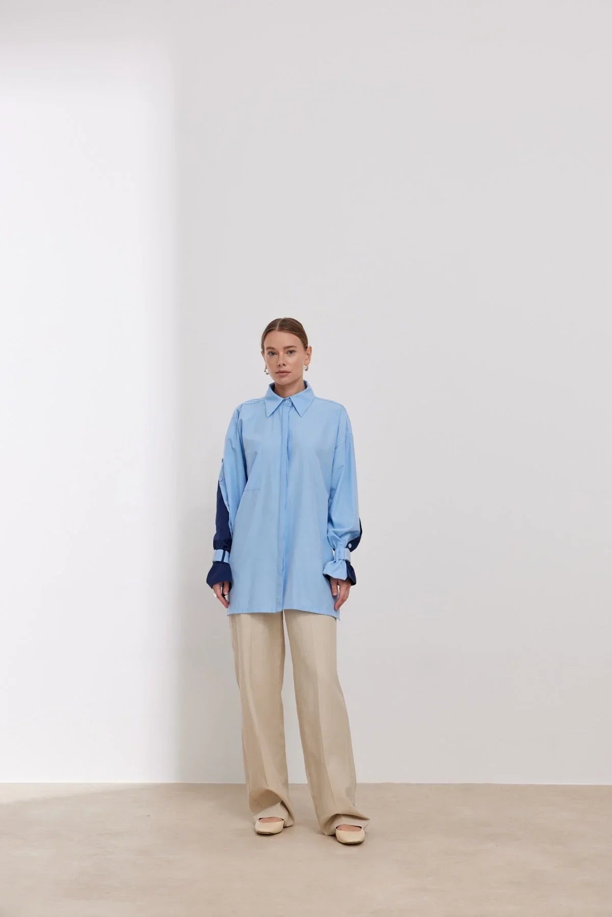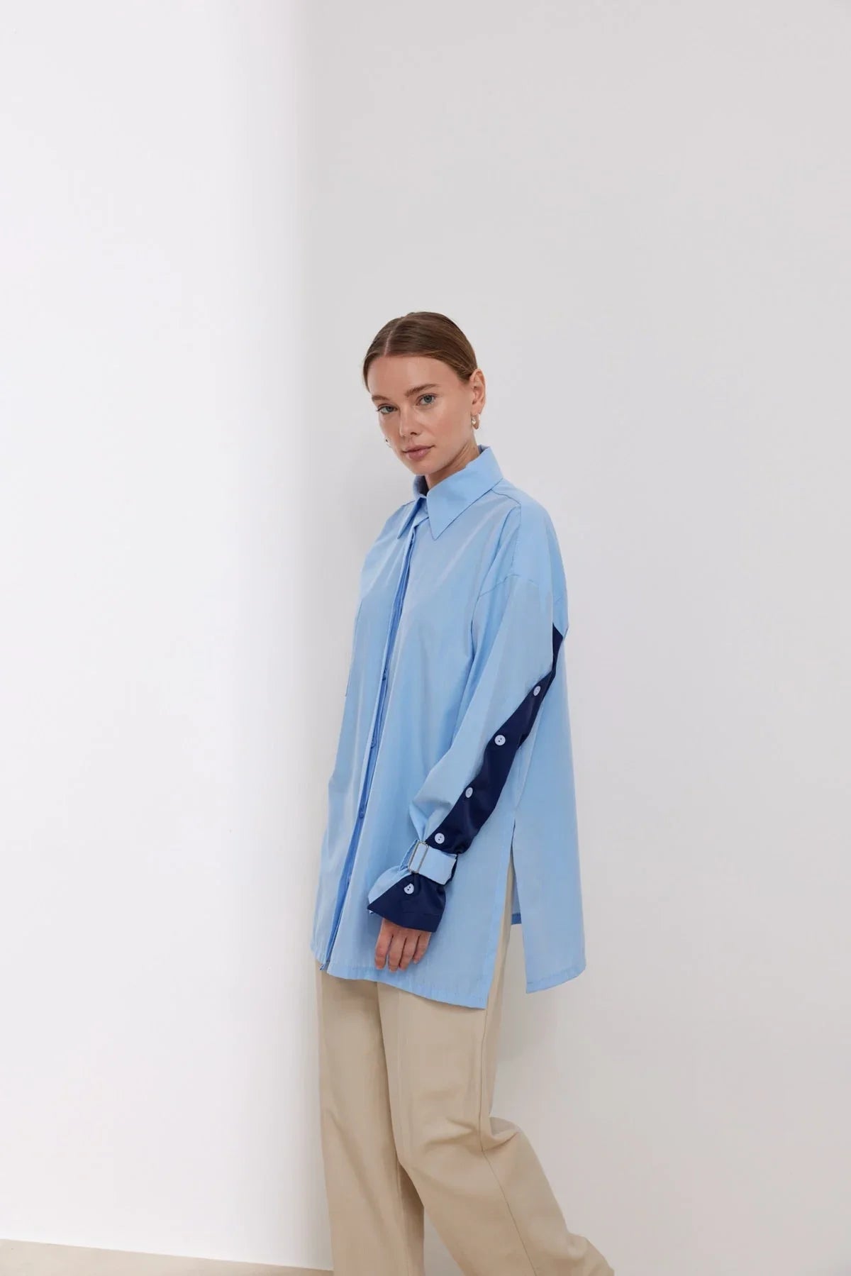Lizbon Kolu Düğmeli Gömlek Mavi