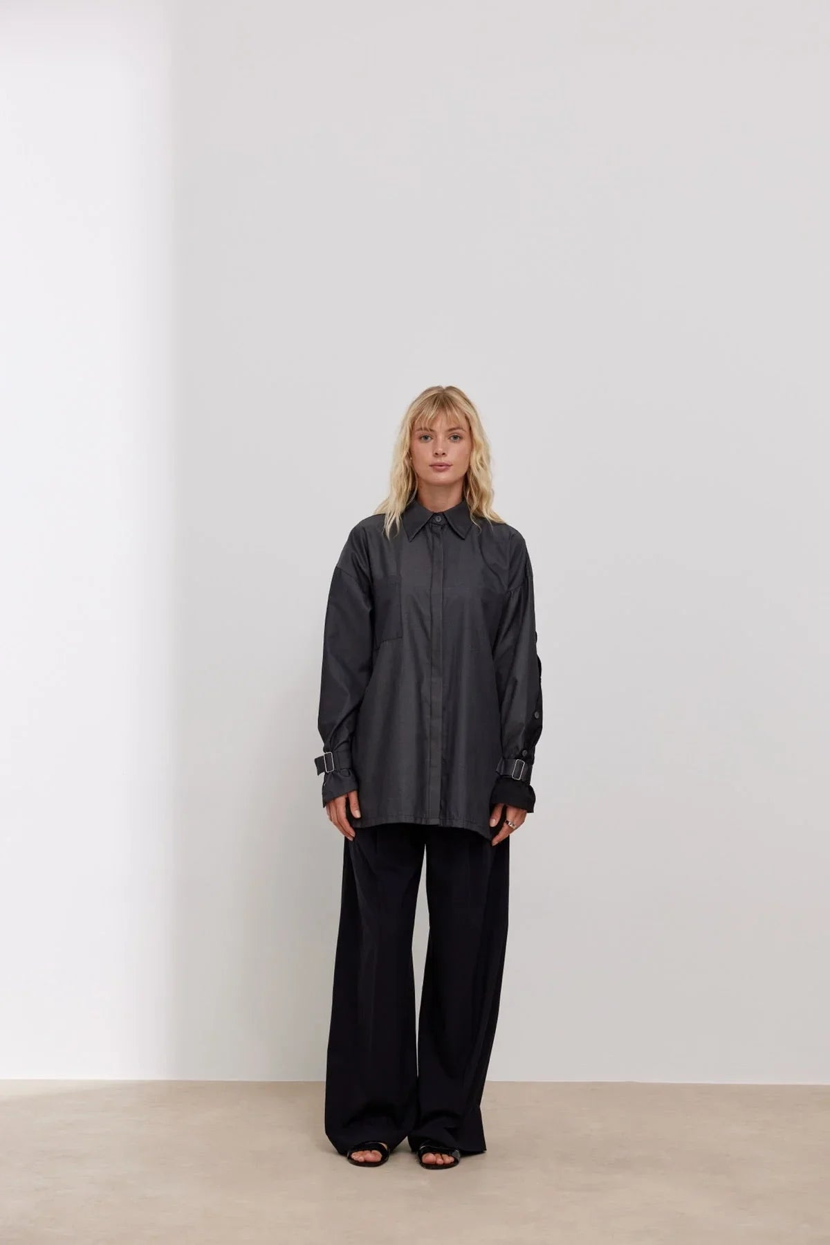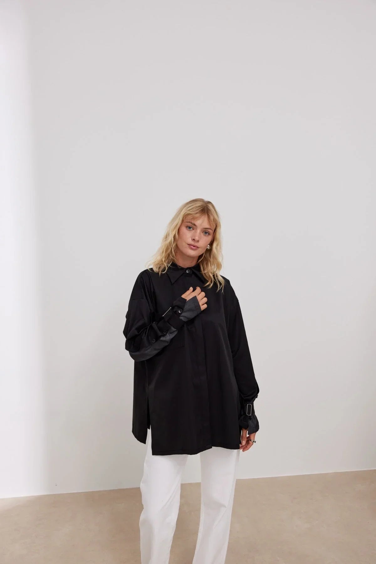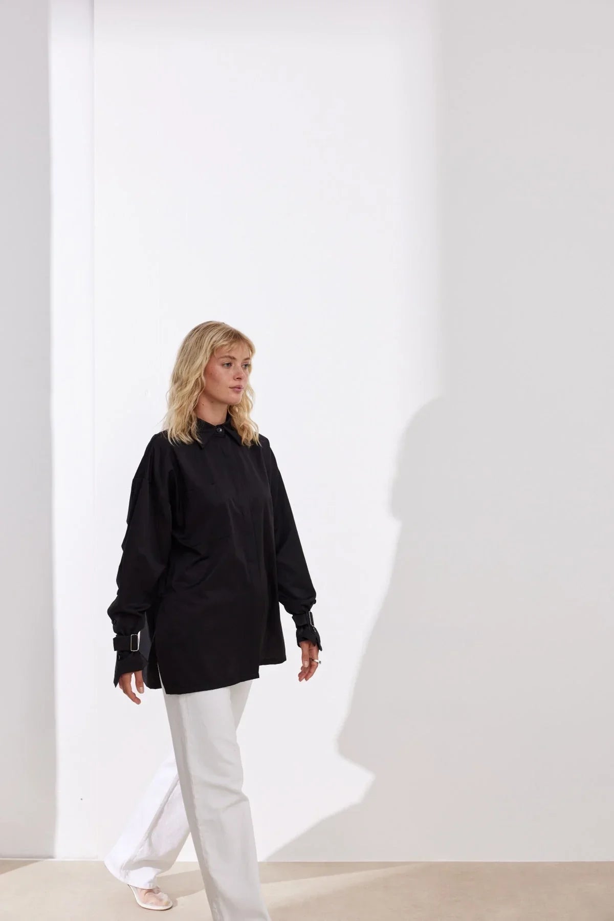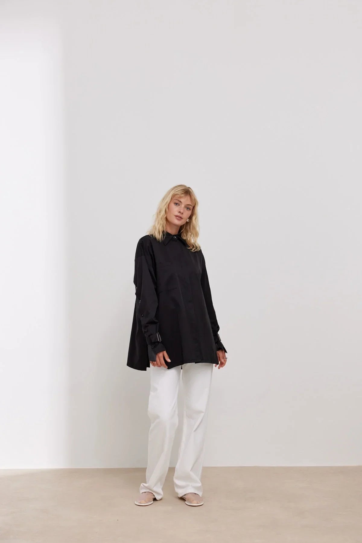 Lizbon Kolu Düğmeli Gömlek Siyah