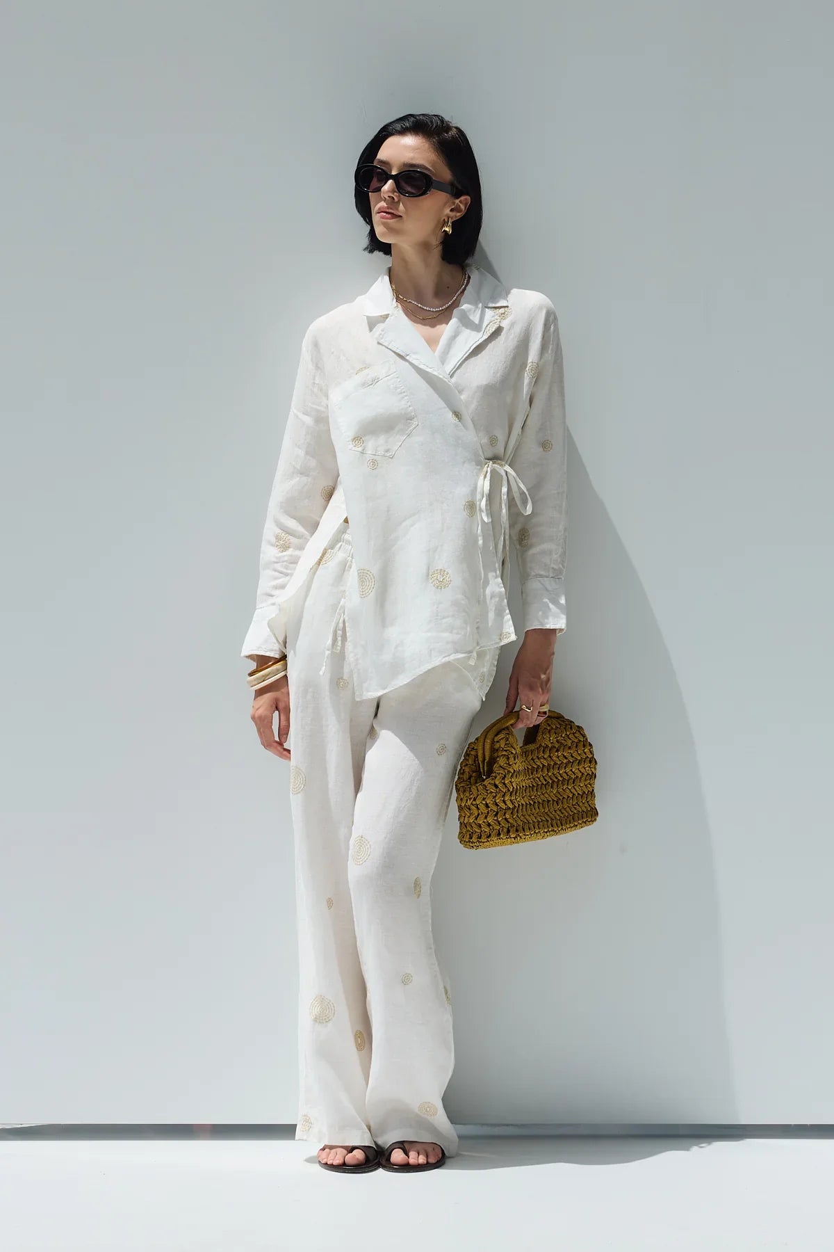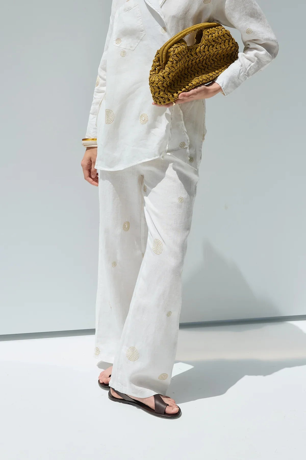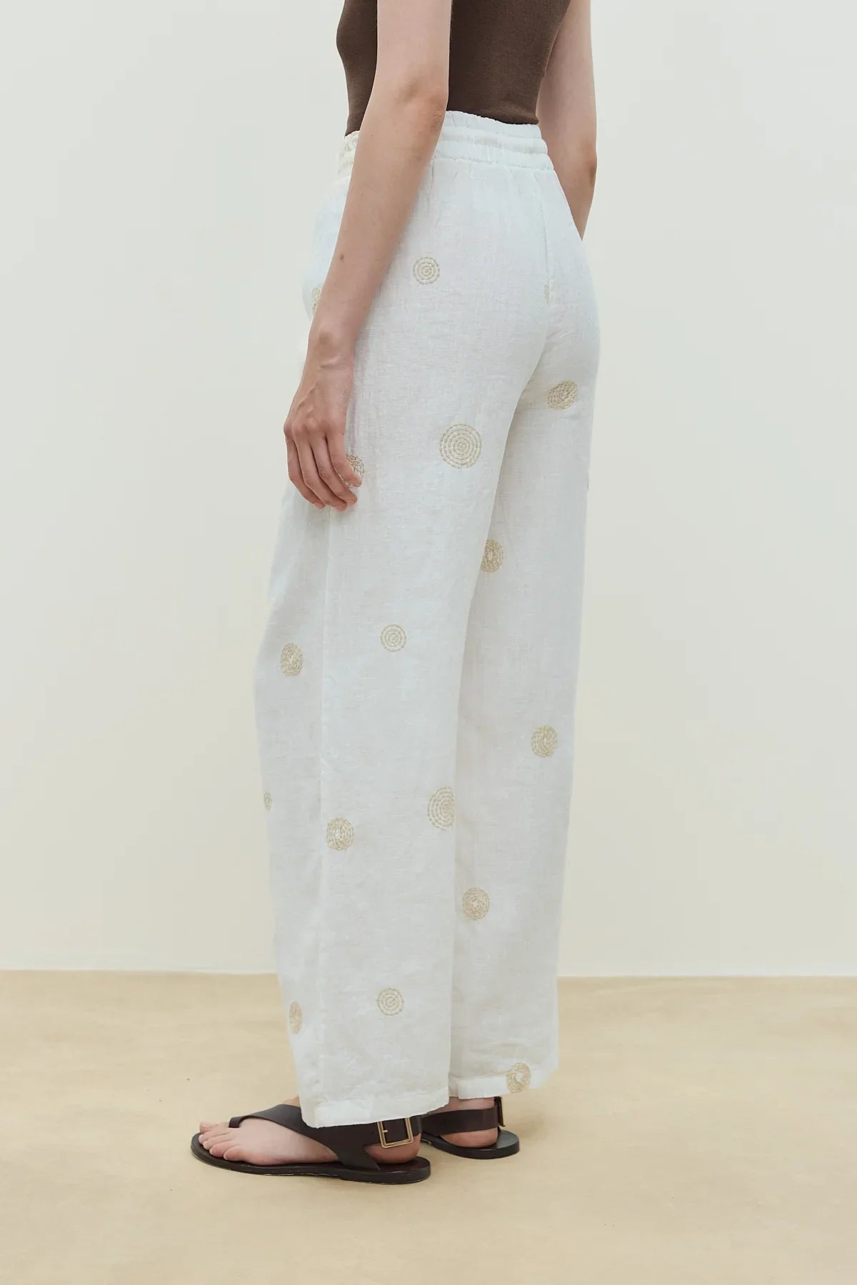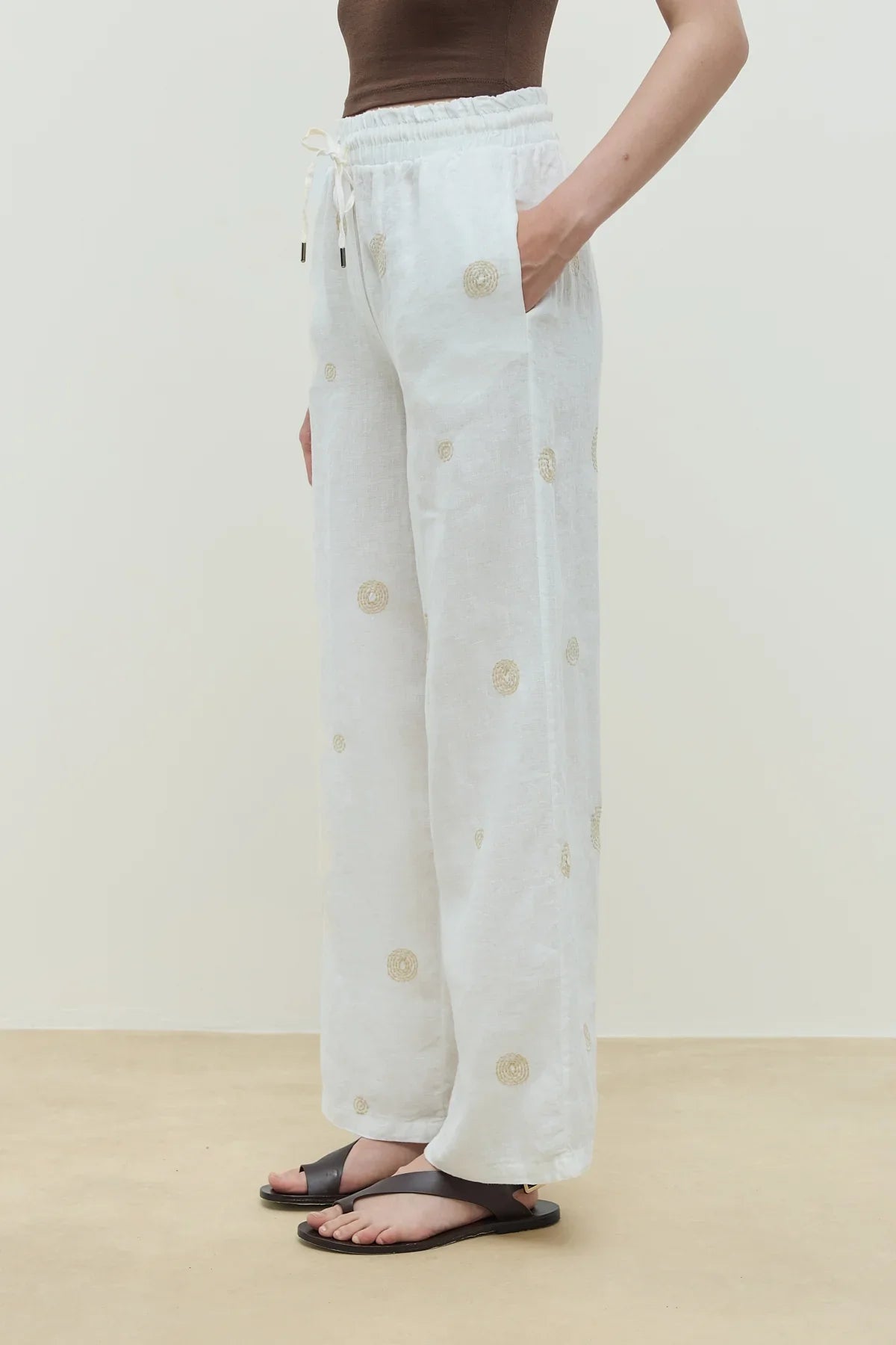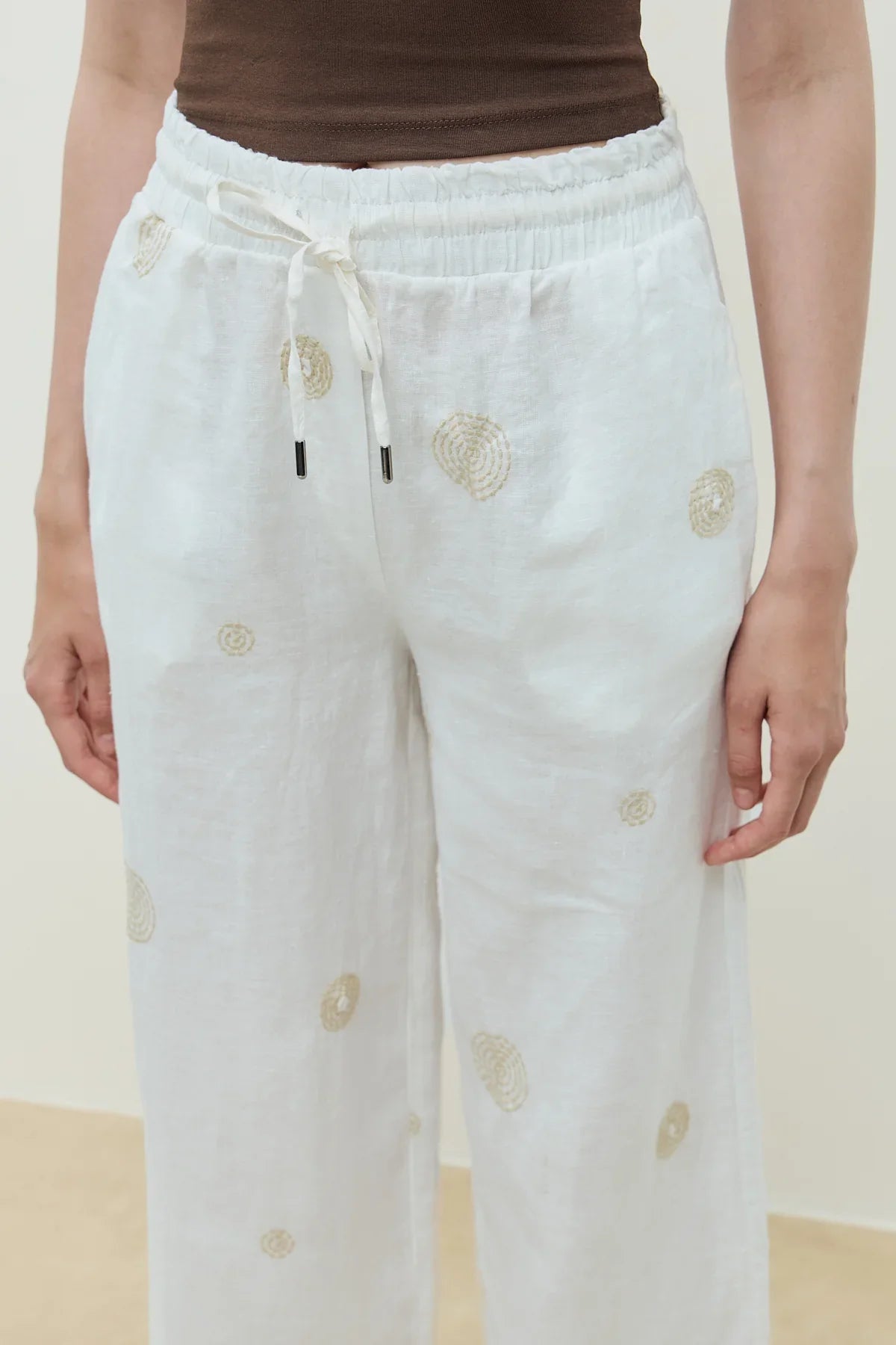 Luna Keten Nakışlı Pantolon Ekru