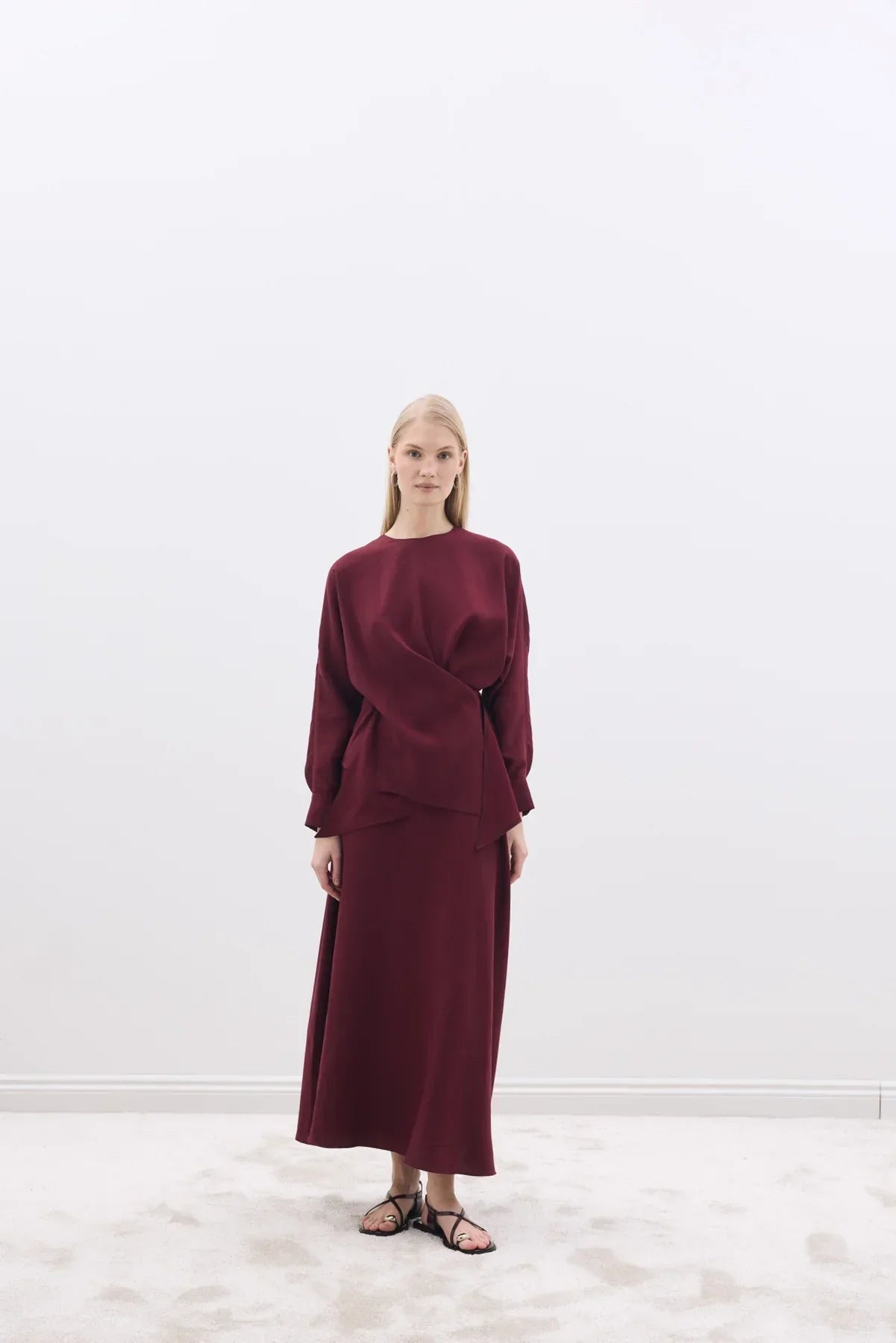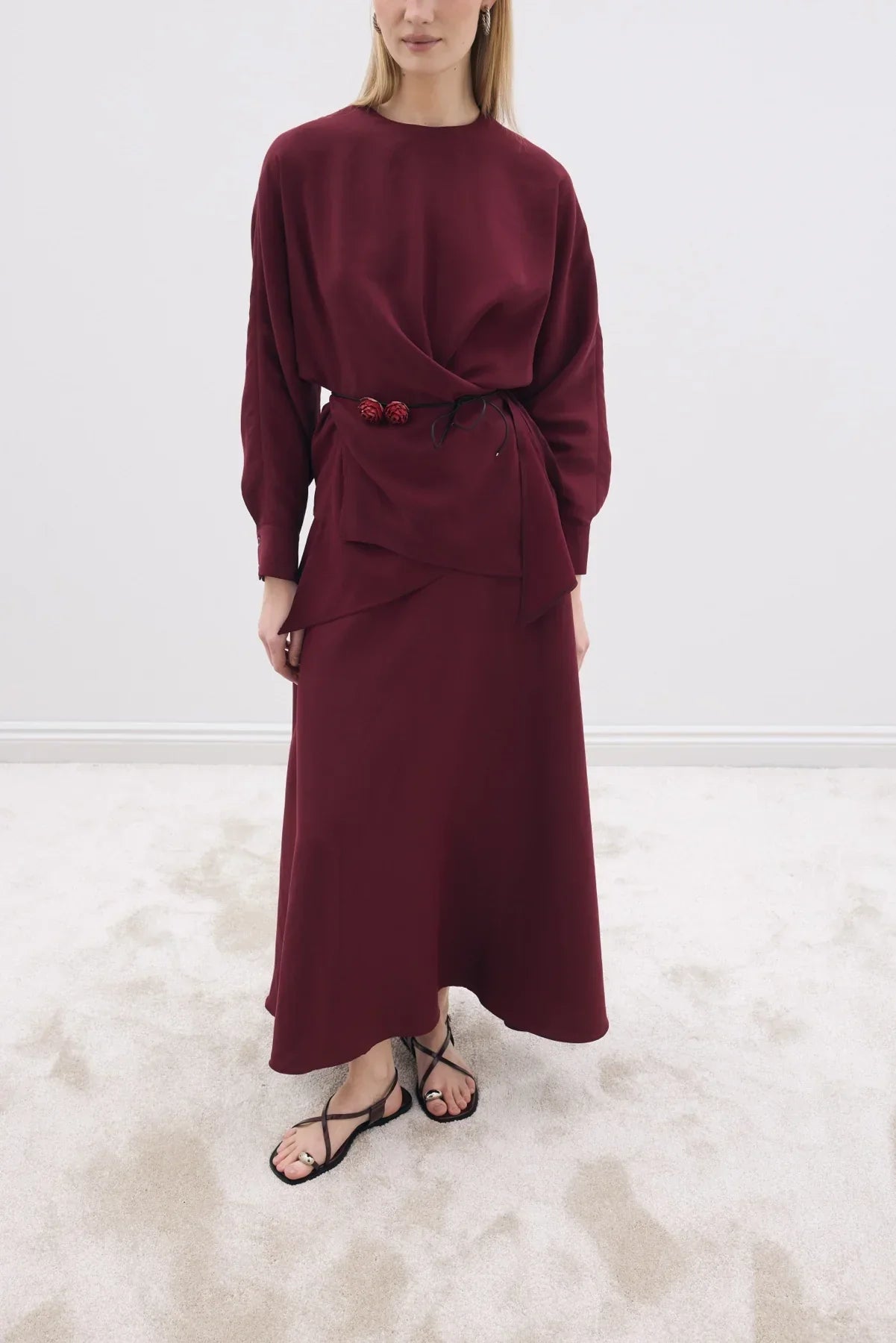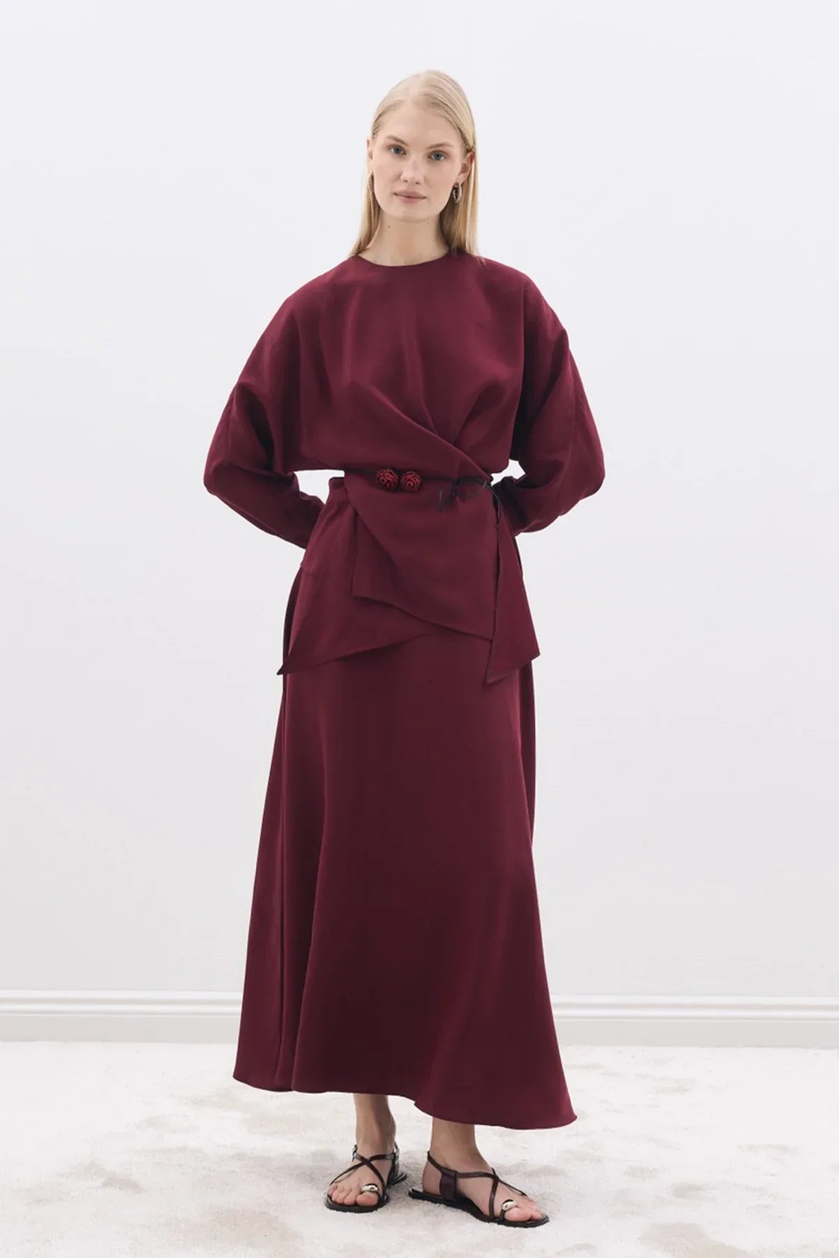 Mate Bluz Kloş Etek Takım Bordo