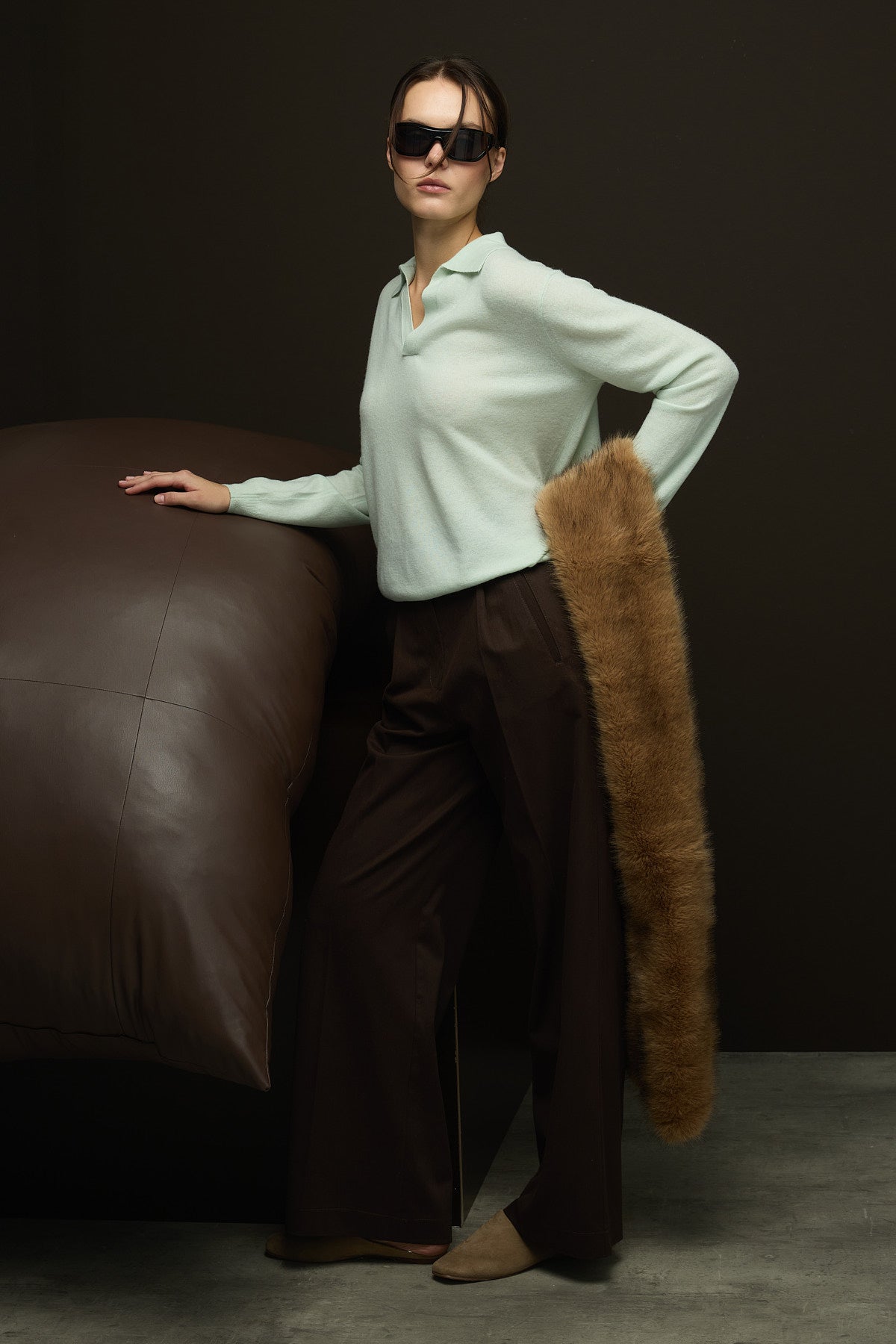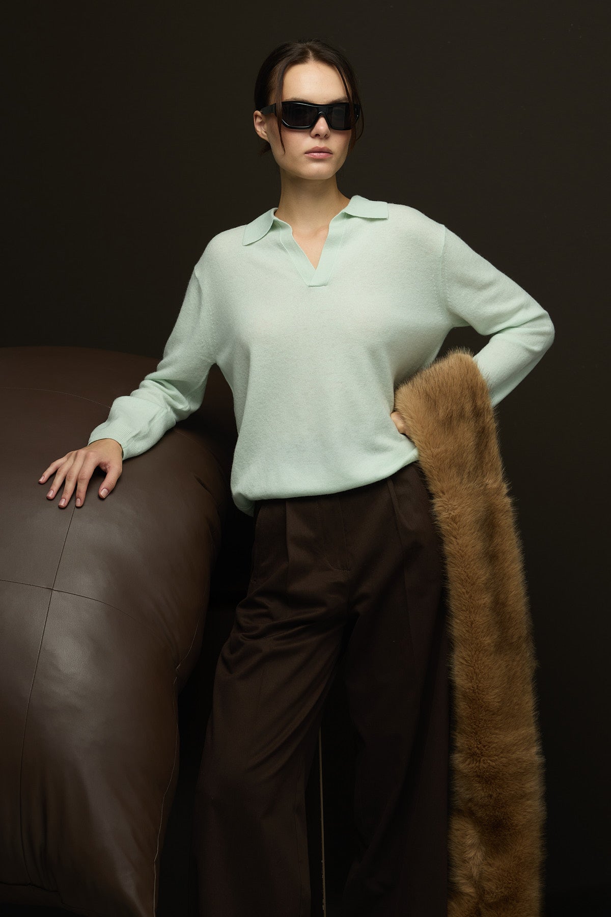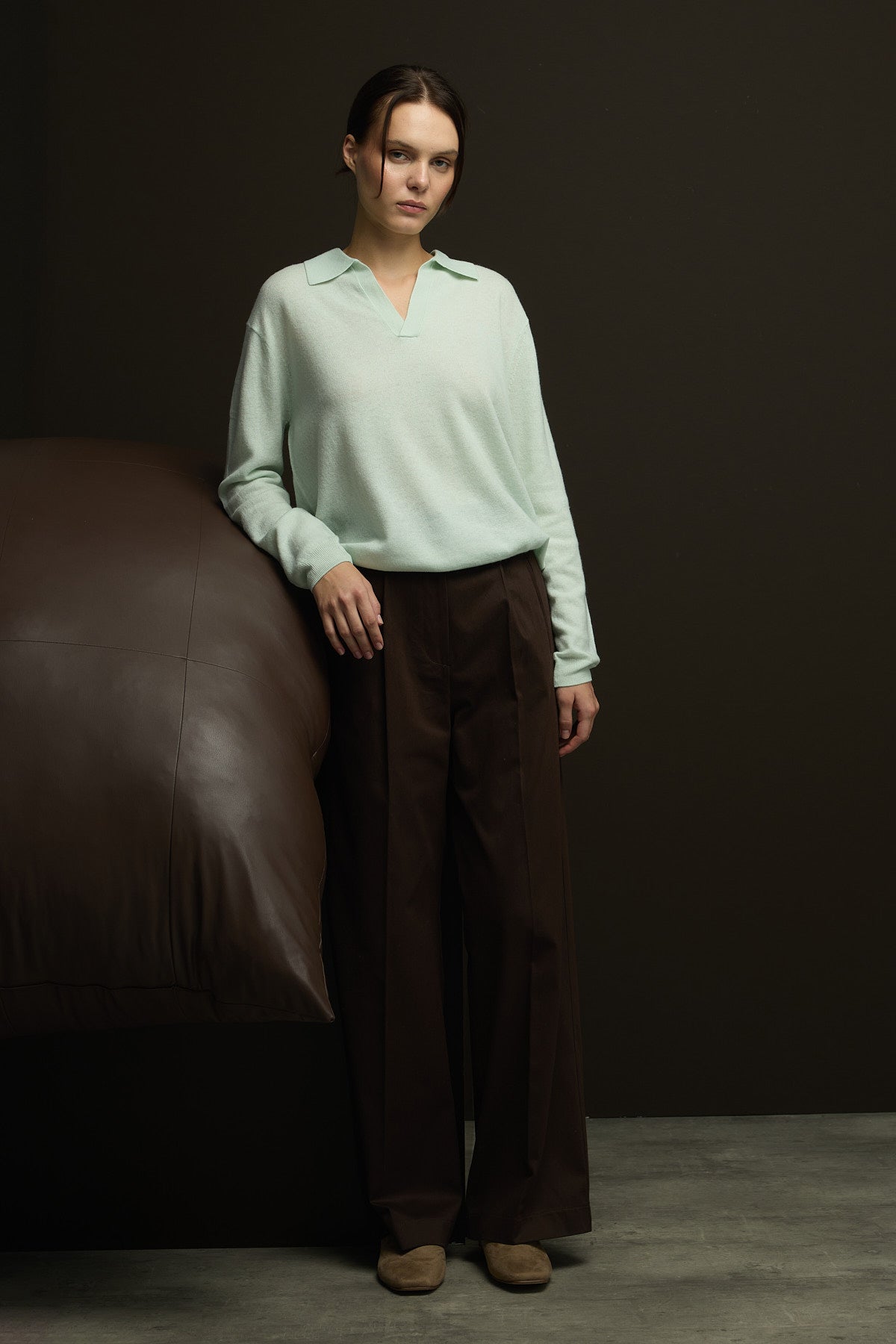Yüksek Bel,tam kalıp,önden pileli beli kemerli palazzo kesim %100 Pamuk Pantolon.