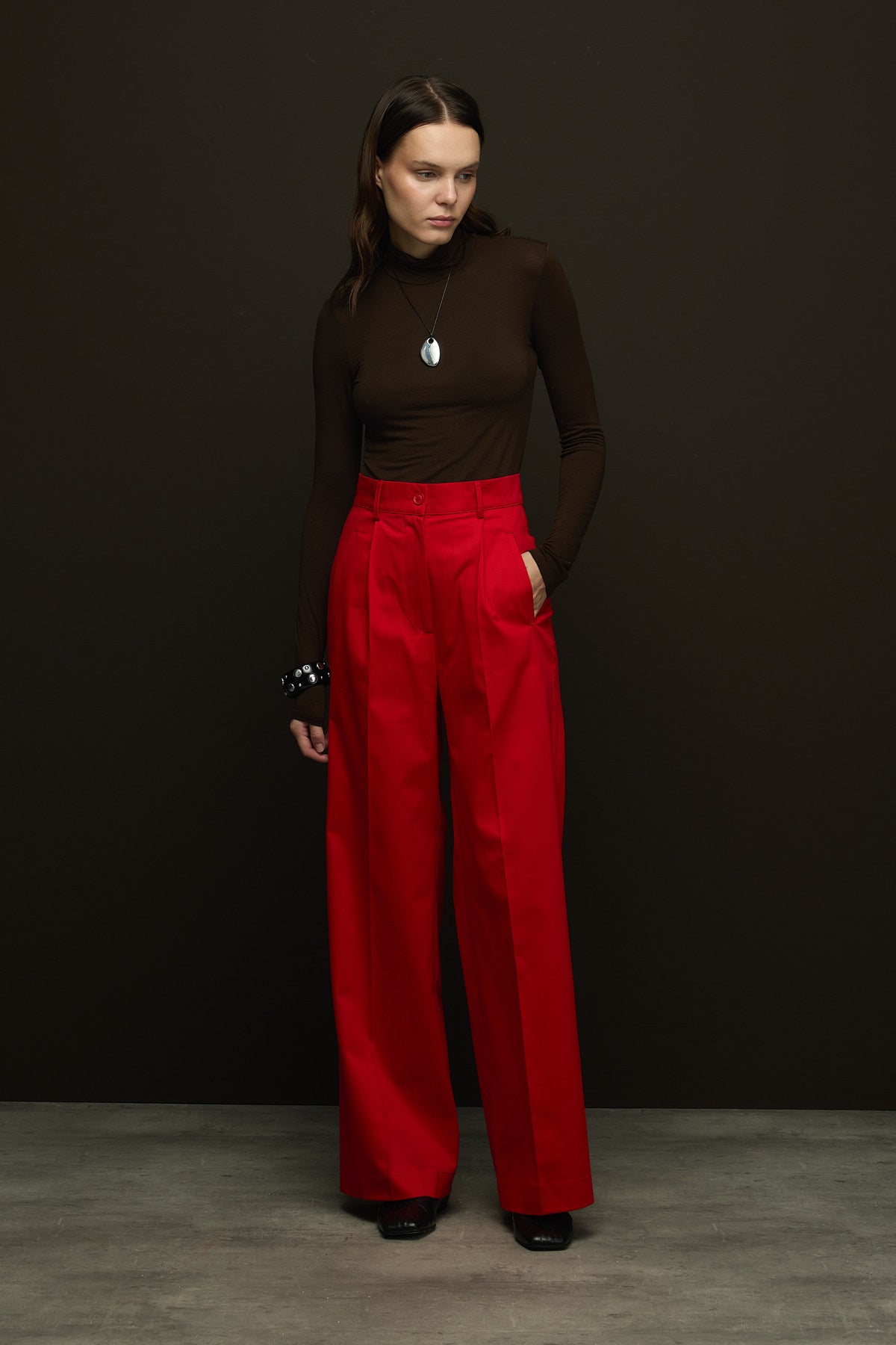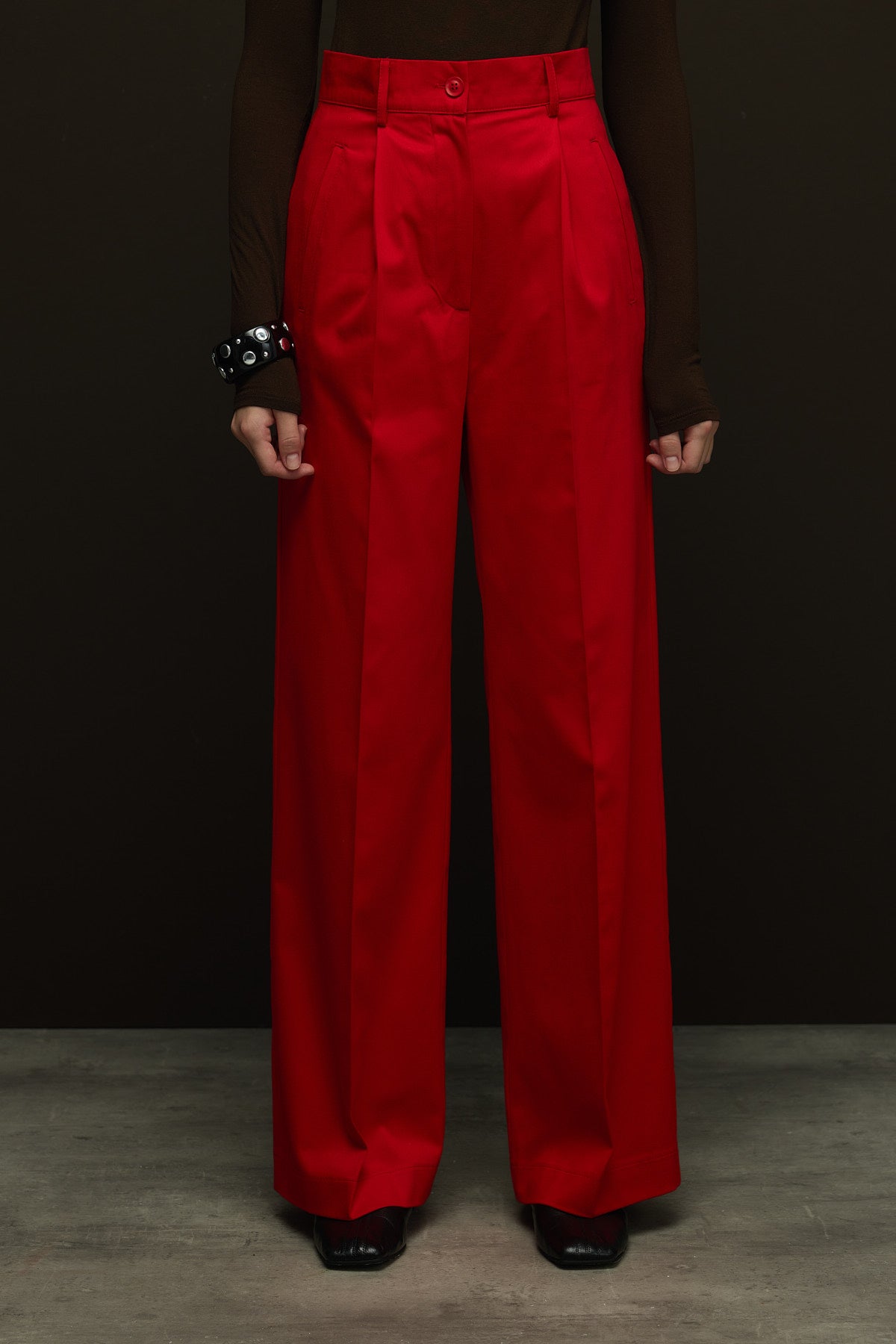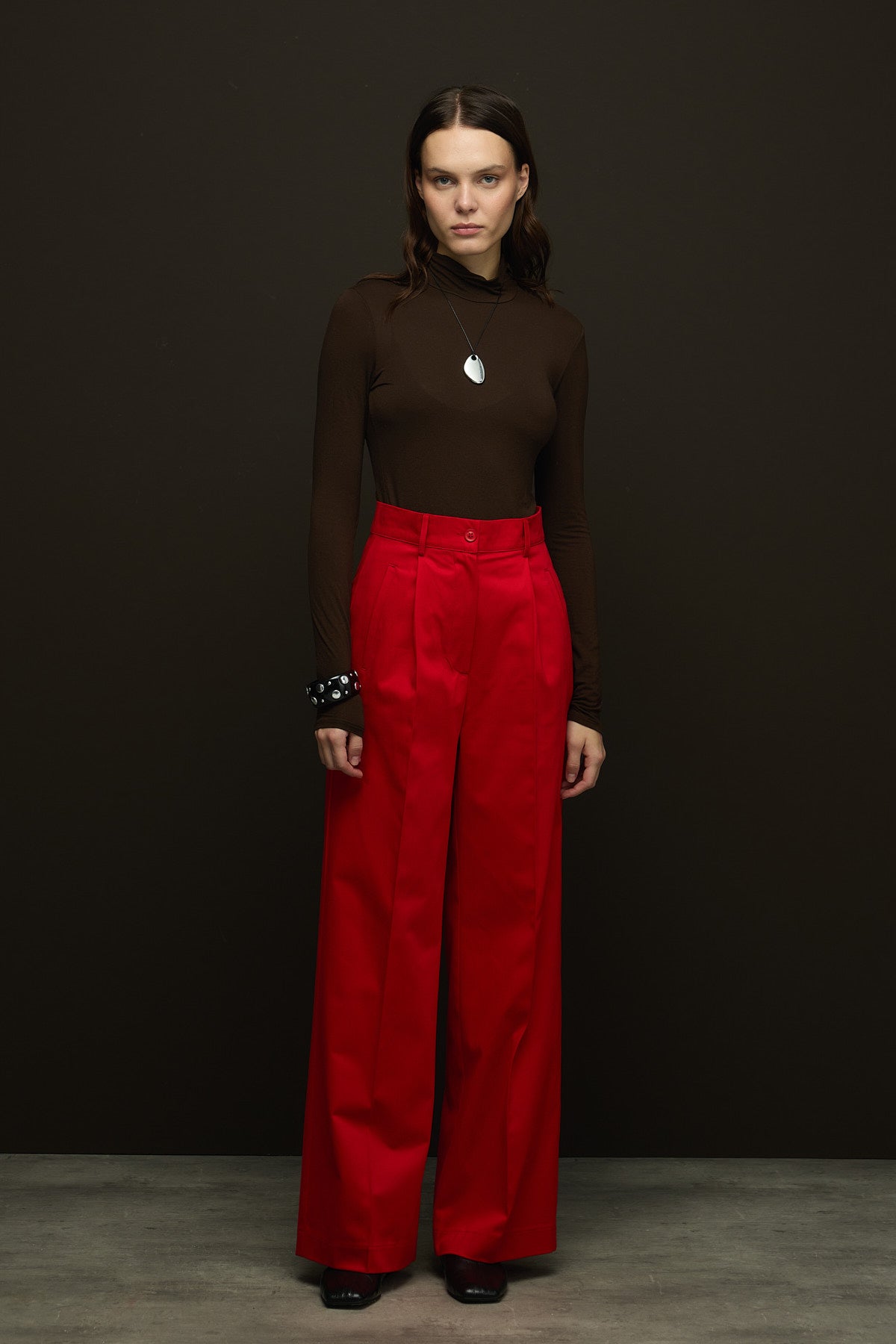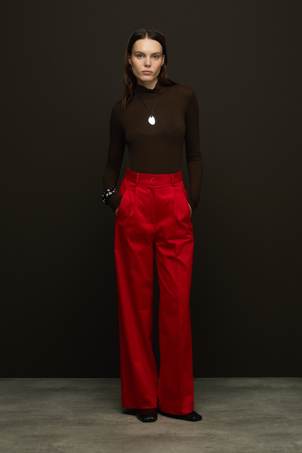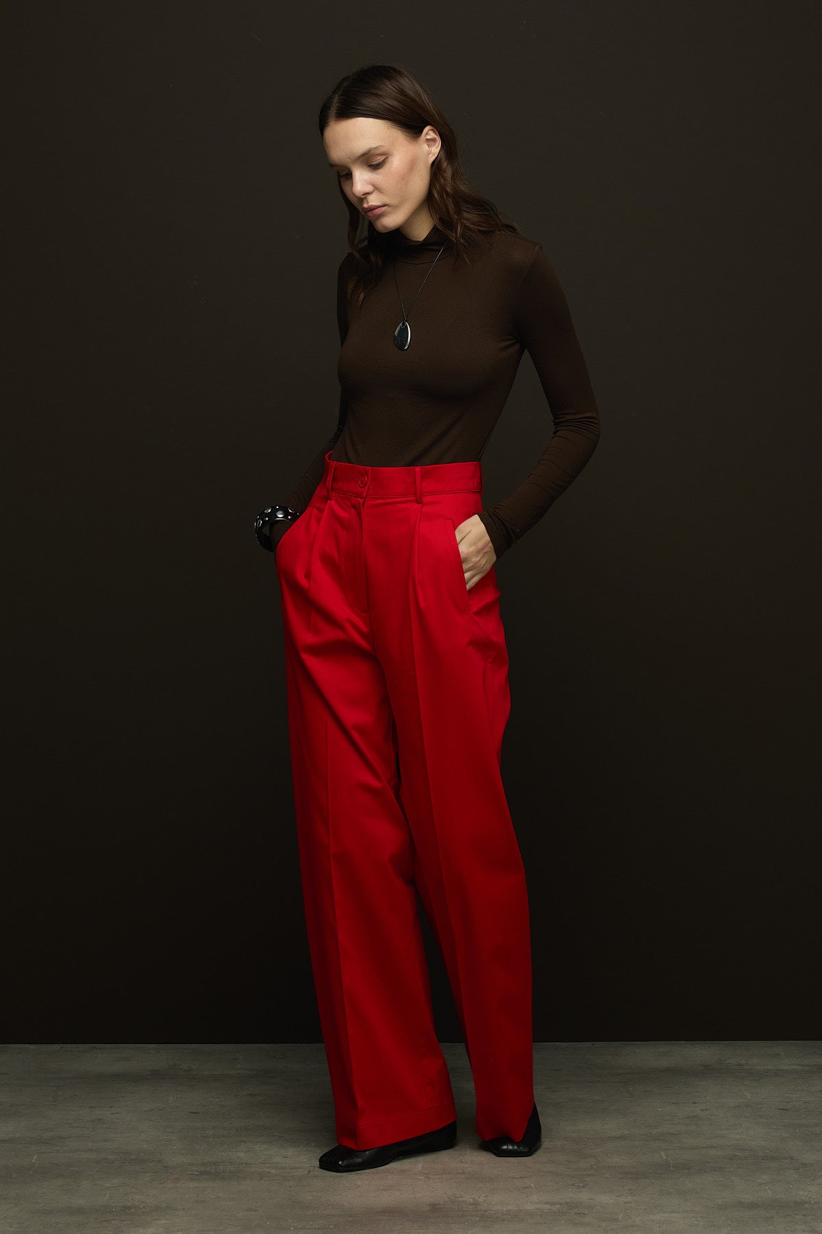 Yüksek Bel,tam kalıp,önden pileli beli kemerli palazzo kesim %100 Pamuk Pantolon.