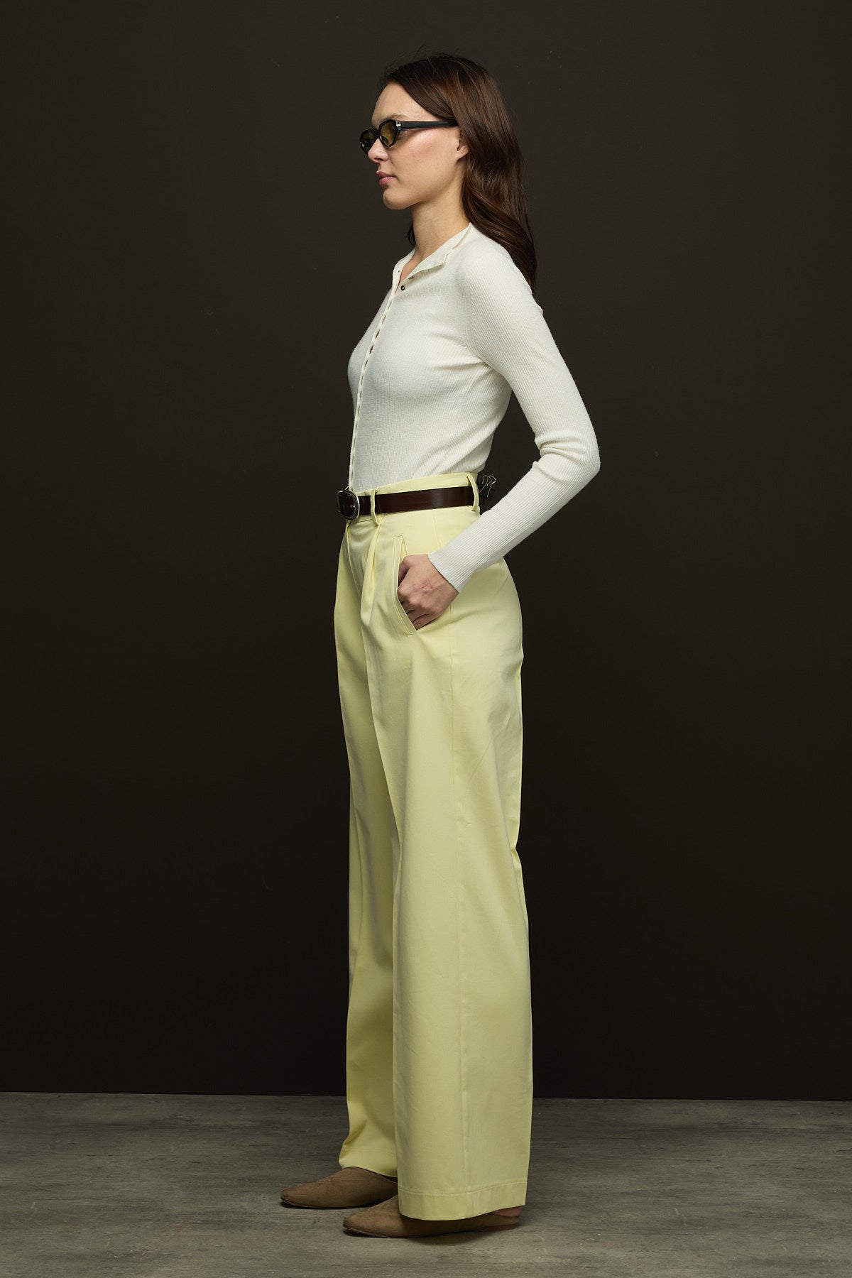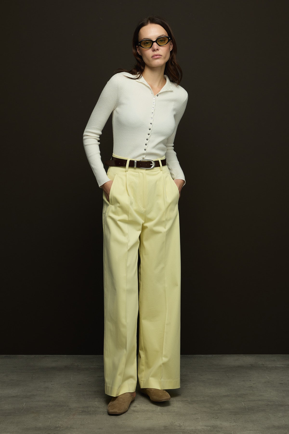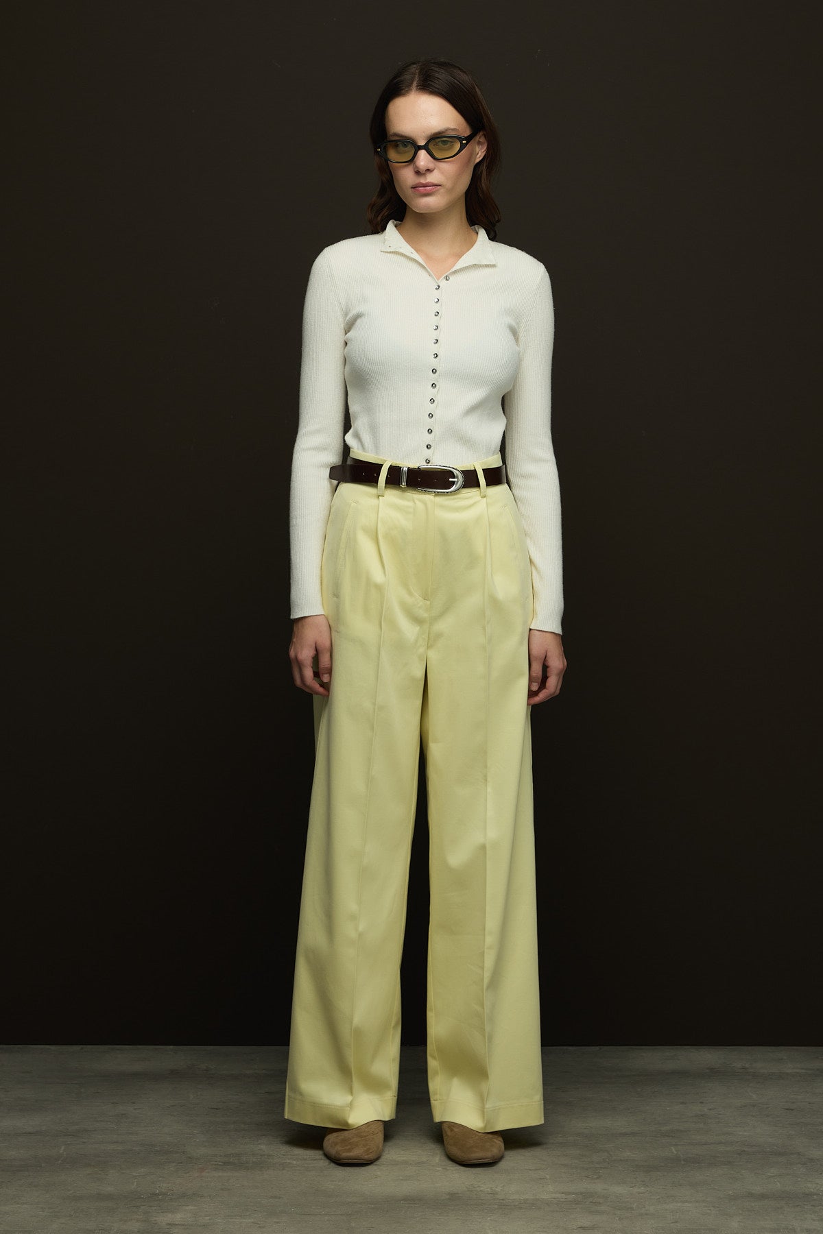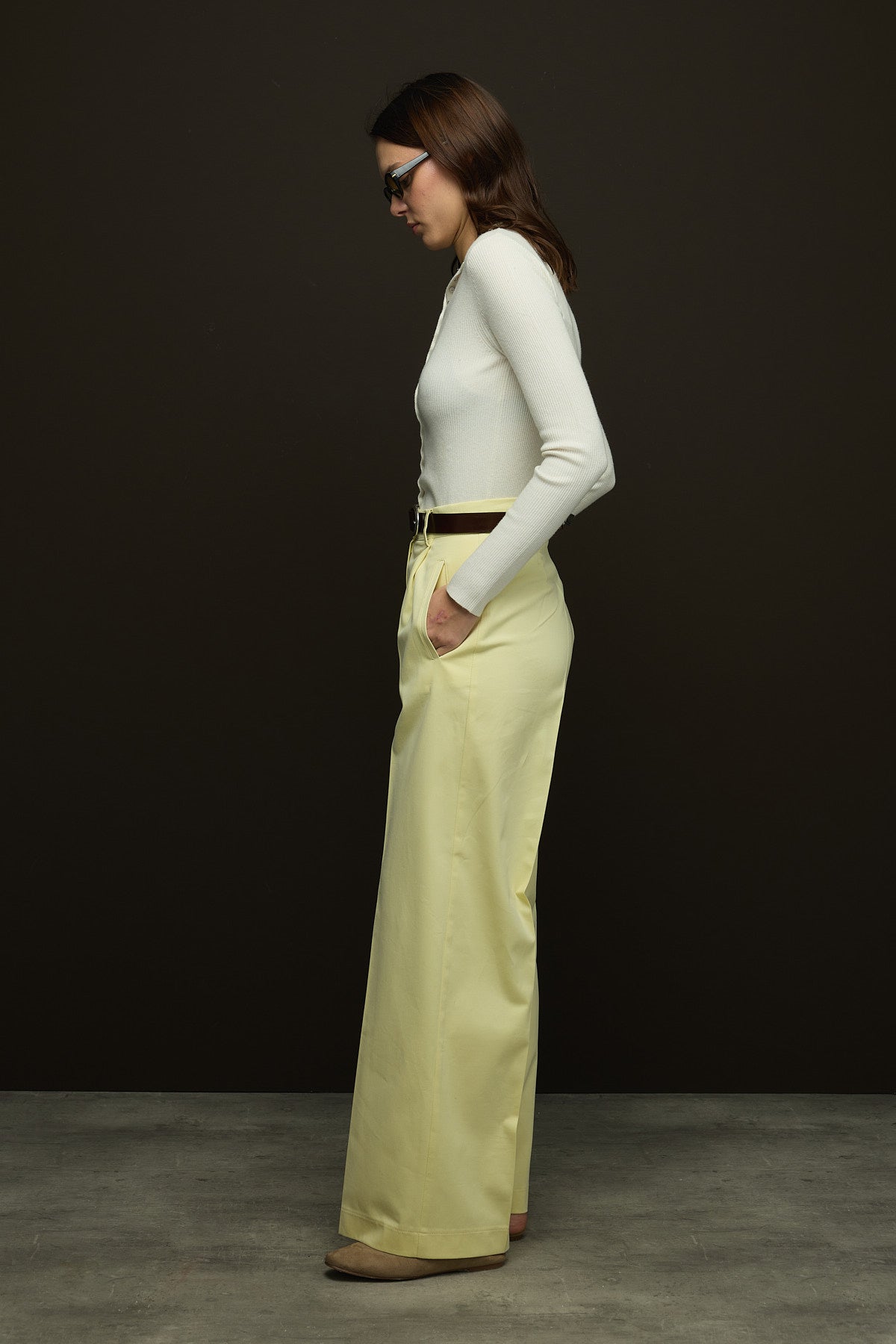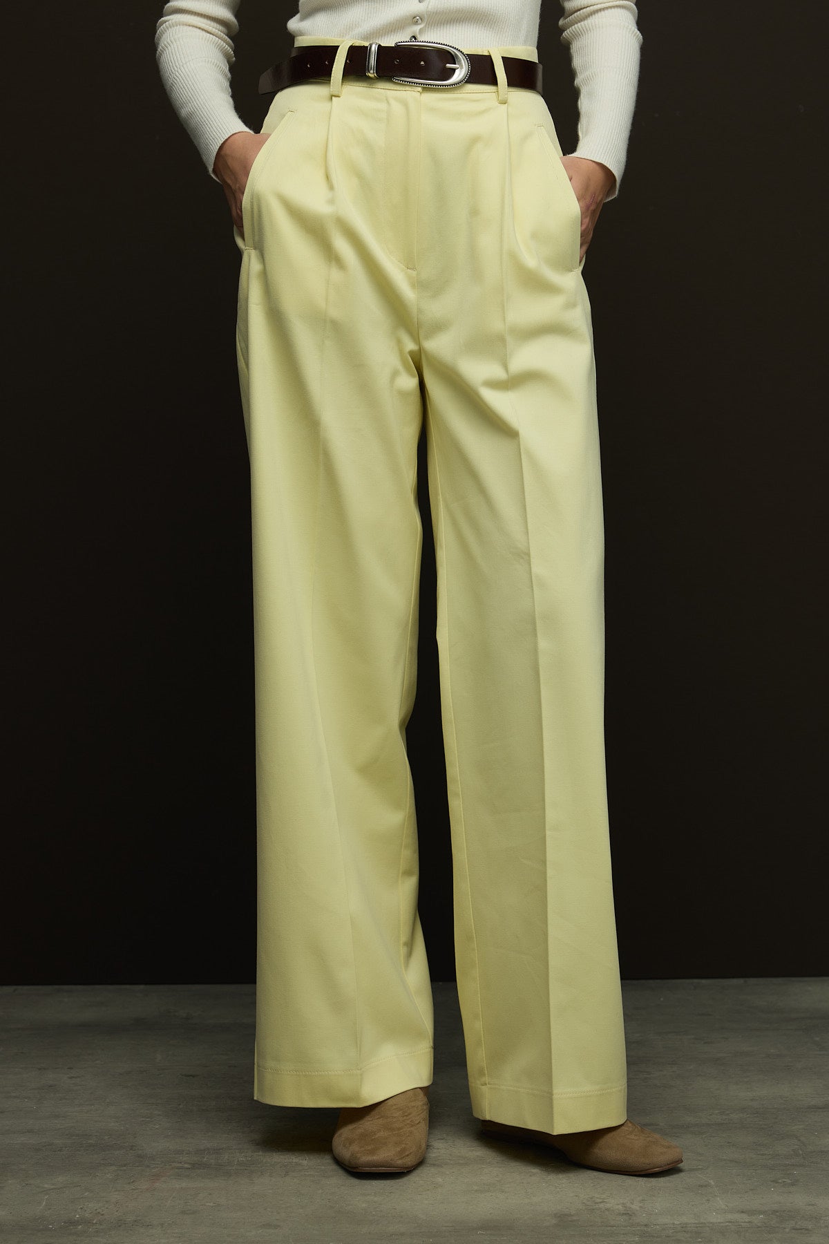 Yüksek Bel,tam kalıp,önden pileli beli kemerli palazzo kesim %100 Pamuk Pantolon.