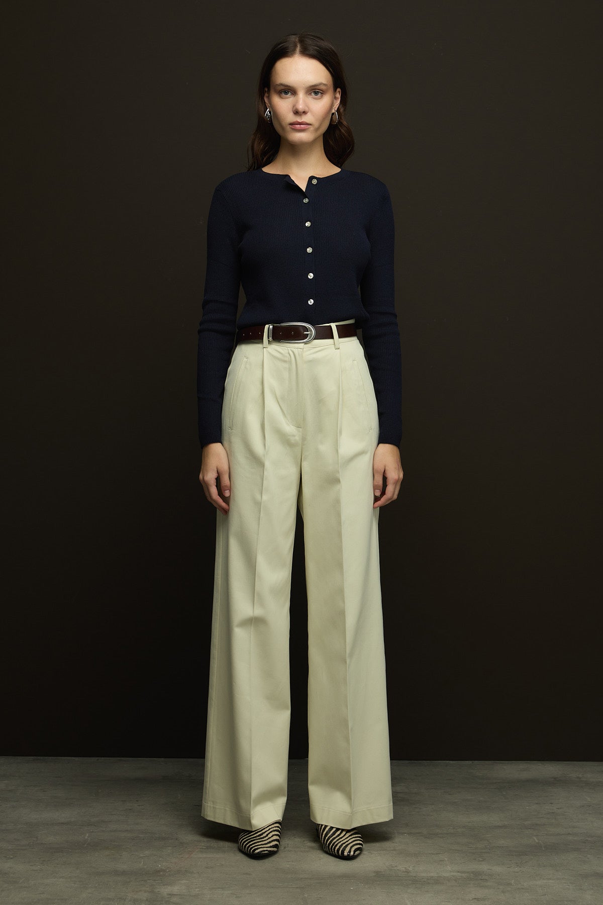 Yüksek Bel,tam kalıp,önden pileli beli kemerli palazzo kesim %100 Pamuk Pantolon.