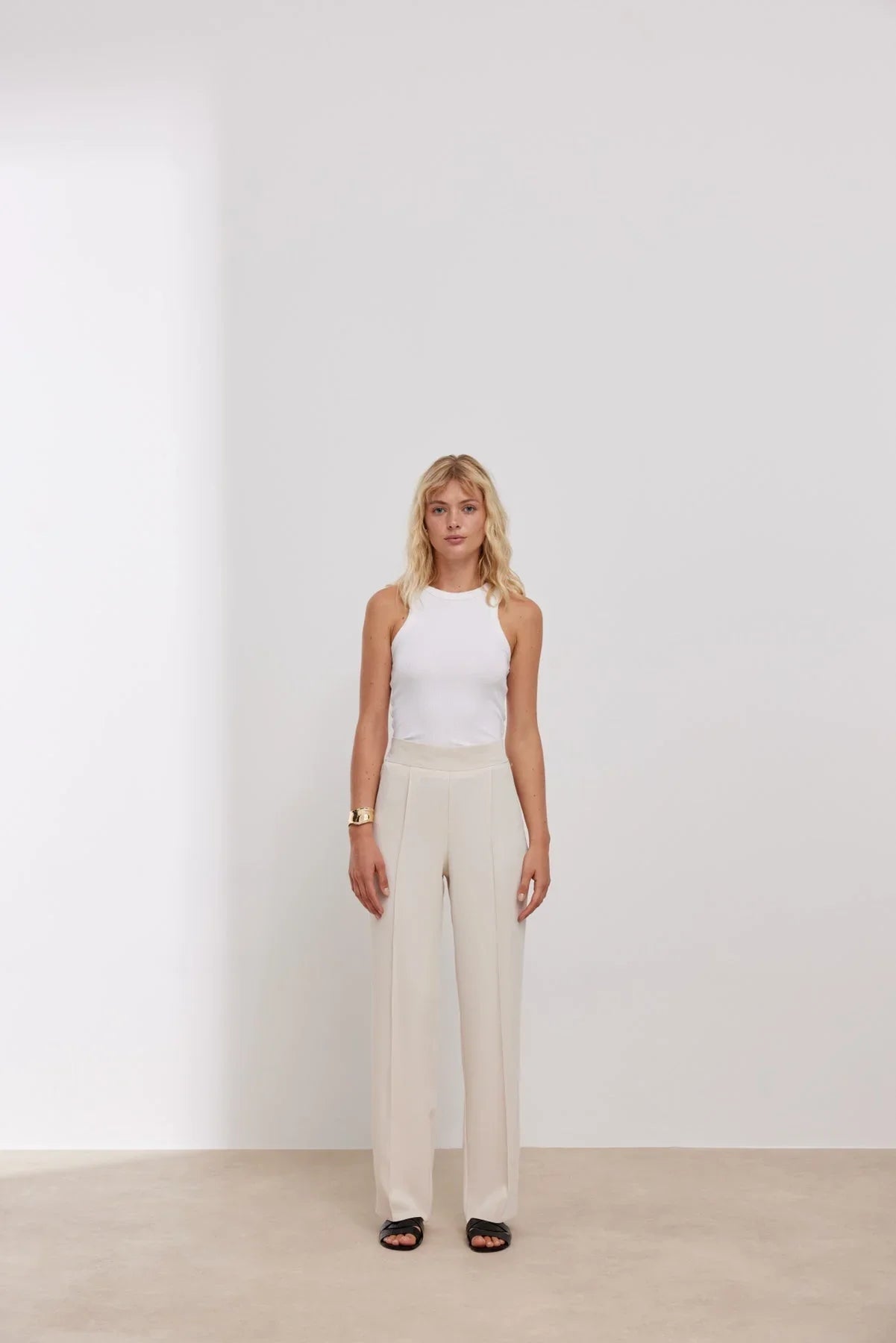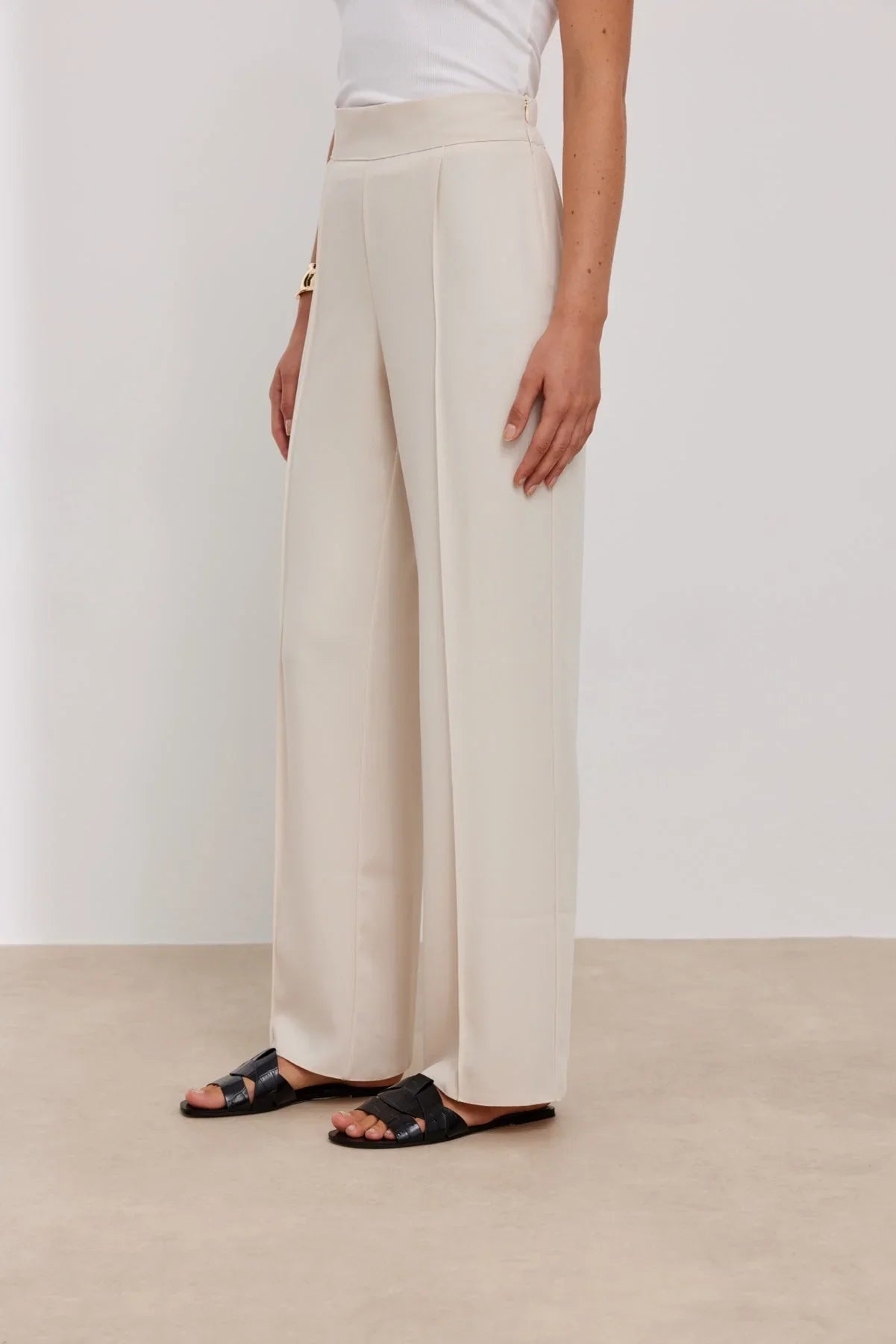 Önden Dikişli Yüksek Bel Pantolon Krem