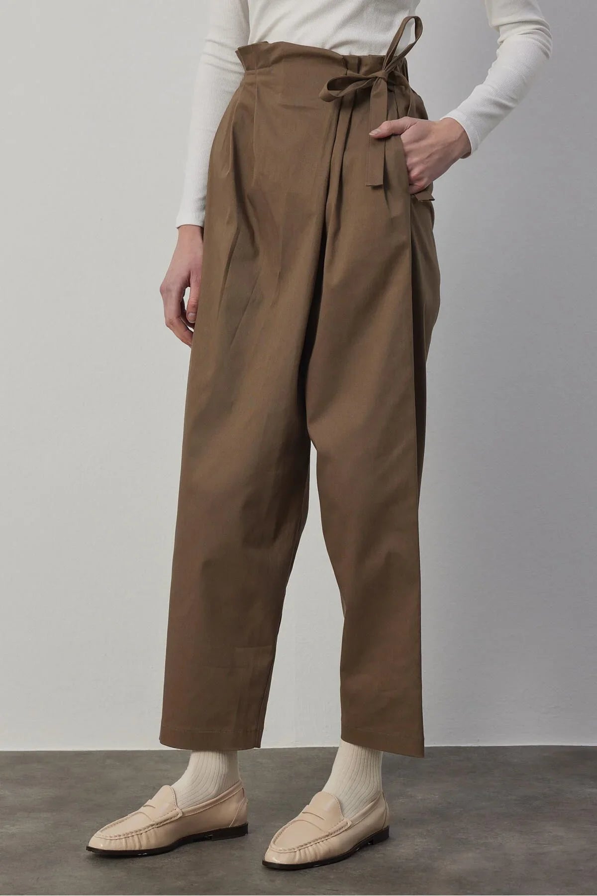 Önü Kapaklı Stil Pantolon Haki