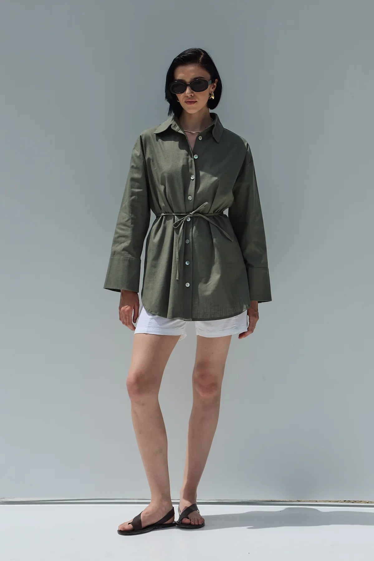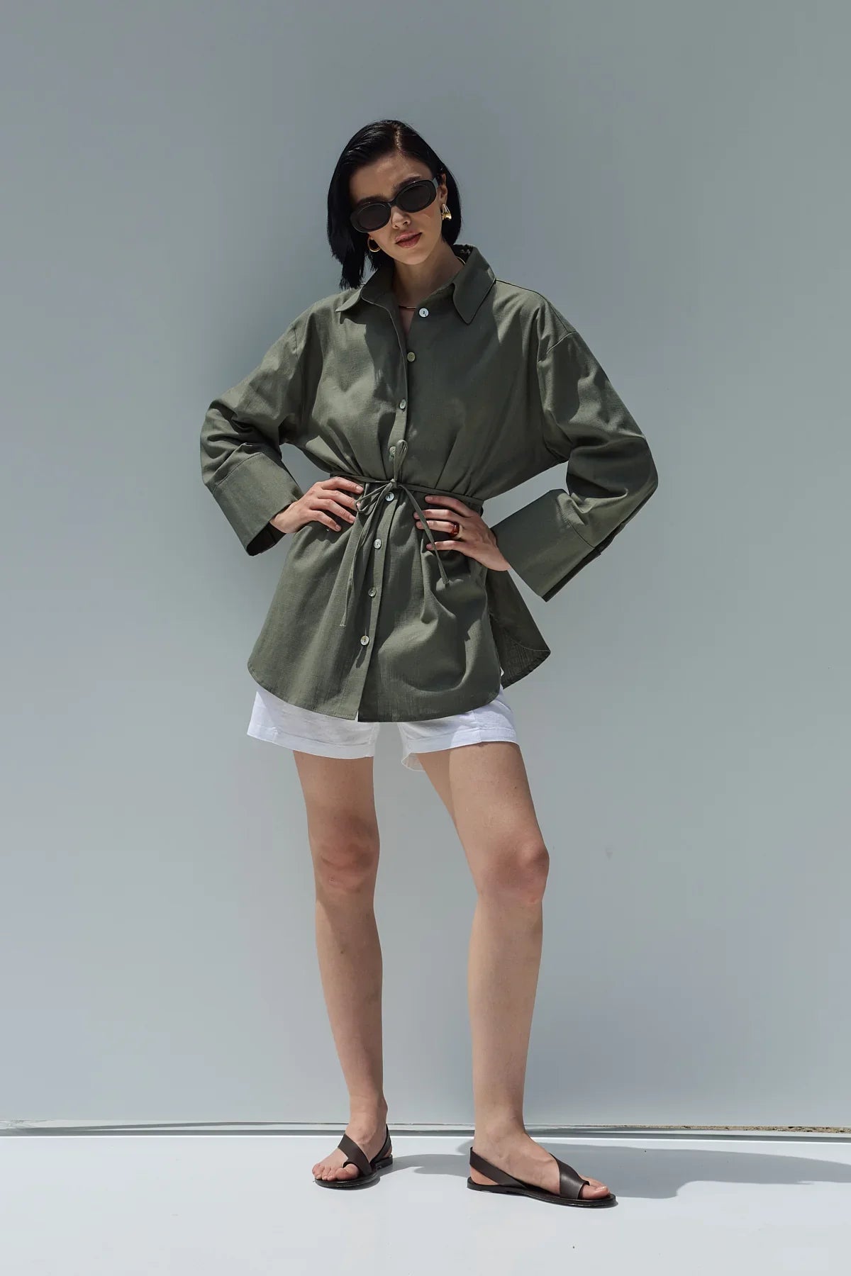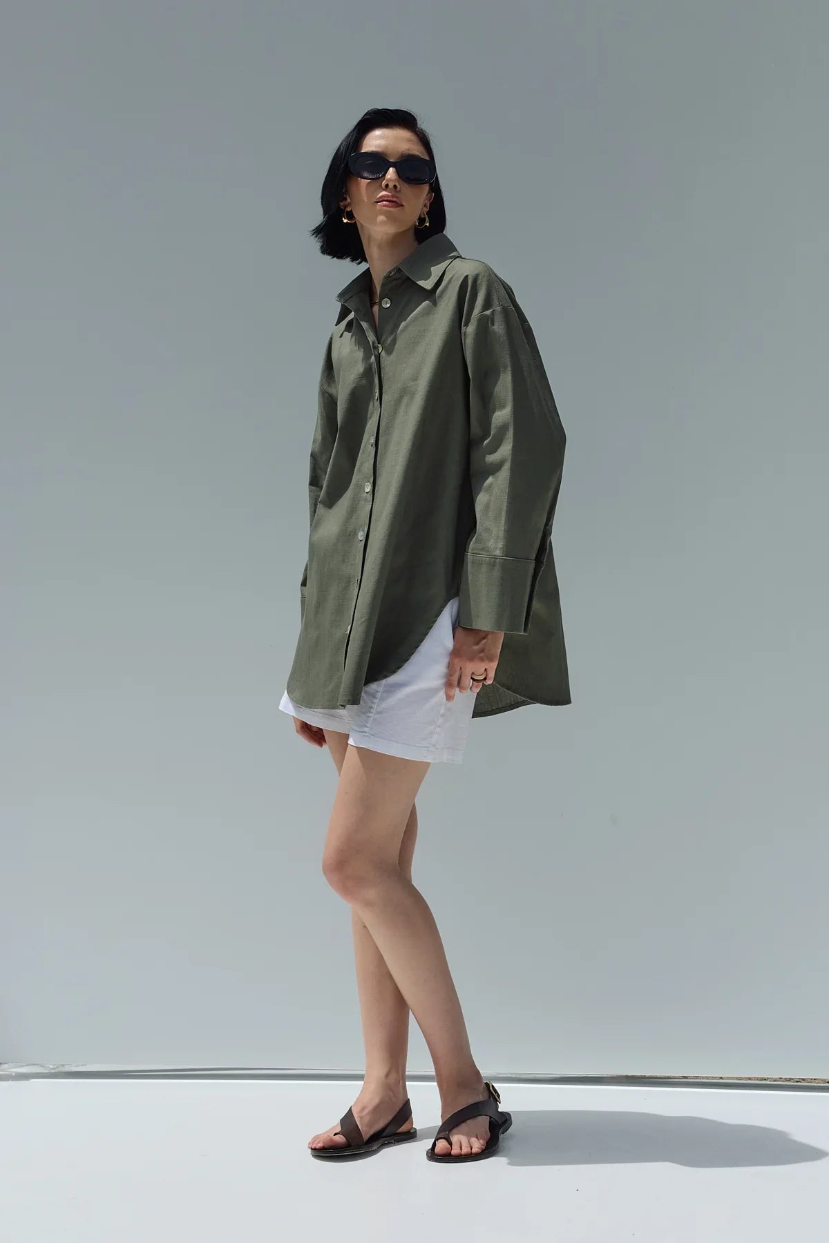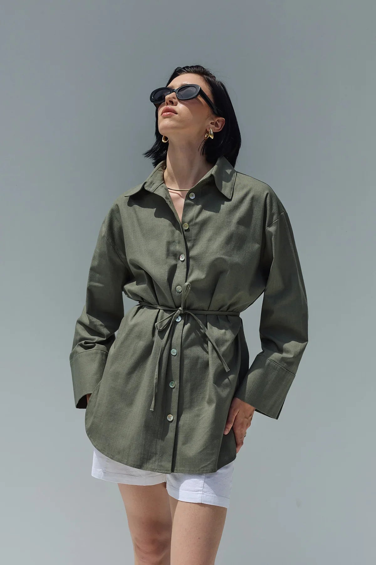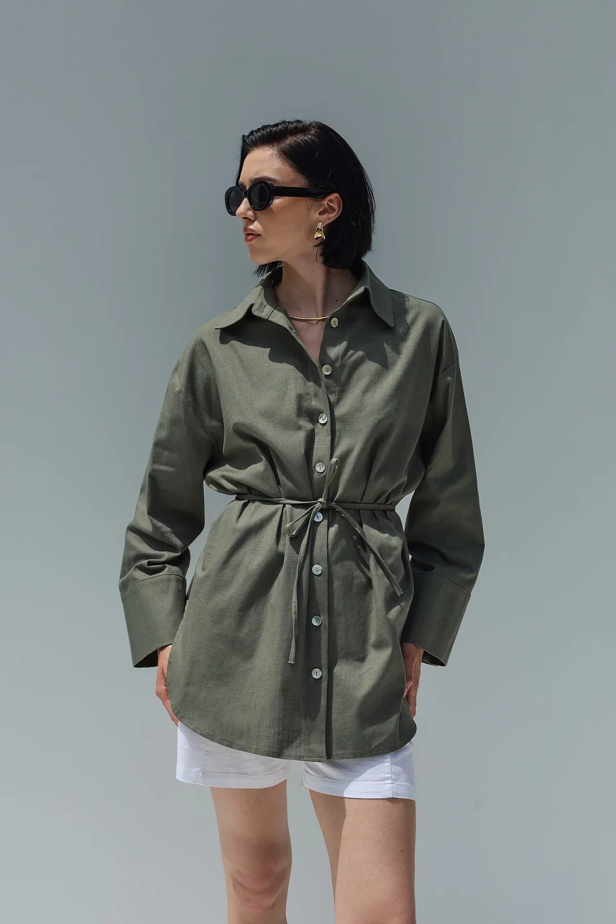 Oversize Keten Gömlek Haki Yeşil