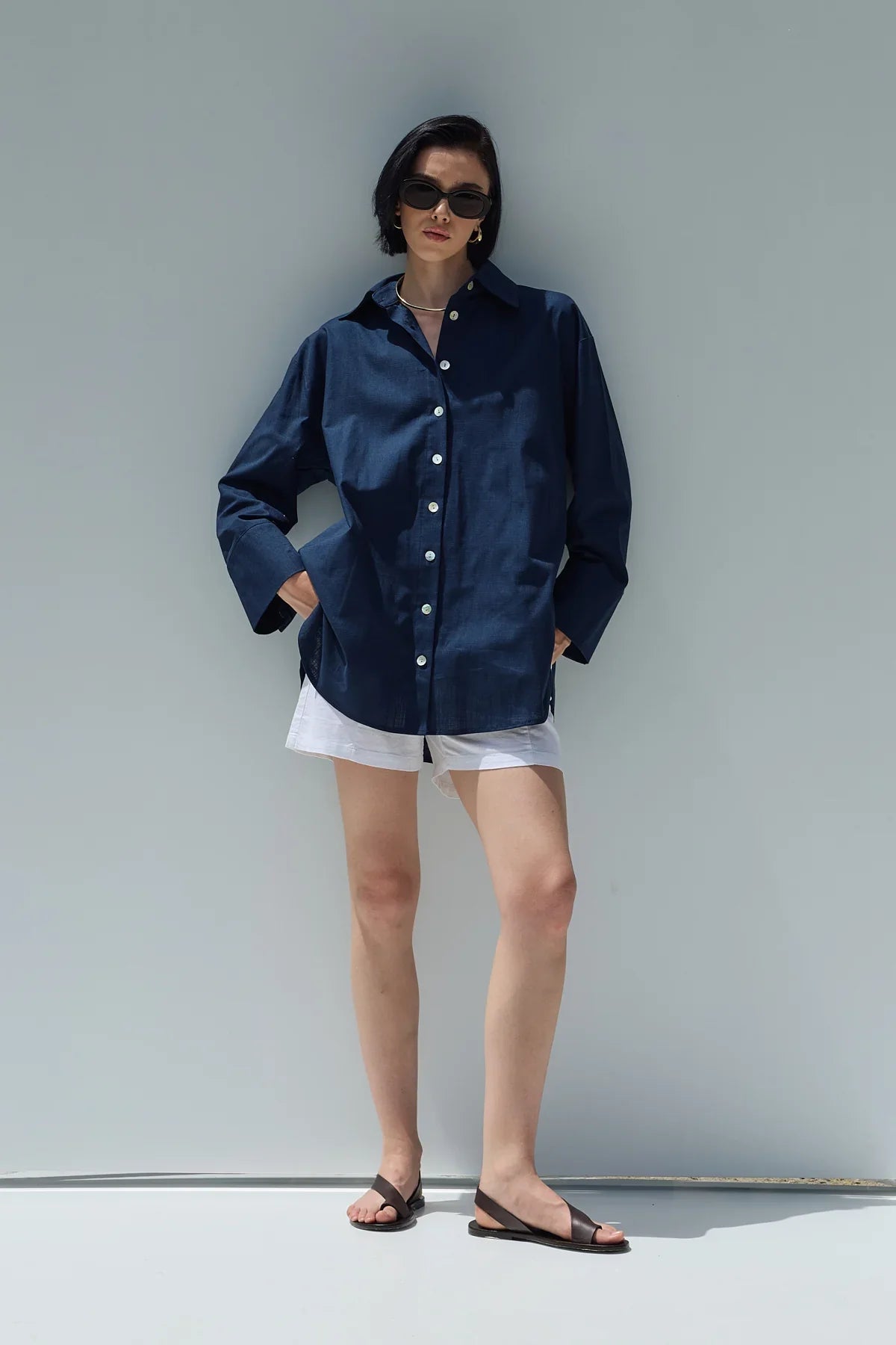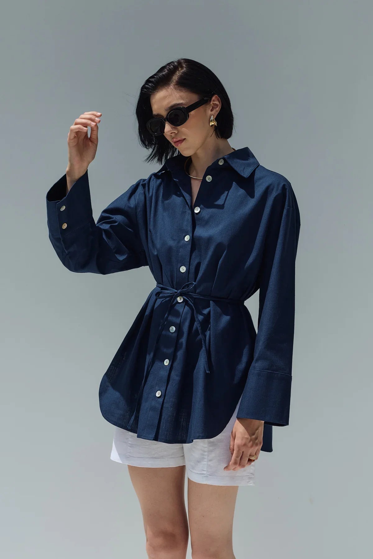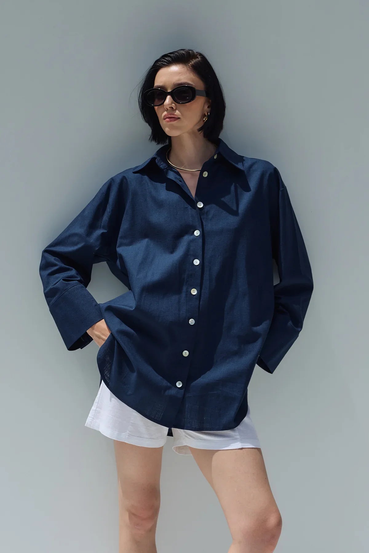 Oversize Keten Gömlek Lacivert