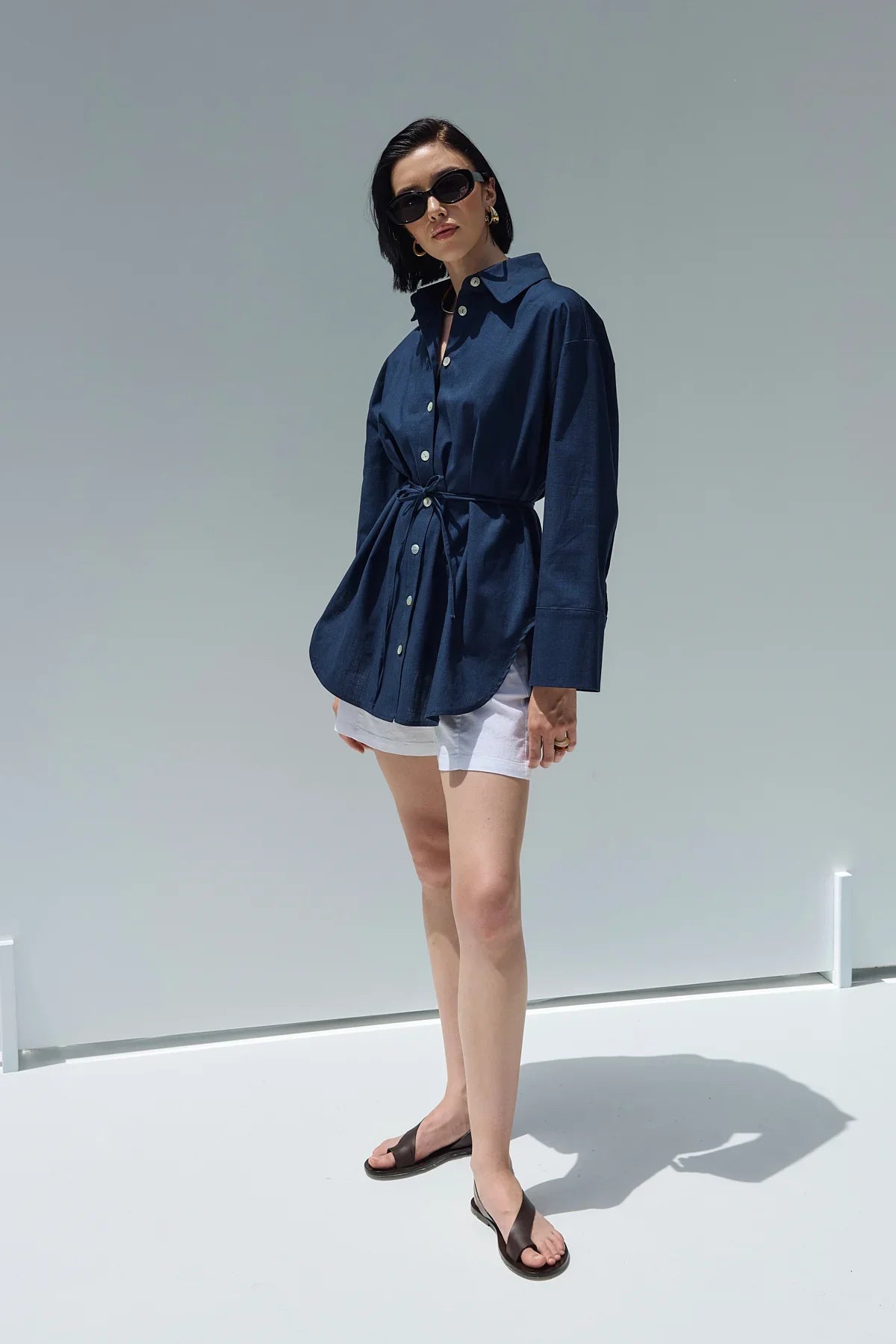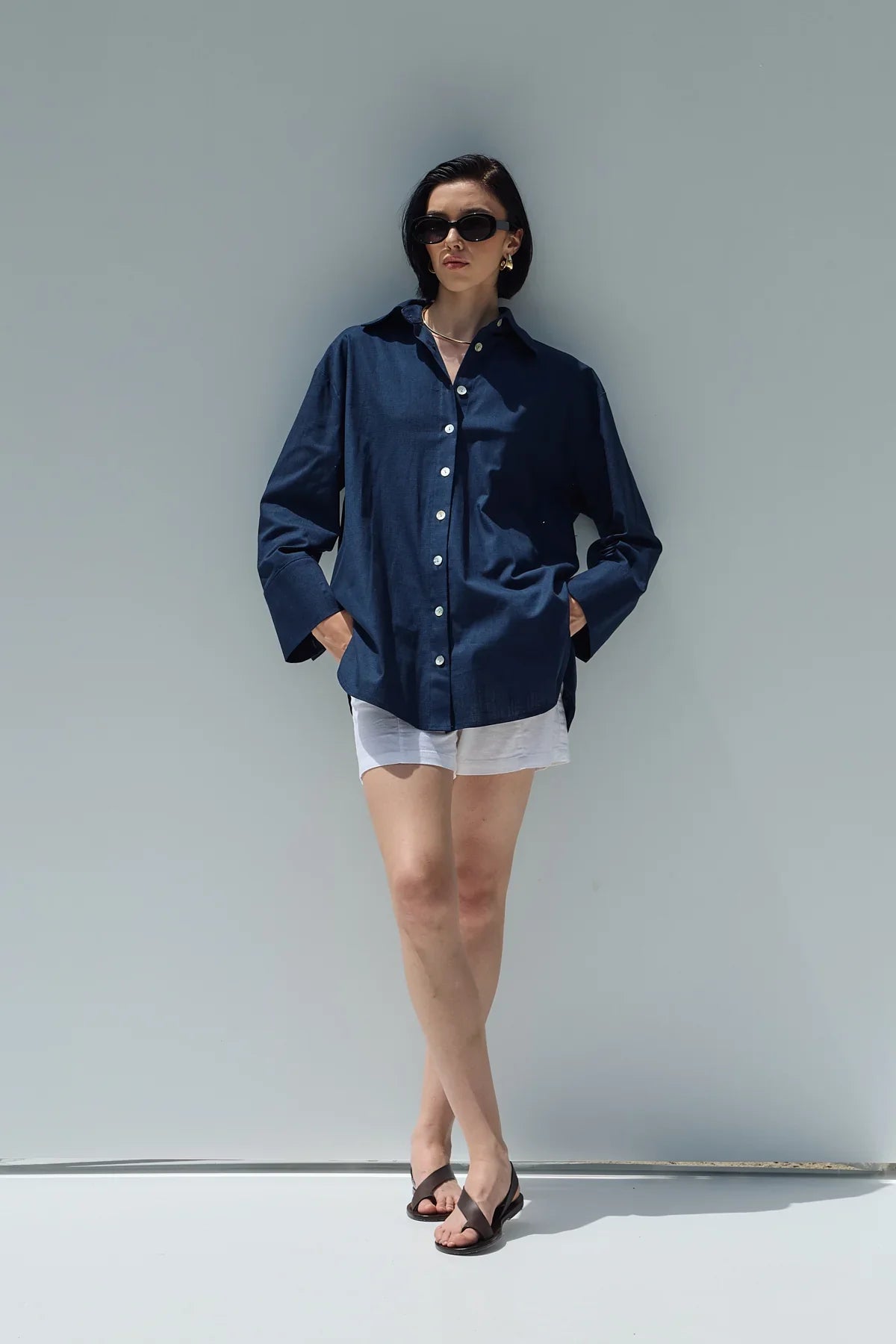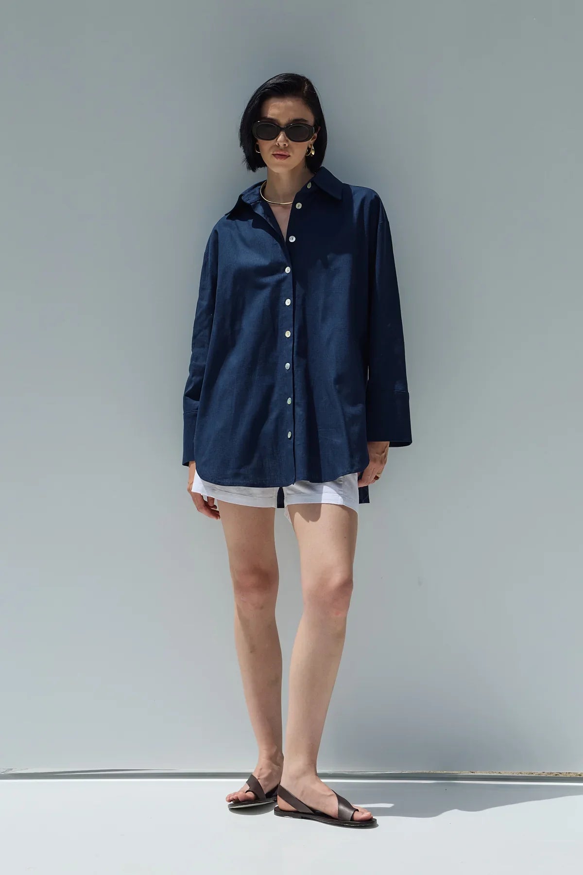 Oversize Keten Gömlek Lacivert