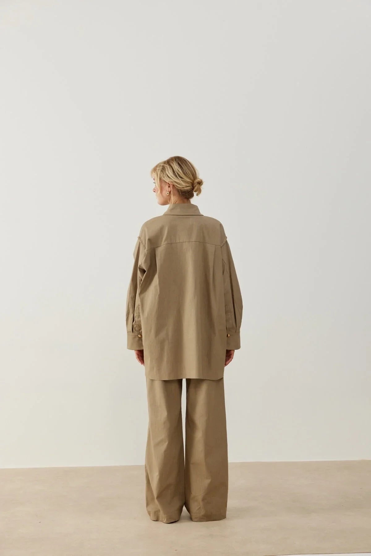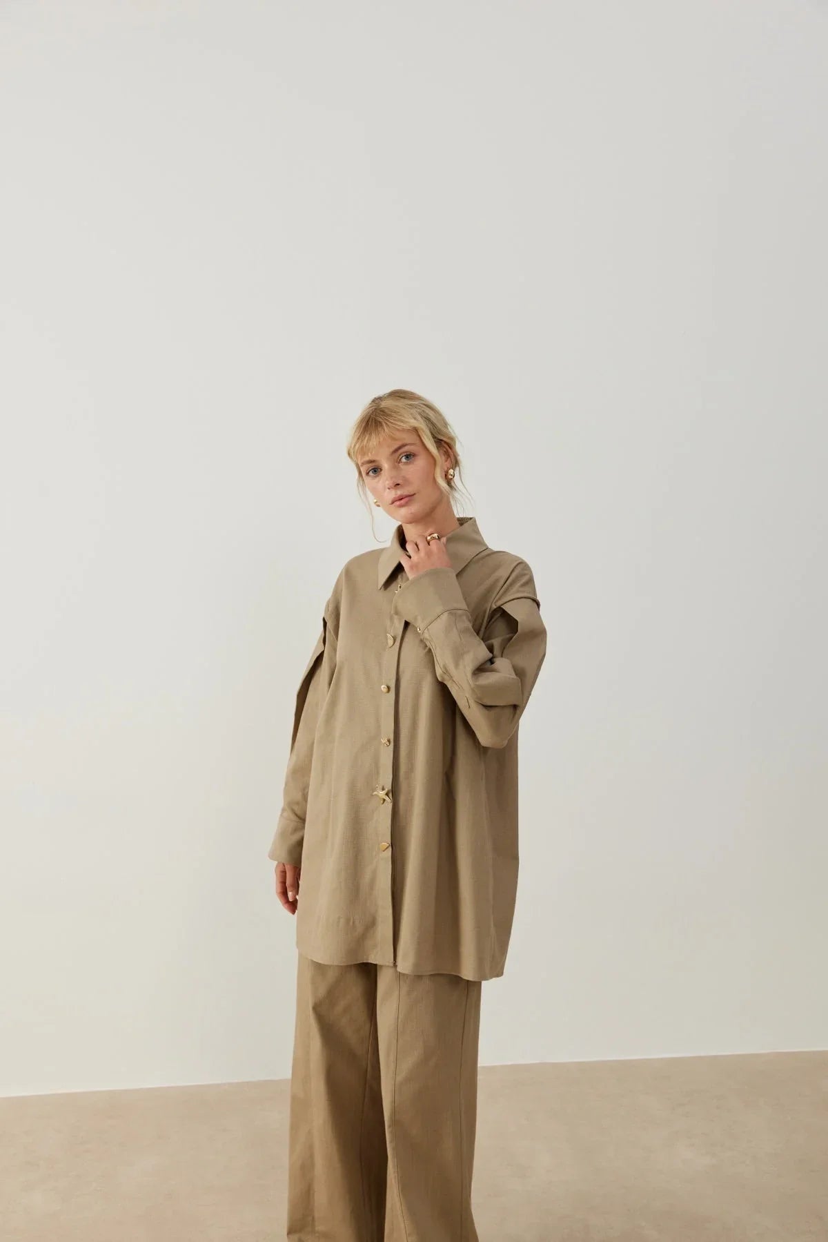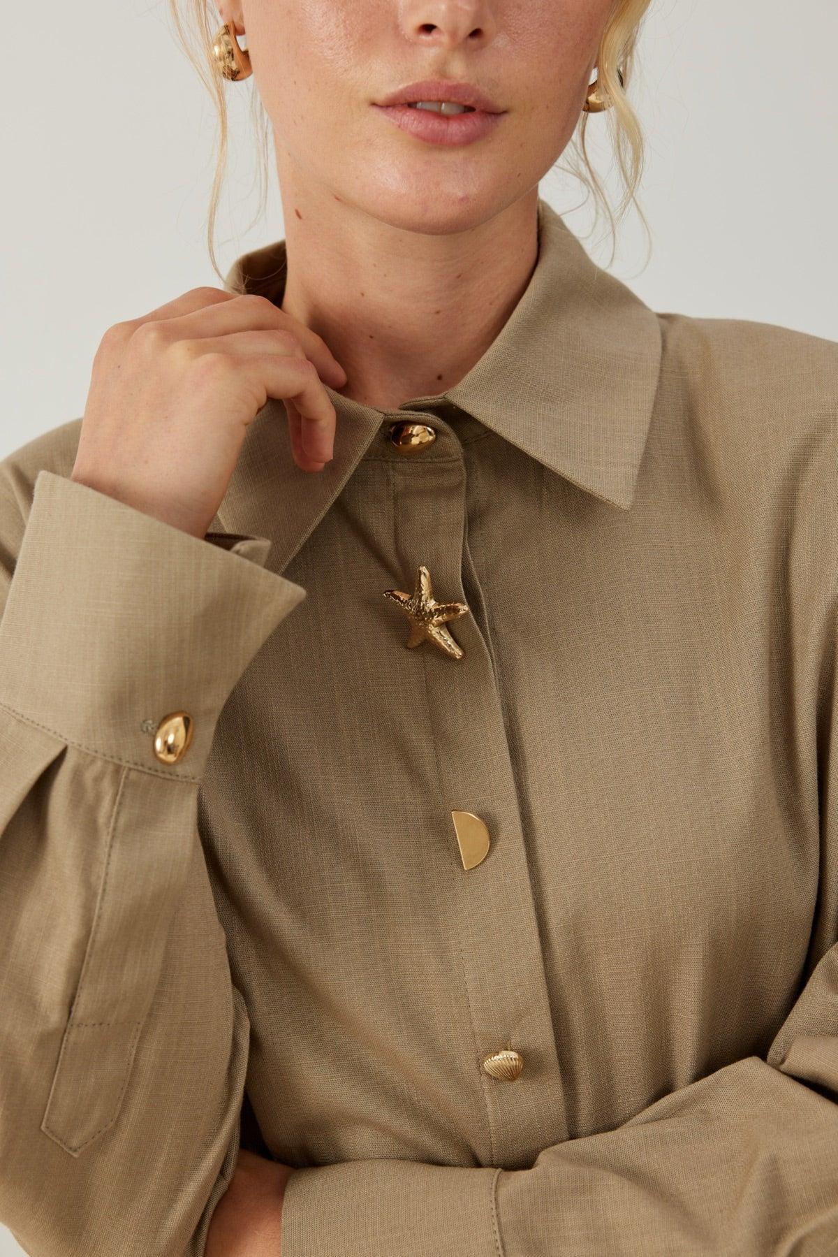 Piloma Düğme Detaylı Keten Gömlek Bej