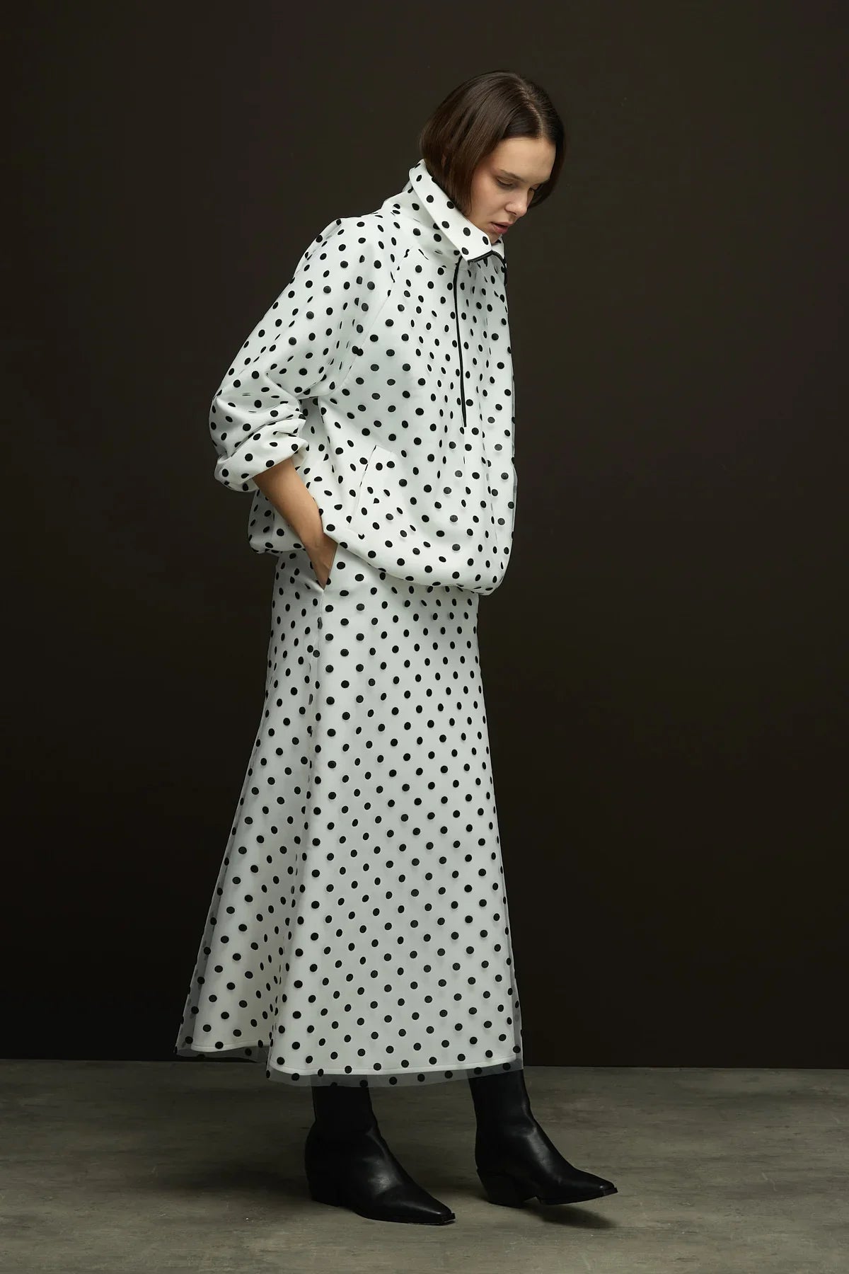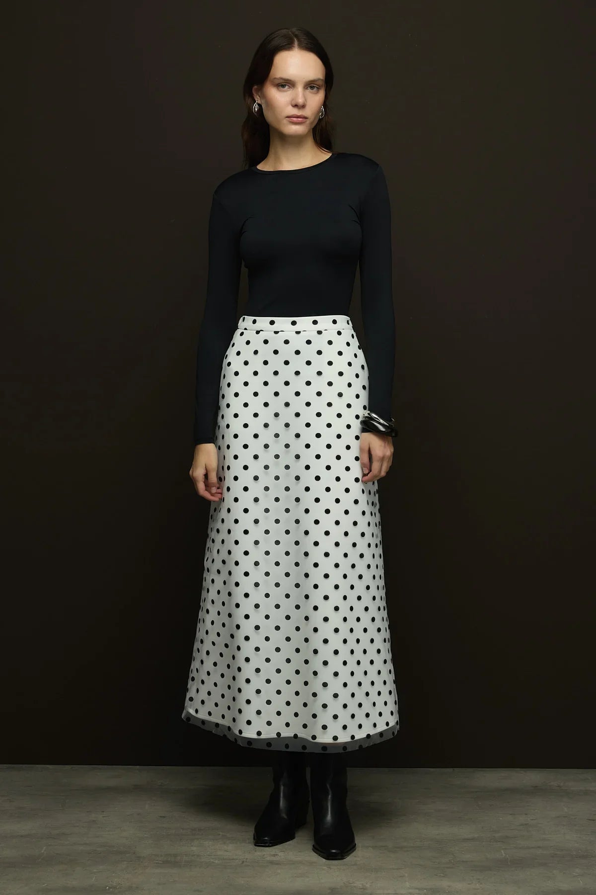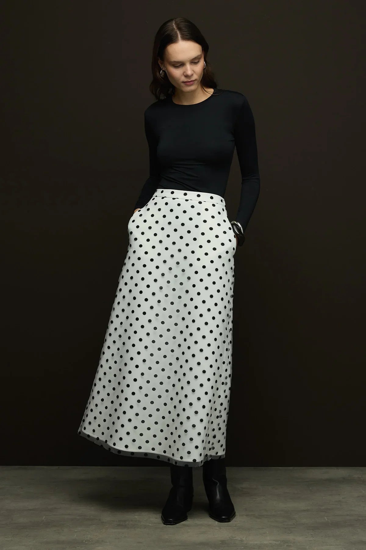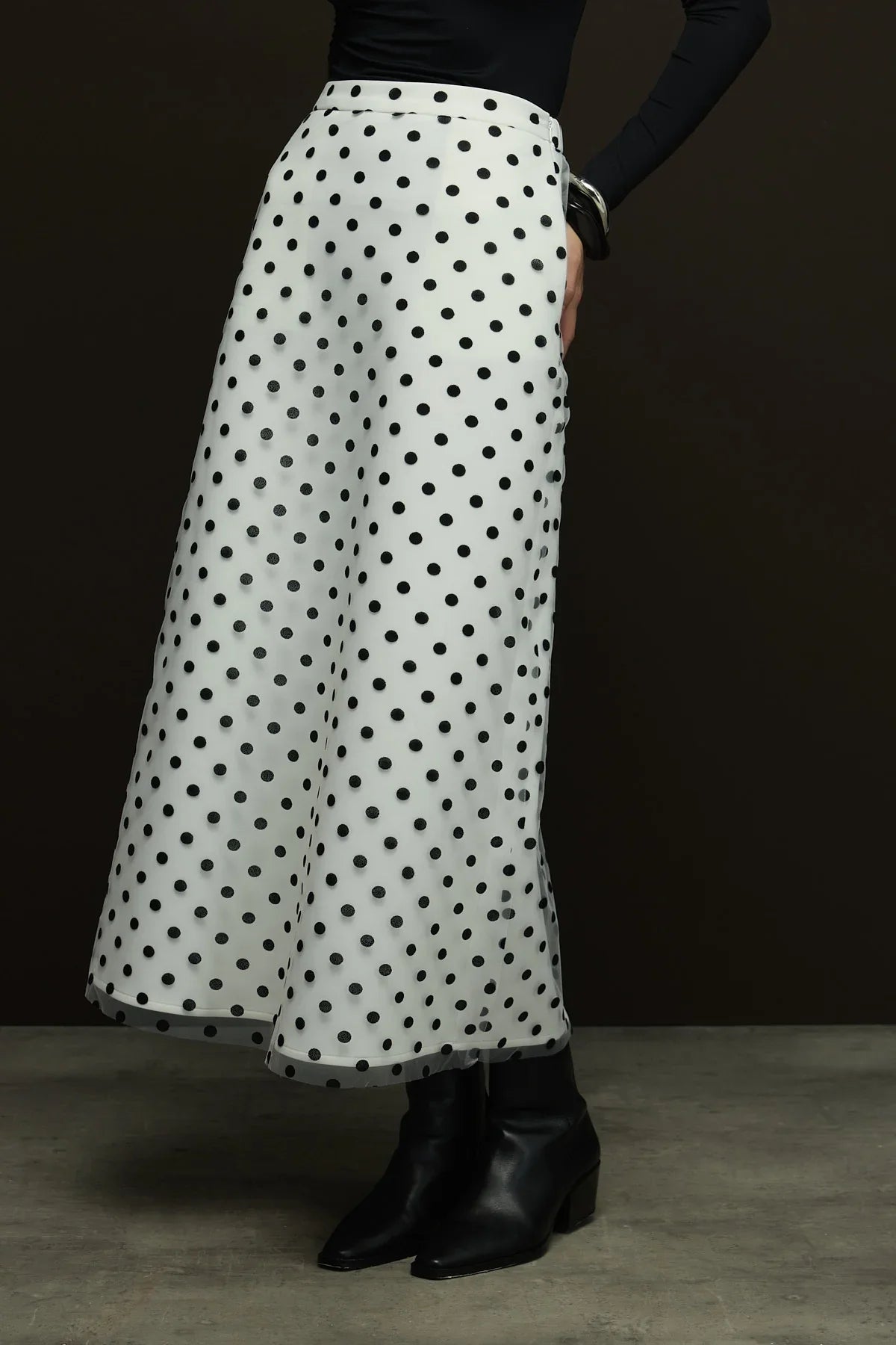 🌸Ürün Açıklaması; Dışı Flok Baskılı Puantiyeli Tül olup içi scuba puf kumaştır.Çan Etek kalıbıyla zarif bir görünümü vardır.