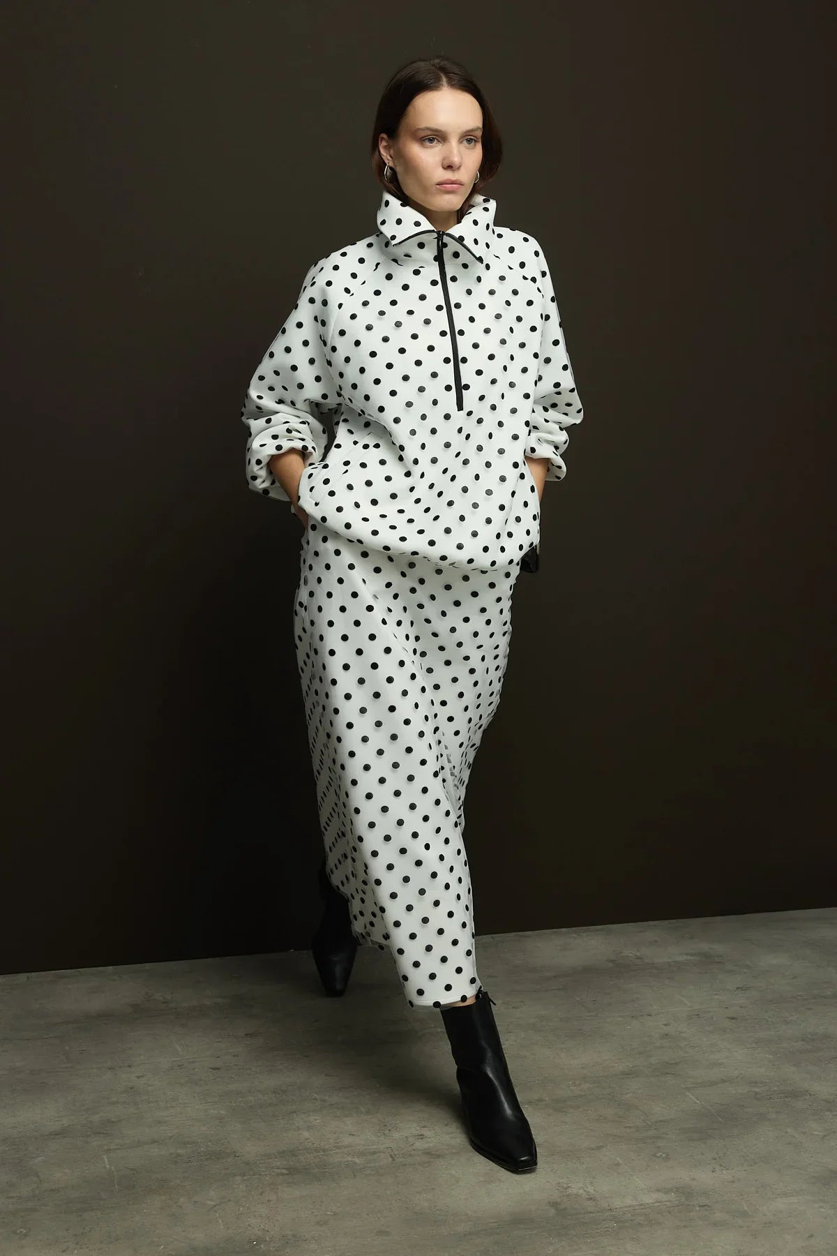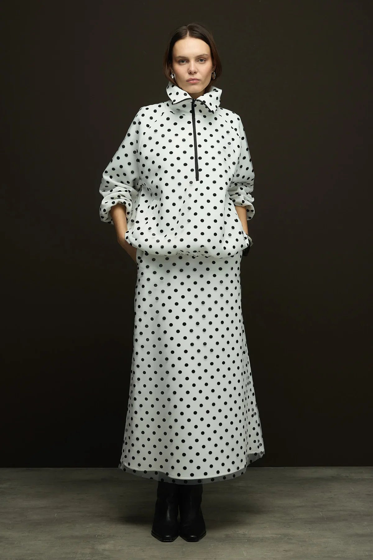 Kumaş İçeriği: Flok Baskılı Puantiye içi Scuba kumaş kaplama