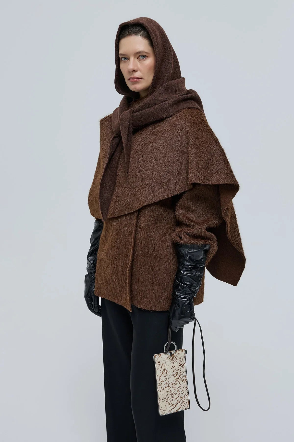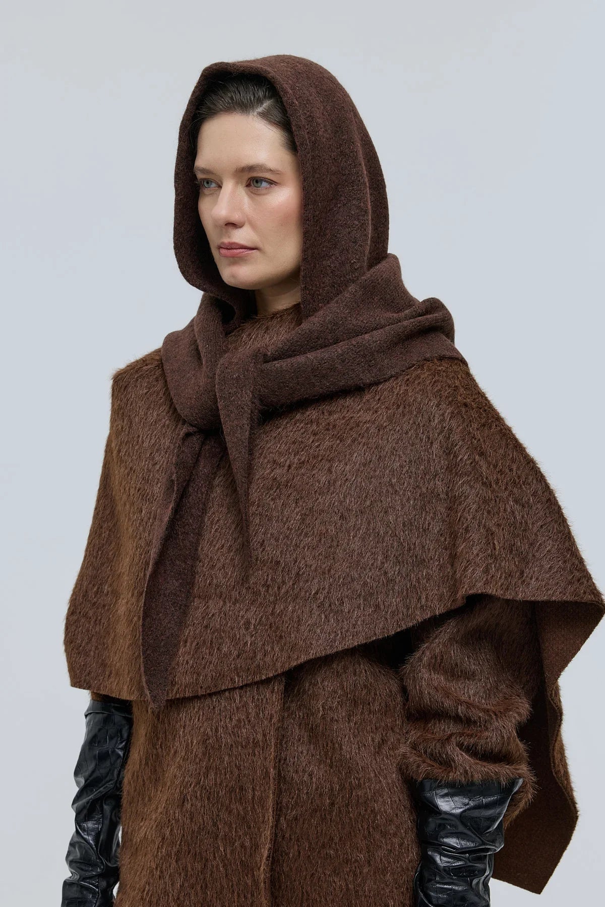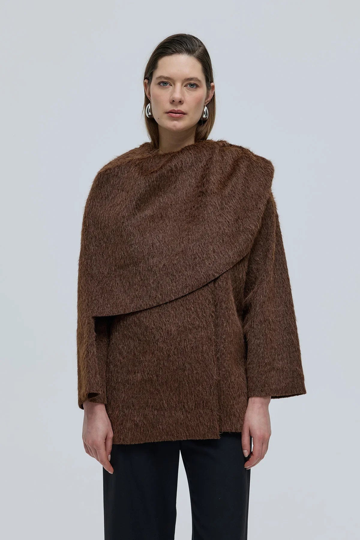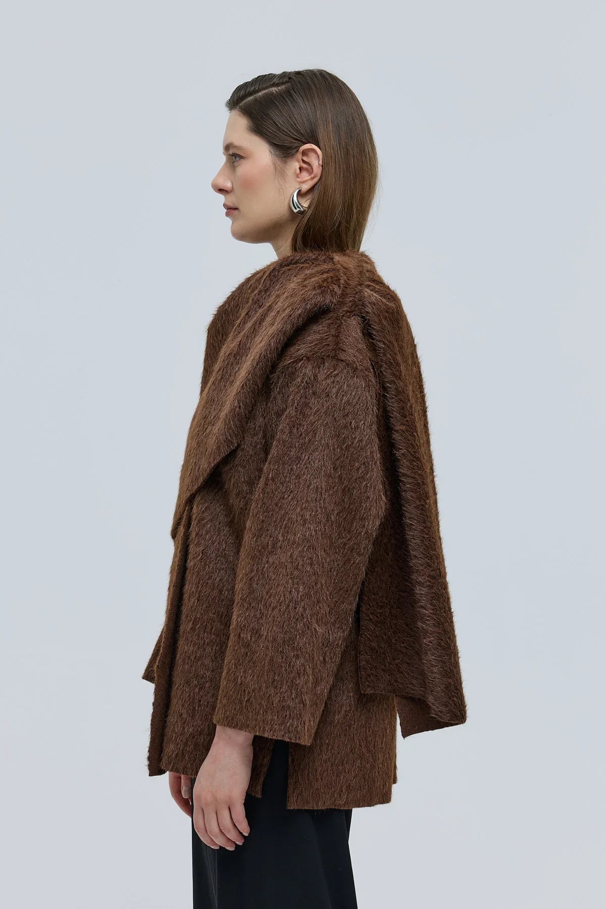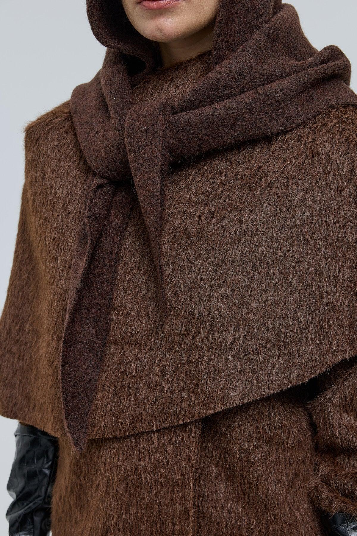 Revoni Şal Yaka Kaban Kahverengi