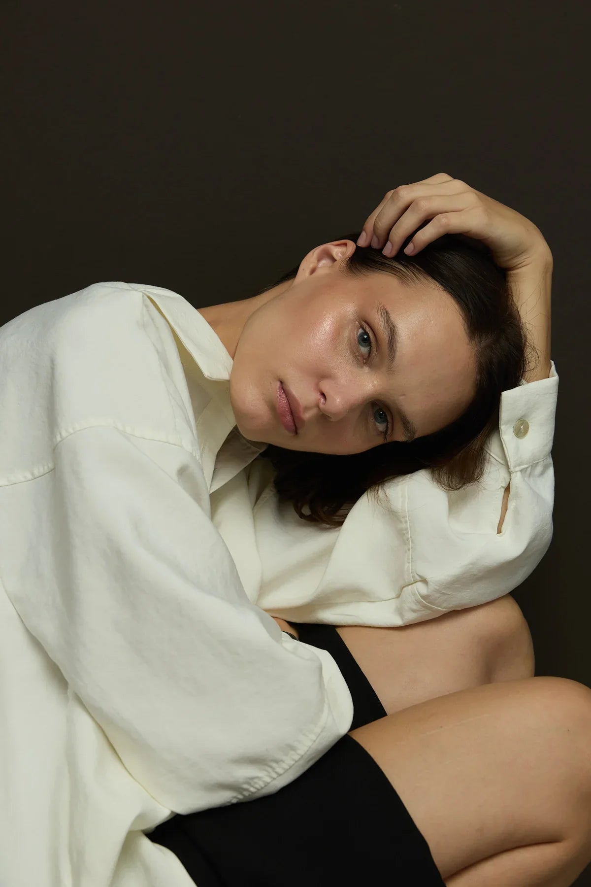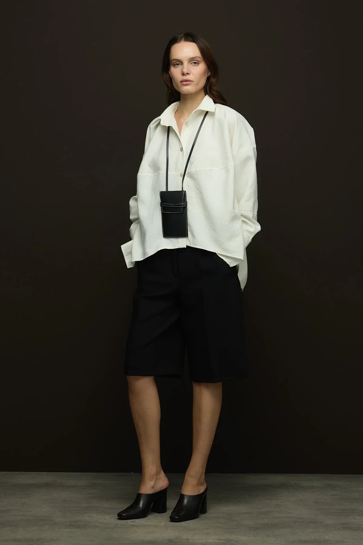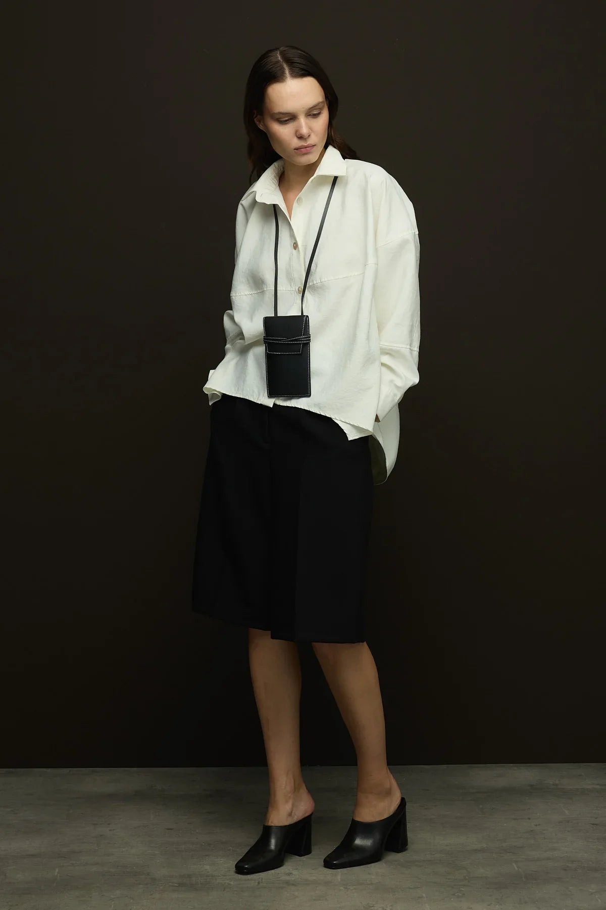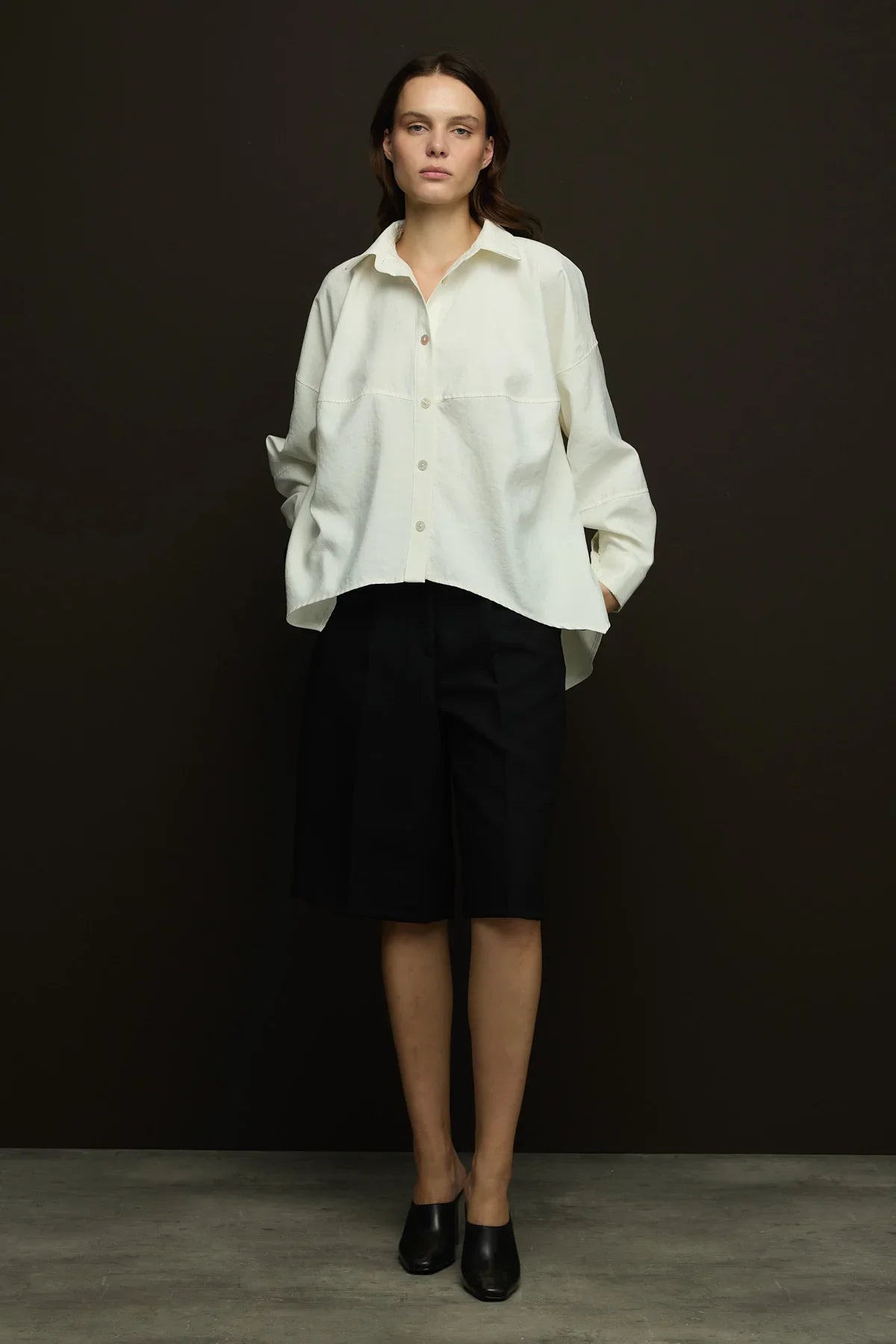 Geniş yaka,yandan yırtmaçlı geniş kesim gömlek.