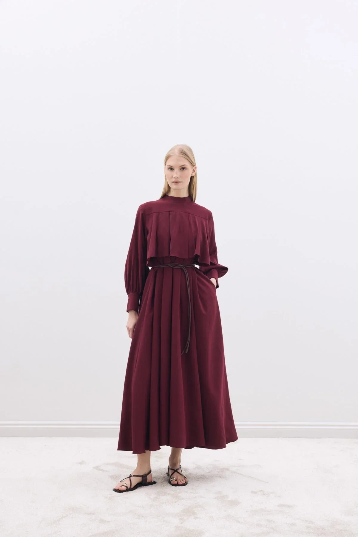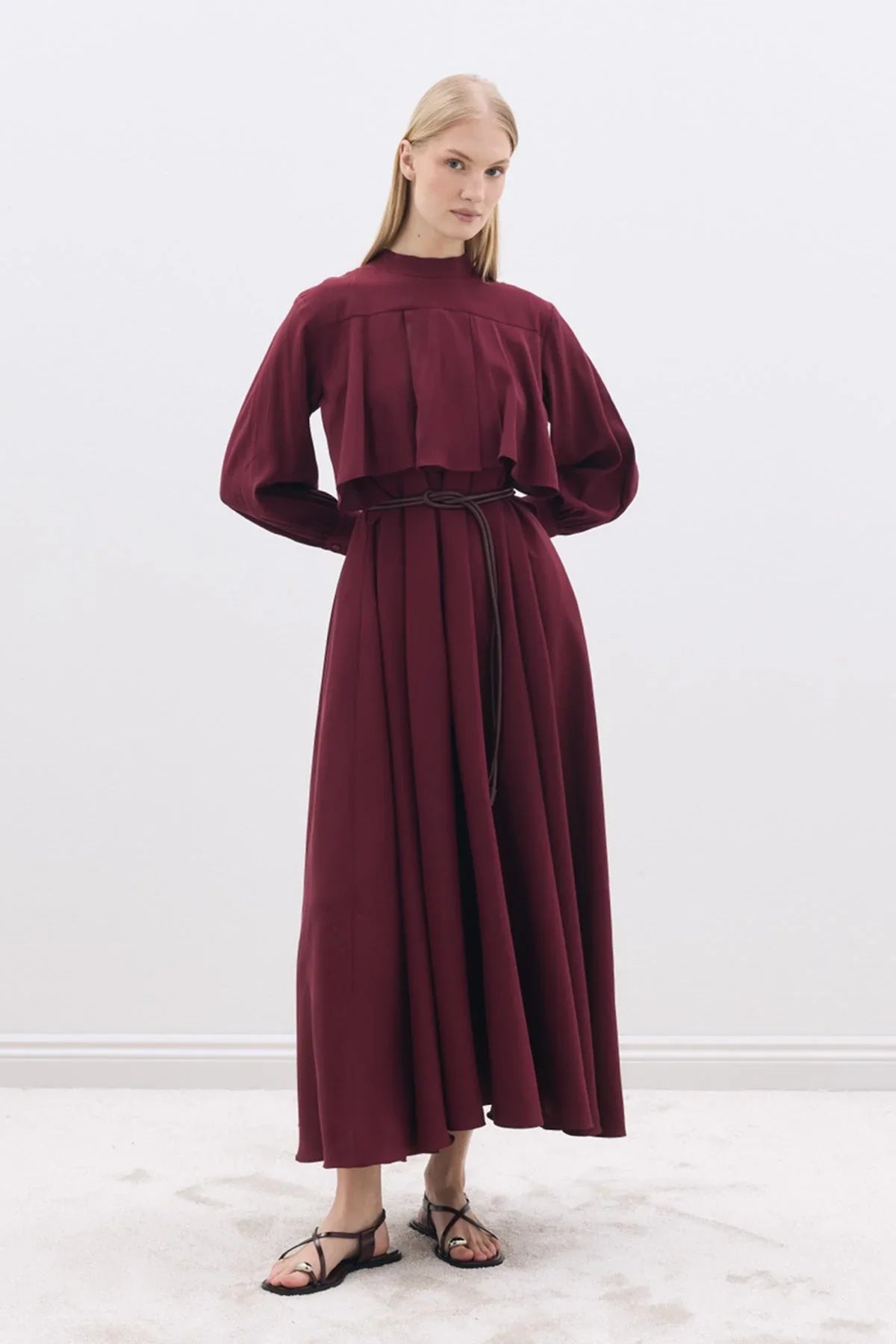 Tencel Elbise Bordo