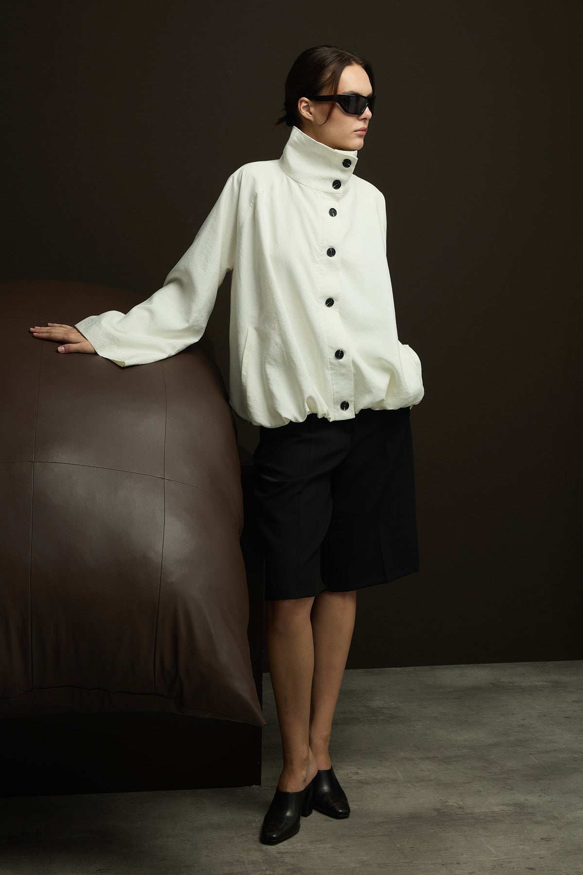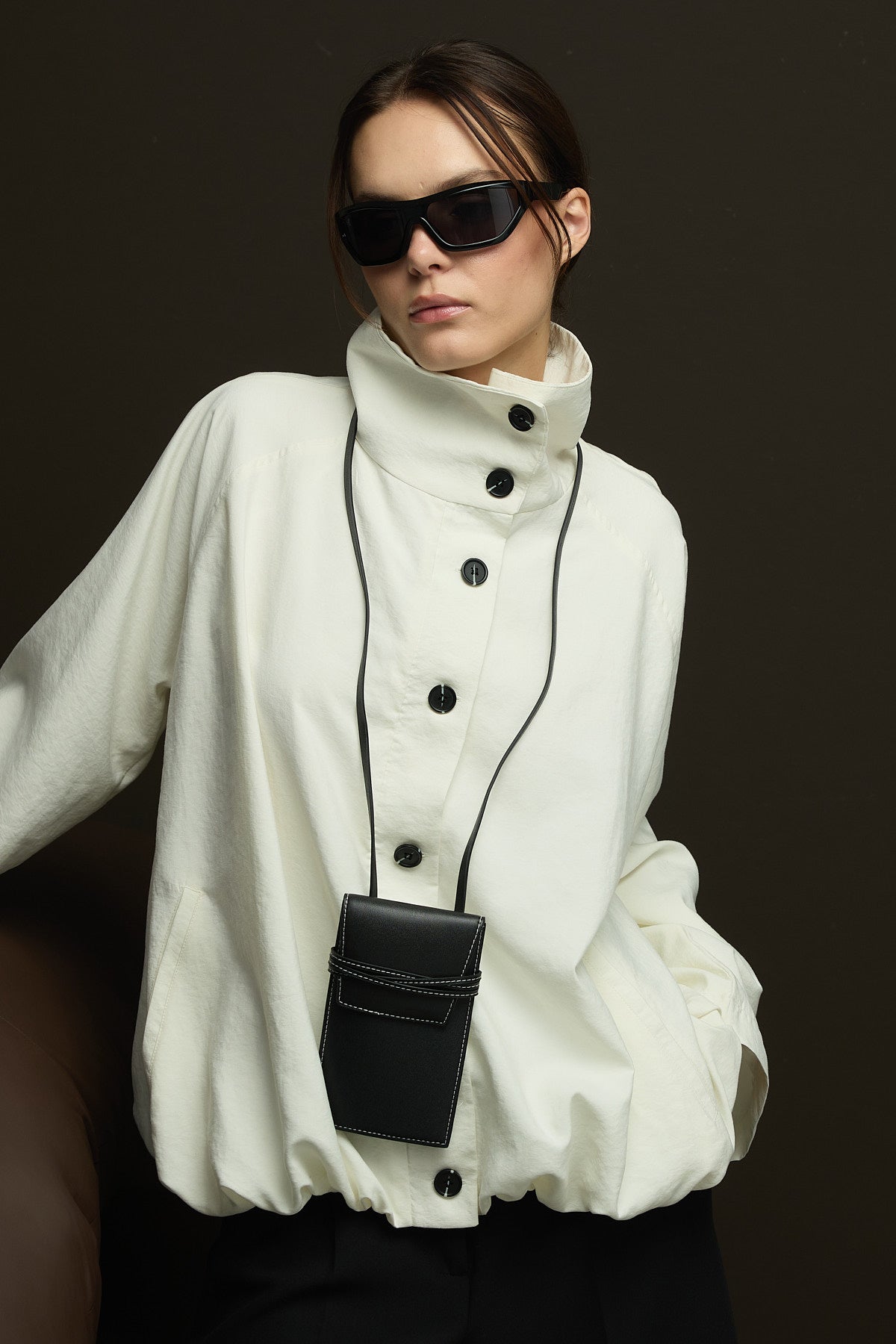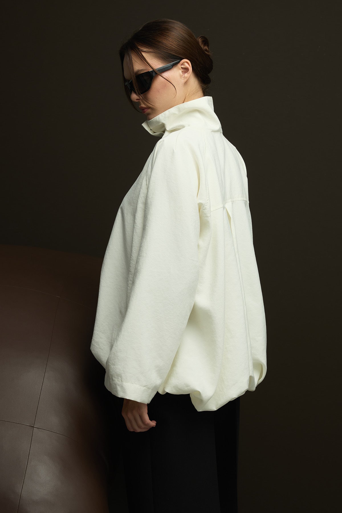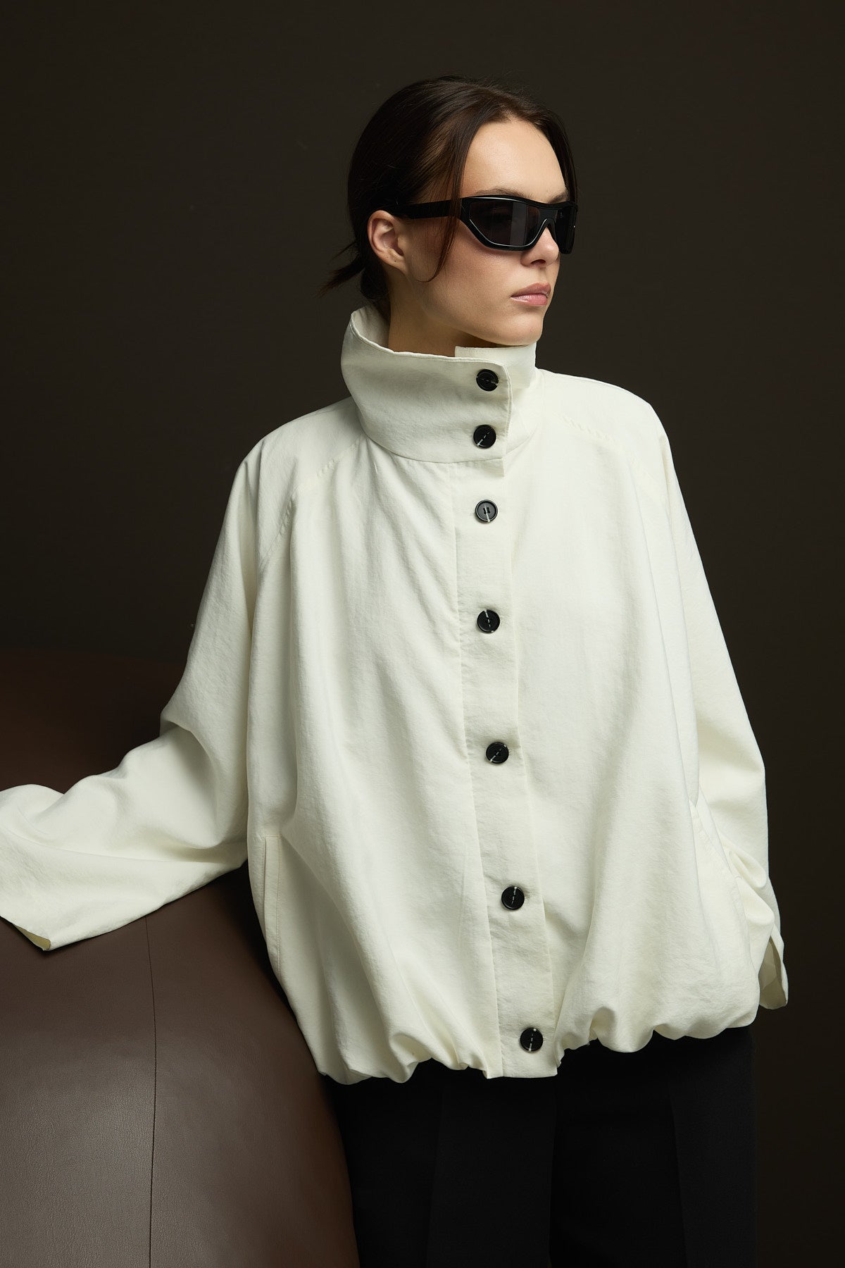 Geniş kesim,astarlı seyyar yakalı,viskon kupra karışımlı kumaştan bomber ceket.